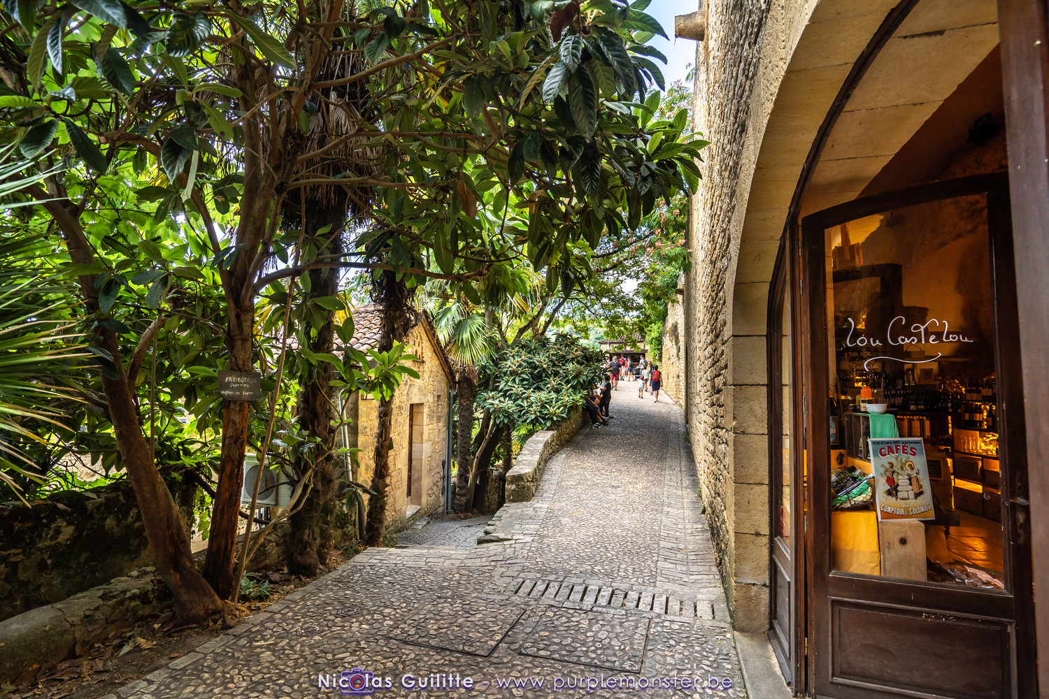 Poursuite de la découverte de la Dordogne, avec le village de La Roque-Gageac, lui aussi classé parmi les plus beaux villages de France, au même titre que Beynac-et-Cazenac juste avant, et Limeuil la veille. Le village s'étend sur quelques centaines de mètres, coincé entre la rivière et une grande falaise abritant d'anciennes constructions troglodytes. Un petit chemin serpente à l'arrière des habitations situées le long de la route principale, en longeant l'imposant massif rocheux, avec une étonnante végétation exotique au tout début, c'est assez insolite.