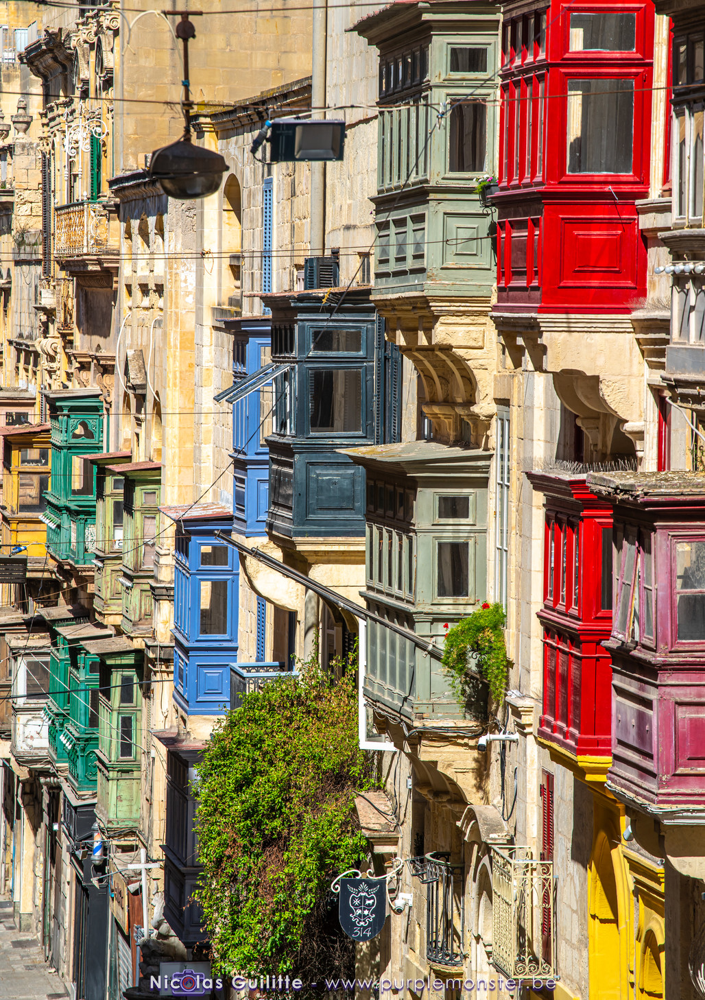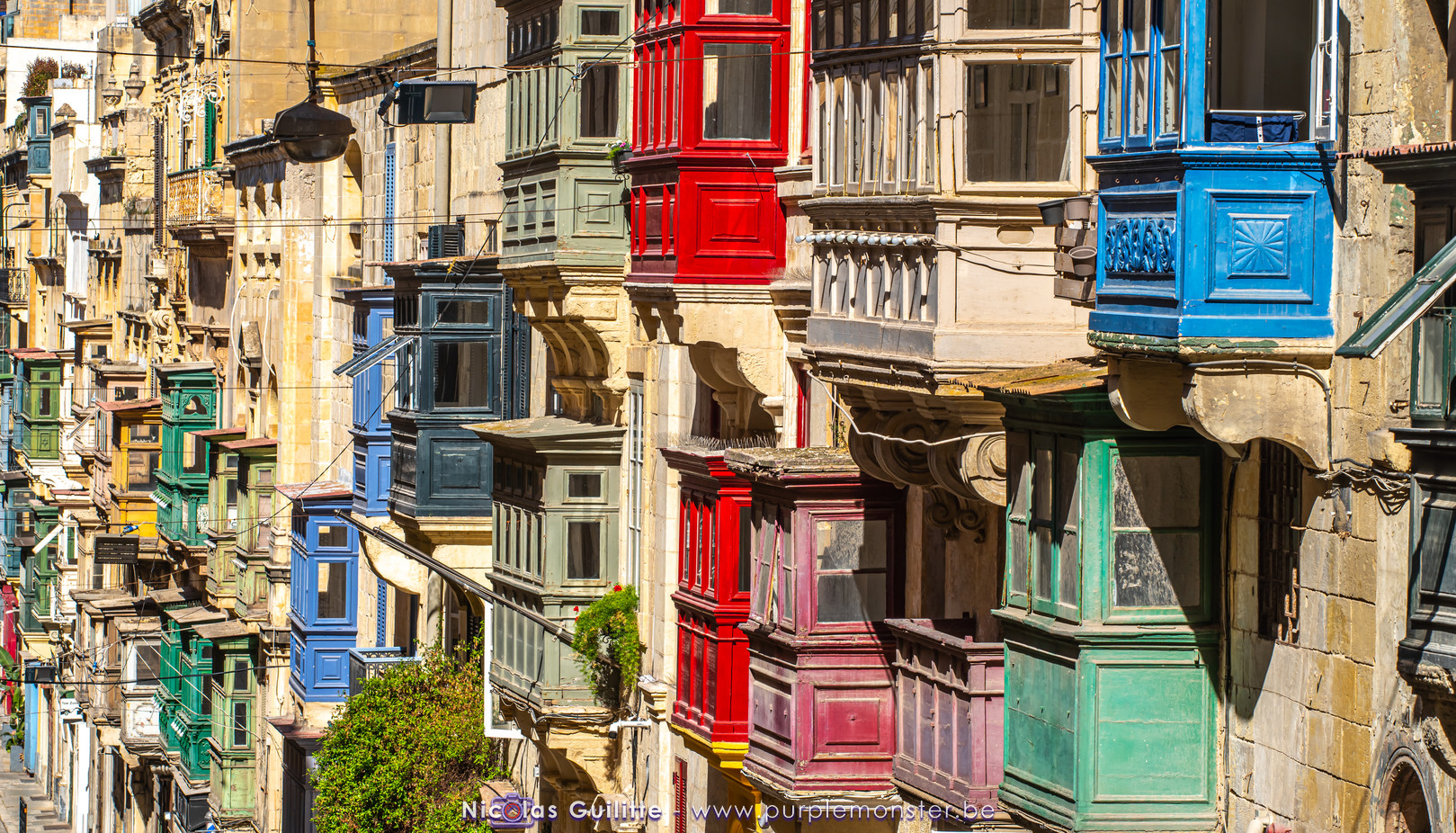Retour dans les rues de La Valette, je vous laisse compter les balcons !