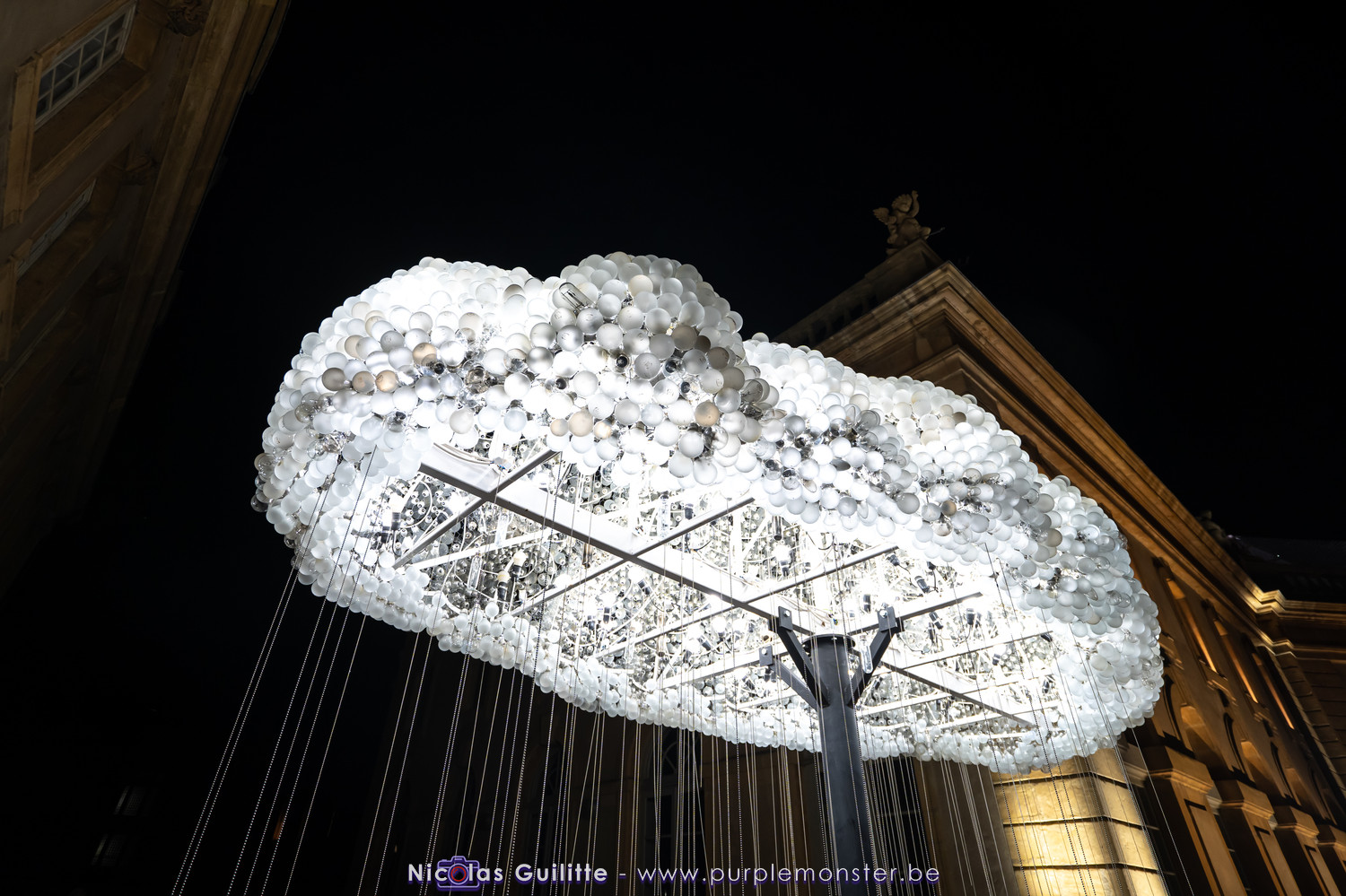"Cloud", une sculpture interactive représentant un nuage, composé de milliers d'ampoules allumables ou éteignables en tirant sur des cordons situés sous l'installation.