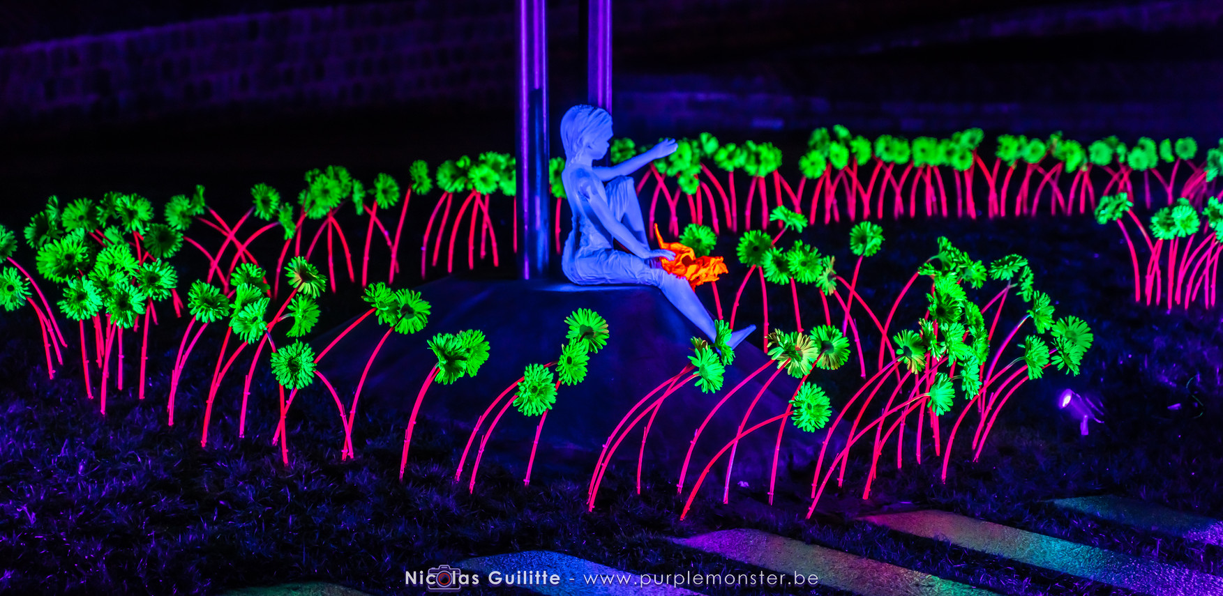 On termine avec une autre installation déjà vue également à plusieurs reprises au Bright Brussels, composée de fleurs géantes munies de boules à facettes, réfléchissant les faisceaux de lumières à 360° sur les façades et sur le sol, ce dernier offrant quelques reflets supplémentaires grâce à la pluie tombée un peu plus tôt. Une véritable explosion de couleurs, dont je n'aurai jamais pu profiter autant vu l'absence quasi totale de public en fin de soirée, alors que ce genre d'installations est habituellement un vrai "aimant à selfies".