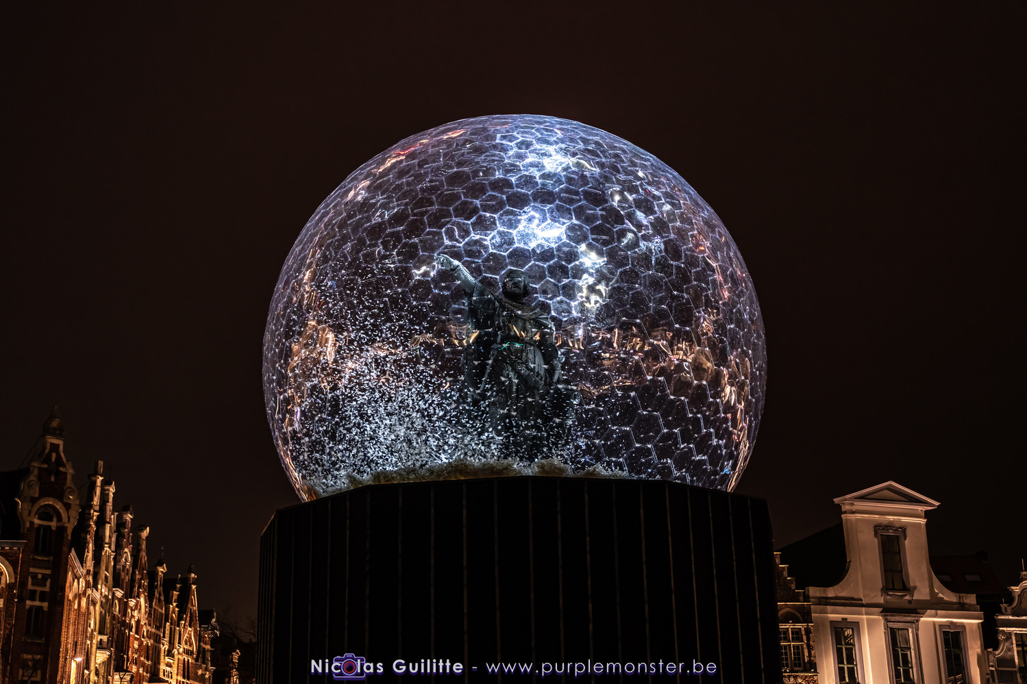 Une statue emprisonnée au cœur d'une boule à neige géante, qui semblait malheureusement souffrir d'un petit problème technique, la soufflerie à l'intérieur de la boule semblait avoir du mal à faire s'envoler les milliers de particules blanches.