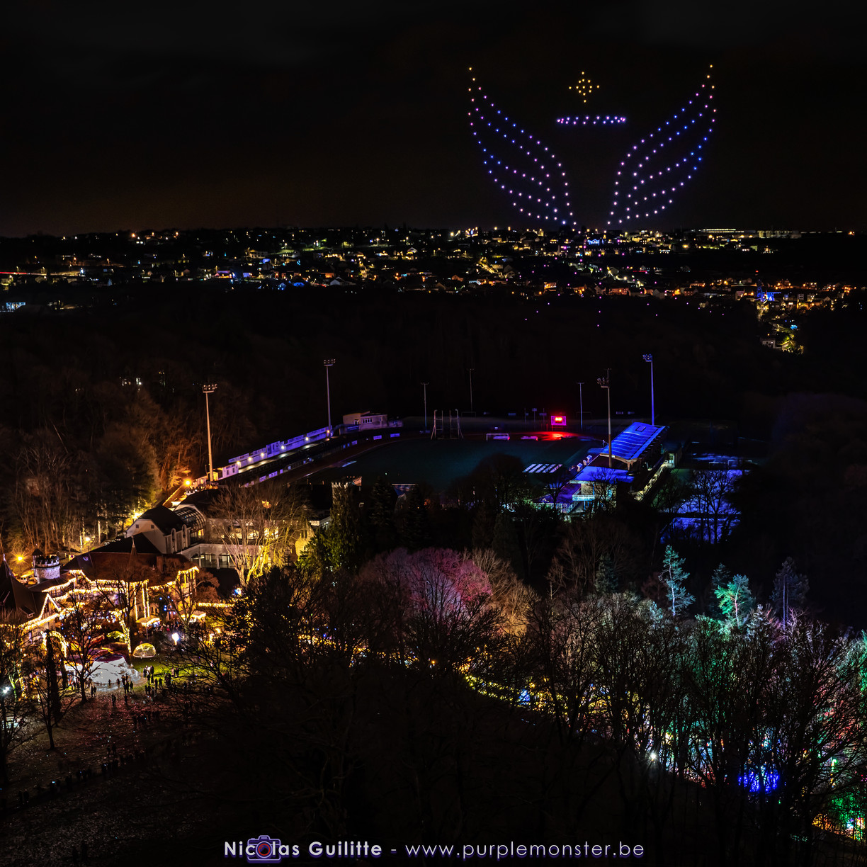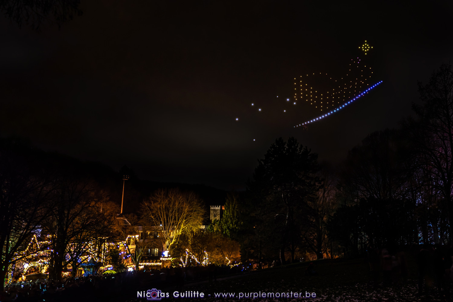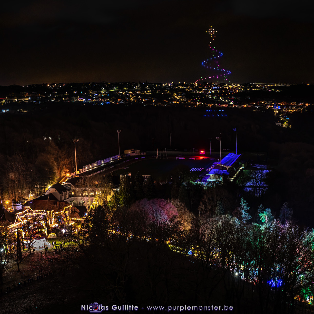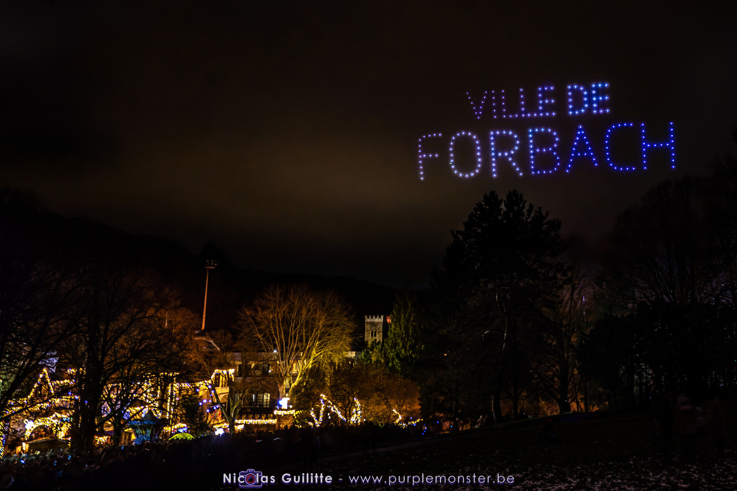 Dernière sortie de l’année, pour un spectacle de drones dans le cadre des festivités de Noel dans la petite ville de Forbach, dans le nord-est de la France, à 2 pas de la frontière allemande. Shooting en mode "pose courte" pour cette fois, le show s’y prêtait bien, avec une succession de figures autour du thème de Noel.