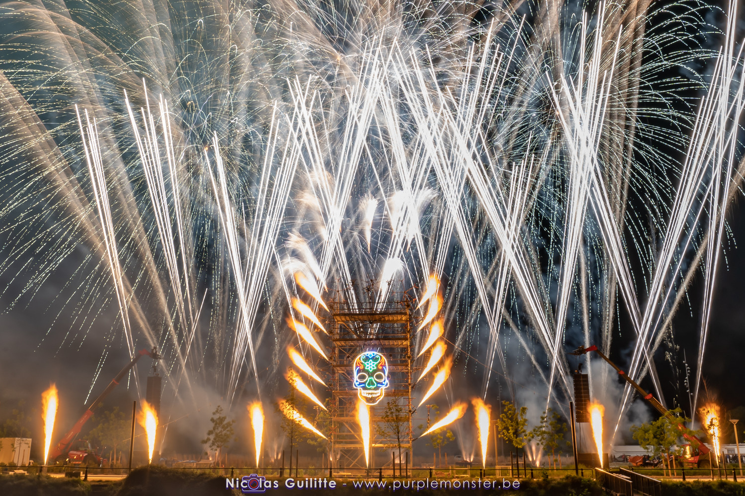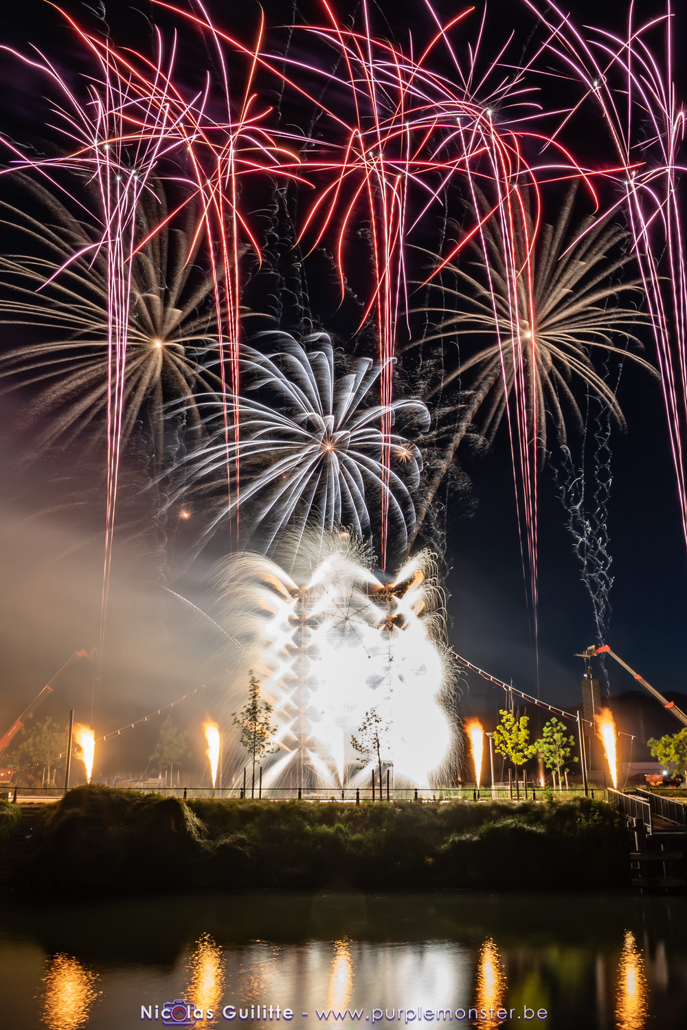 Tous ces petits effets étaient complétés par les traditionnels jeux de flammes fidèles au Groupe F, placés sur une centaine de mètres de large en façade mais aussi sur la structure, 9 postes de tirs juste derrière avec chandelles et mono-coups, ainsi qu'un poste de bombes situé plus loin derrière. Peut-être un peu trop loin, car ces dernières explosaient assez bas et paraissaient un peu petites par rapport aux effets à l'avant-plan, même les 150mm. Il y a avait comme une incohérence dans le rapport d'échelle des différents effets, c'était peut-être le seul petit bémol de ce feu.
