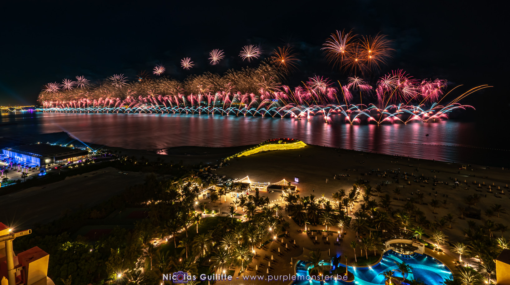 Un an plus tard, retour au Moyen-Orient, à environ 70km de Dubai, à proximité de la ville de Ras al Khaimah, dans l'émirat du même nom. La vue depuis le toit de l'hôtel Waldorf Astoria n'est clairement pas aussi époustouflante que celle un an plus tôt à Dubai, rien de spécial à voir si ce n'est un bout de plage, quelques palmiers, et la piscine de l'hôtel en contrebas. Après 4h de standby, le moment de la délivrance arrive enfin : 10 minutes de feu ininterrompu, pendant lesquelles les bombes et les mono-coups s'enchaînent par milliers.