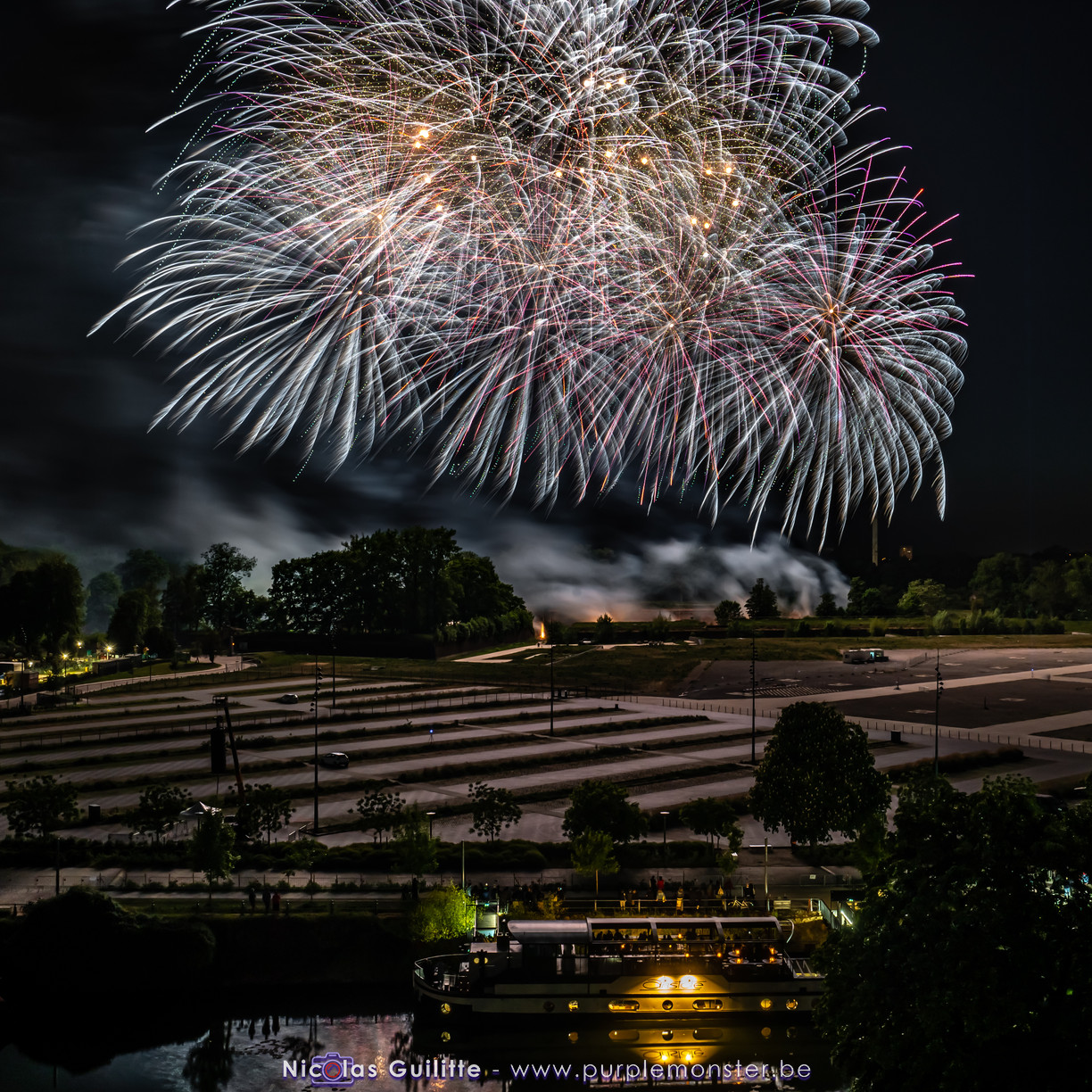 Pour être franc, j'étais au départ un peu dubitatif sur le résultat potentiel d'un tel mariage, étant donné que les drones (au nombre d'environ 300) feraient partie intégrante du show, et ce du début à la fin (ce n'était donc pas juste l'une ou l'autre séquence isolée). C'est surtout au niveau des photos que j'avais un peu peur, car l'exercice est plus difficile qu'un feu traditionel étant donné qu'il faut bien doser les poses longues pour la pyro, mais pas trop longues pour éviter que les figures dessinées par les drones ne soient complètement floues et/ou déformées.