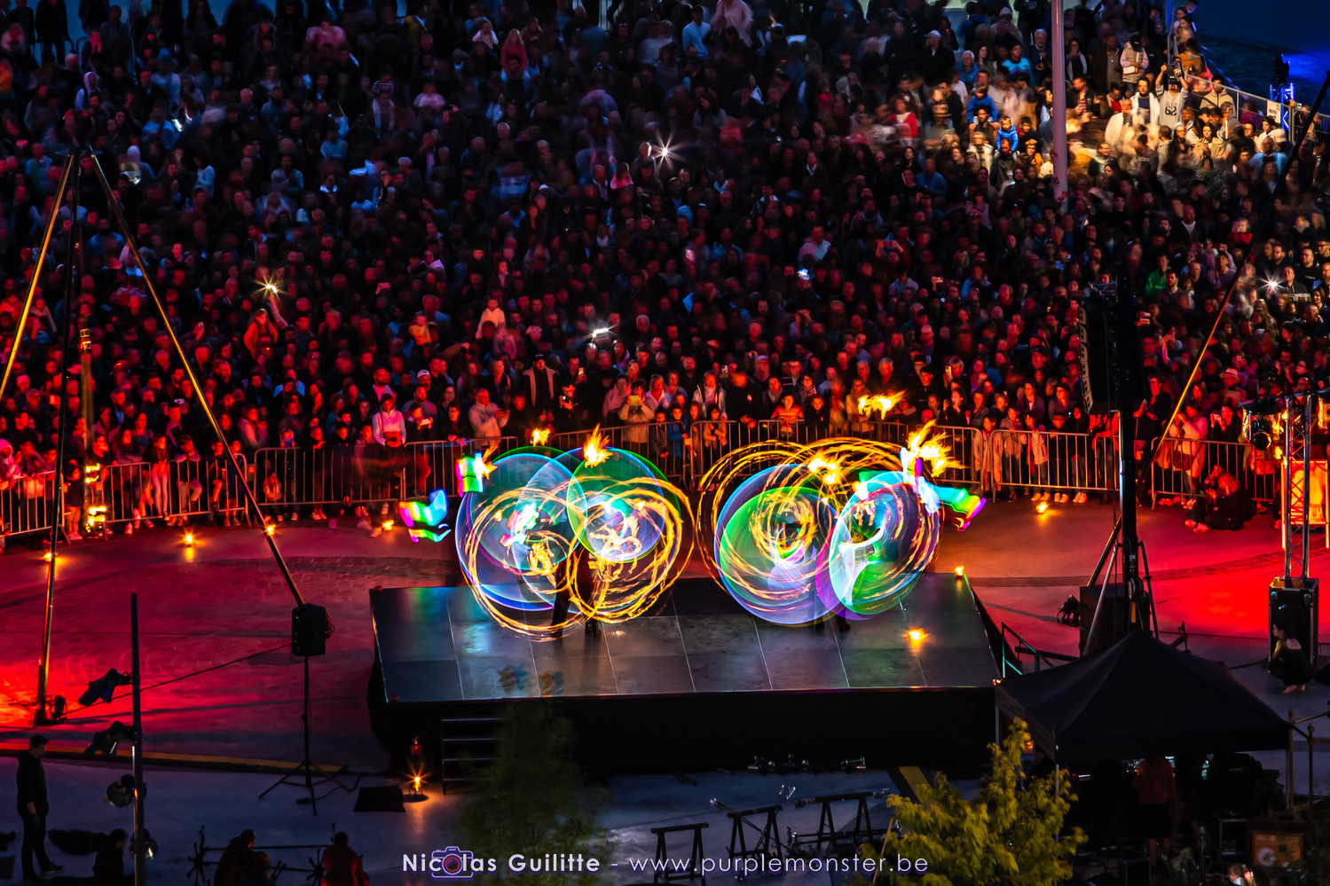 En prélude au feu d'artifice, un spectacle de feu et de lumières de la société Pyronix. Rien de vraiment nouveau sous le soleil, mais le mélange de feu et de light painting donne un résultat plutôt pas mal en photo. Quant au feu d'artifice, il était conforme à mes attentes, mais au risque de me répéter, les bombes et leurs déflagrations me manquent cruellement, on perd le côté "puissant" du feu. Ca risque de plus en plus de devenir la norme, et c'est bien dommage. Mention spéciale à la bande-son tout de même, avec un petit extrait de l'album American Dream de Thomas Bergersen, qui est clairement dans mon top 3 des meilleurs albums de tous les temps, toutes catégories confondues !