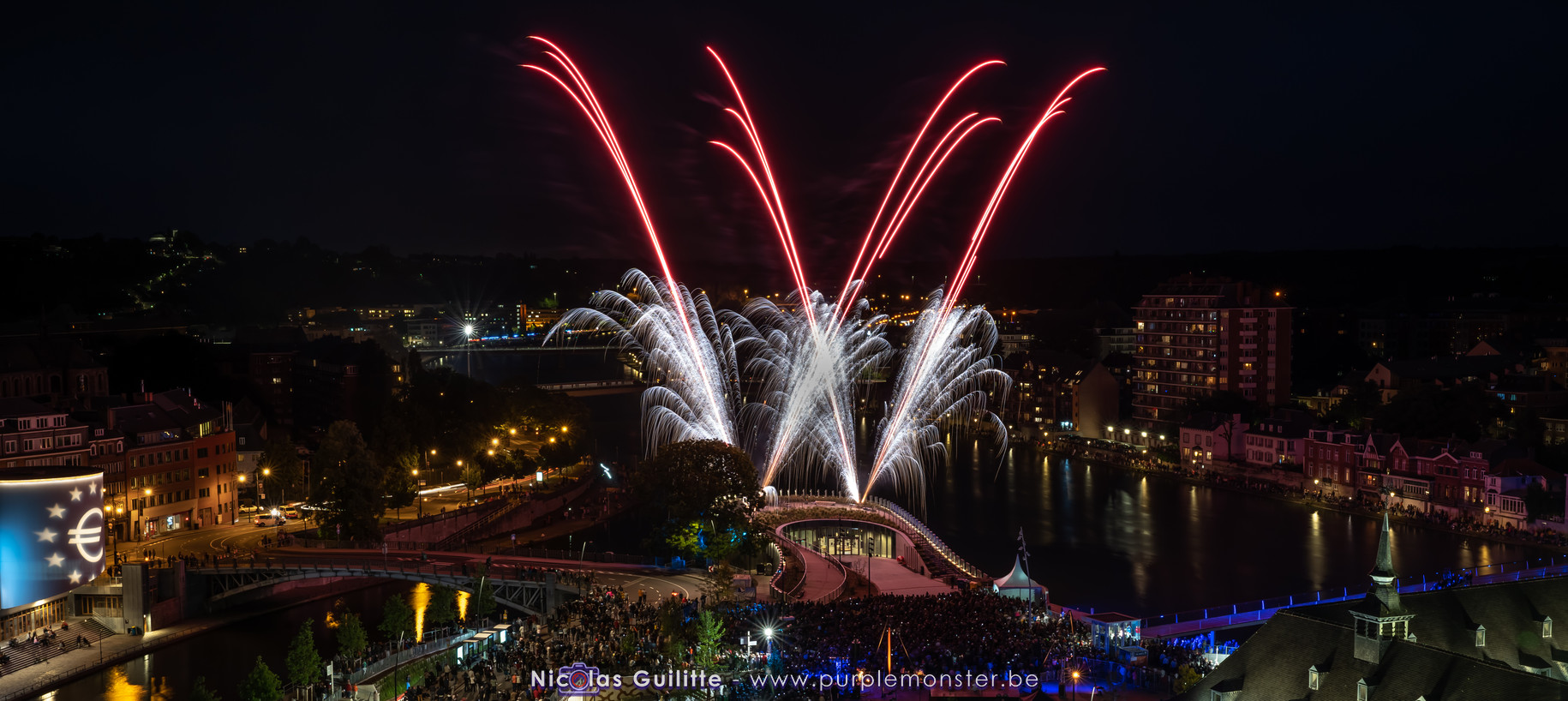 Quatrième et dernier feu de ce début de saison, quasiment à domicile pour une fois, à l'occasion du vingtième anniversaire de l'Euro. Le fait d'avoir choisi Namur pour fêter un tel événement peut paraître un peu étrange, mais je ne vais pas m'en plaindre. A l'annonce de l'événement, étant donné que celui-ci était offert par la commission européenne, je m'attendais à du lourd et à un show de grande envergure, avant d'apprendre quelques semaines plus tard qu'il sera finalement assez modeste, avec une fois de plus un feu à bruit contenu (le 3° tout de même, sur les 4 que j'aurai vus en 5 semaines). Petite déception à ce niveau-là donc, mais ce n'était pas une raison pour ne pas y aller, car je savais que le feu serait tout de même de qualité.