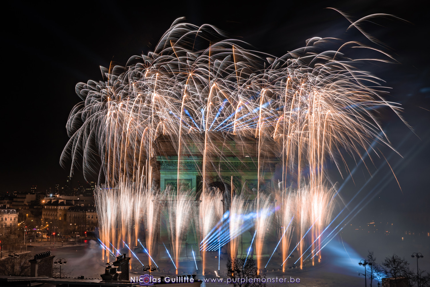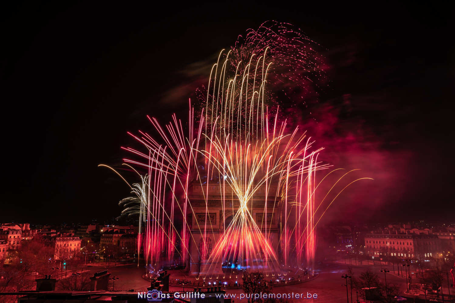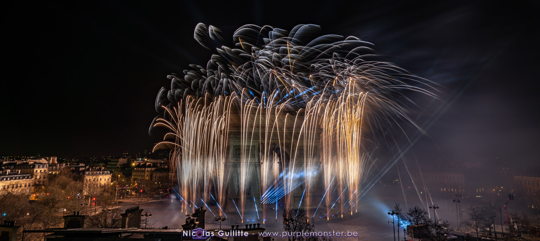 Après 4 passages à l'an neuf passés aux Emirats arabes unis, cette année ce sera Paris, face à l'Arc de Triomphe ! Après un show de vidéo-mapping, le décompte de la dernière minute de 2023 s'affiche sur le monument, l'ambiance monte dans la foule en contrebas, et atteint son paroxysme à l'heure H. Pendant 10 minutes, les salves de mono-coups se succèdent à un rythme effréné, à 360° autour du monument ainsi que sur le toit de celui-ci. Un show très lumineux et ultra-dynamique, et du coup pas toujours évident à photographier du fait des enchaînements très rapides, sur un espace très concentré, mais avec tout de même quelques belles photos en bout de course !