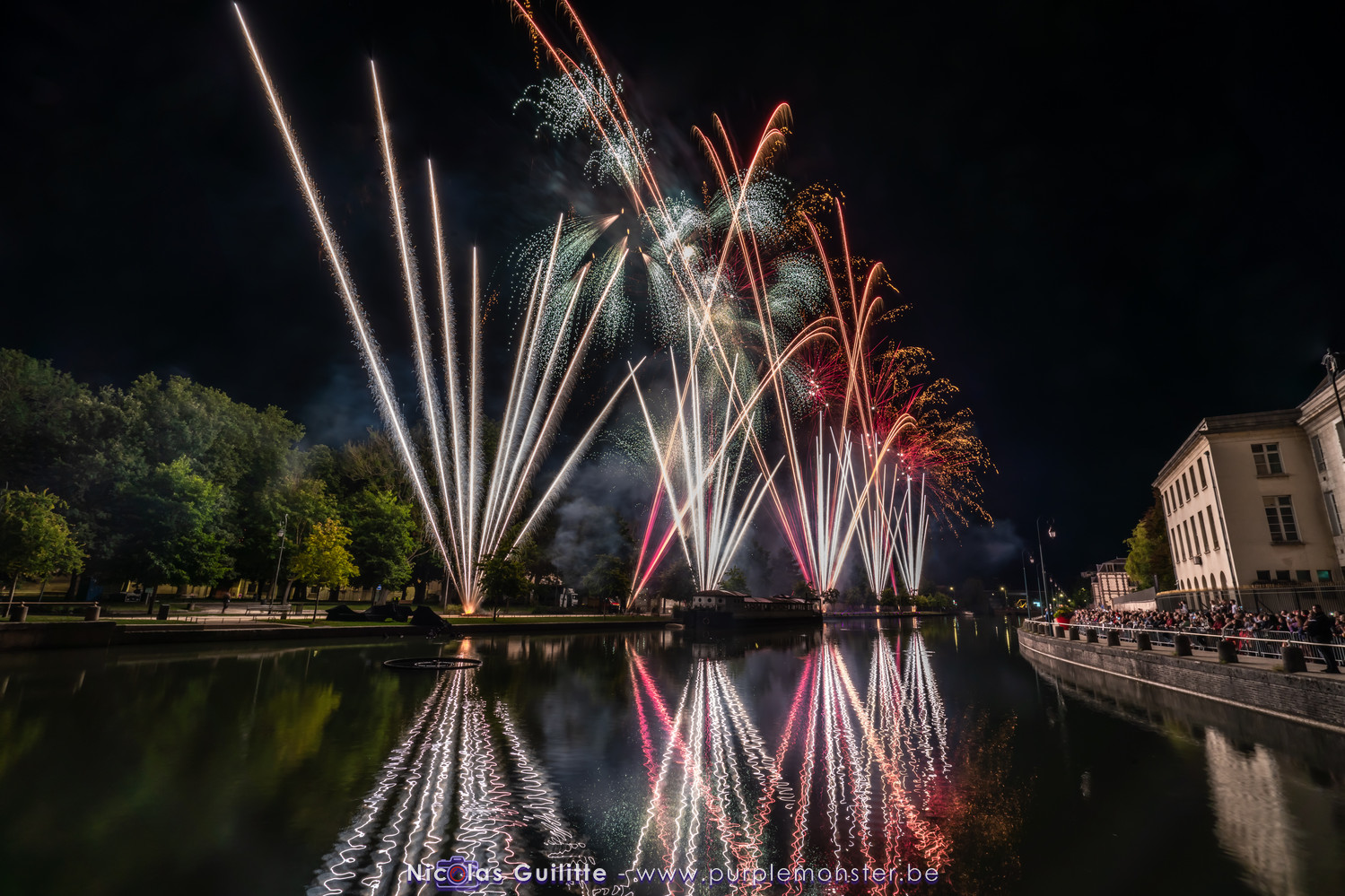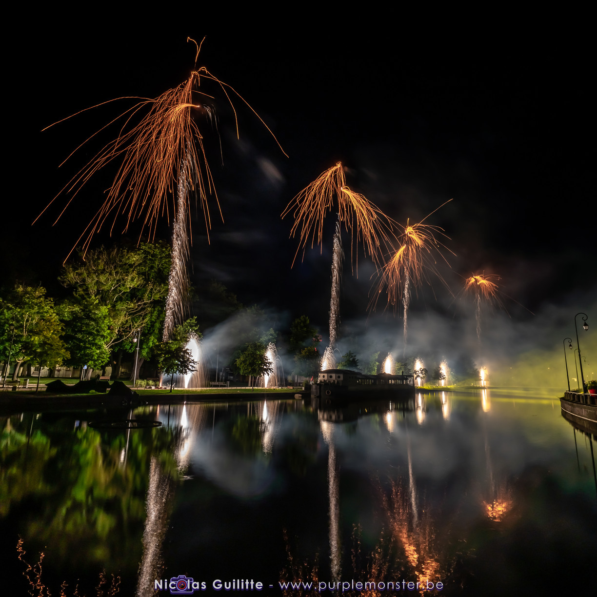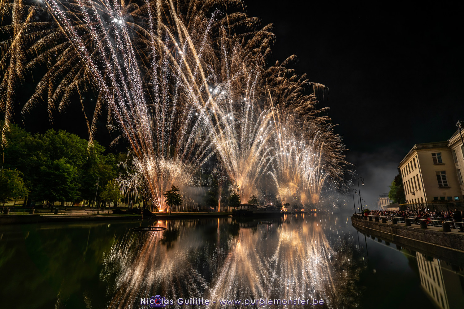 On prend les mêmes et on recommence ! Le programme des festivités du 13-14 juillet de 2024 aura été identique à celui de 2023 : avant de rejoindre Paris, petit arrêt dans la ville de Troyes pour le feu de POK 2.0 Lux Factory. Histoire de varier les photos par rapport à l’année précédente, j’ai posé les trépieds du côté opposé par rapport au feu, ce qui était une très bonne idée, le plan d’eau étant un peu plus large de ce côté-là, offrant de très beaux reflets.