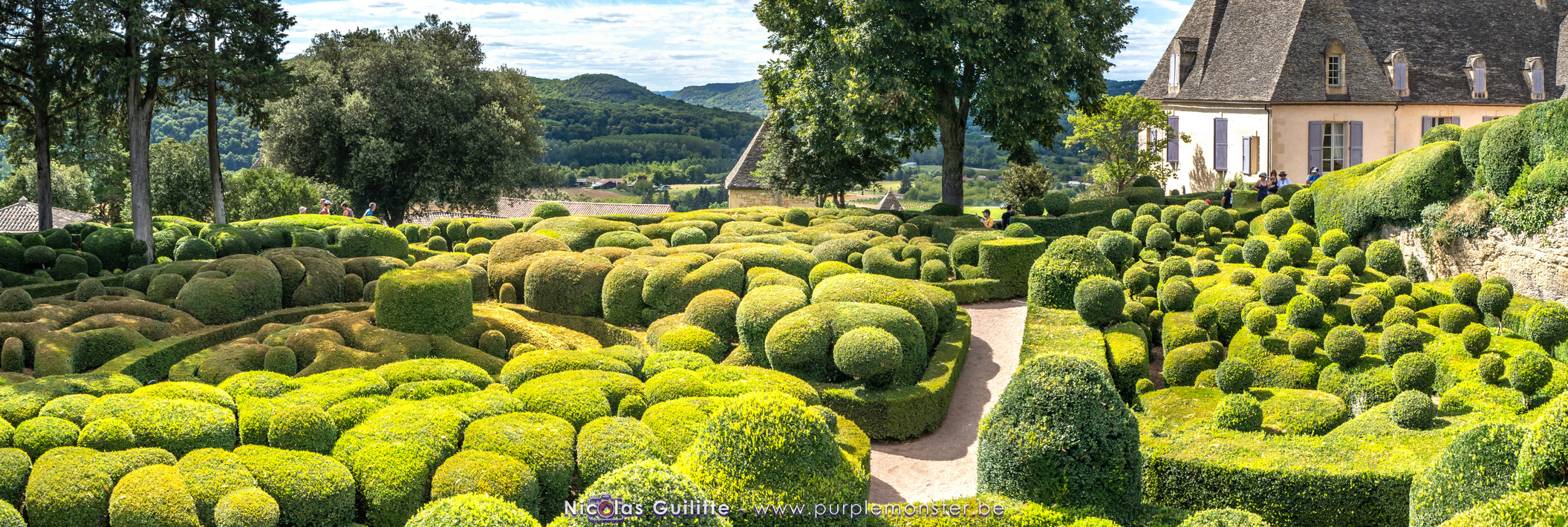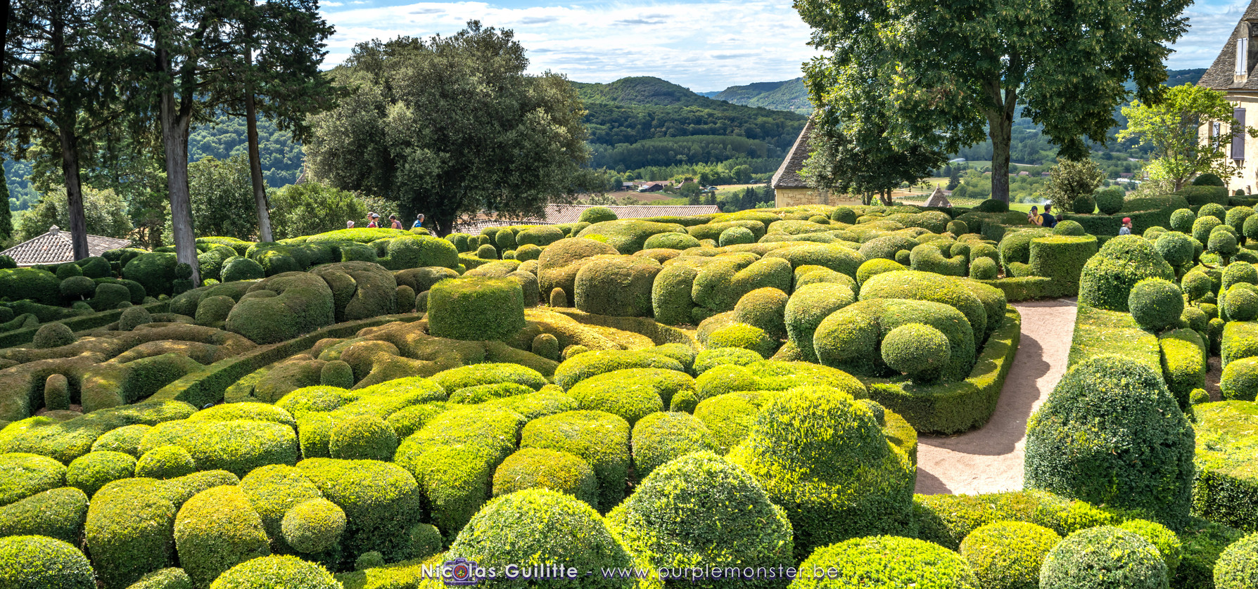 Petite balade dans les jardins de Marqueyssac, situés entre Beynac-et-Cazenec, dont on a une très belle vue sur le château depuis l'entrée du parc, et la Roque-Gageac, que l'on peut admirer depuis un belvédère culminant à 130m de haut. Outre les panoramas sur les alentours, le parc offre quelques autres curiosités insolites, entre autres un dédale de centaines de petits buissons taillés à la main, qui pourraient faire penser à des décors d'Alice au pays des merveilles.