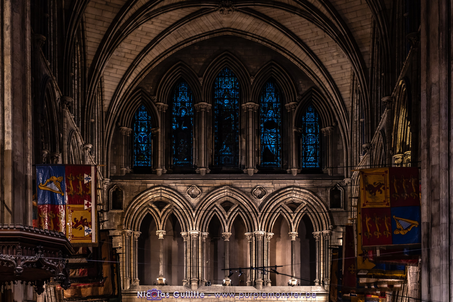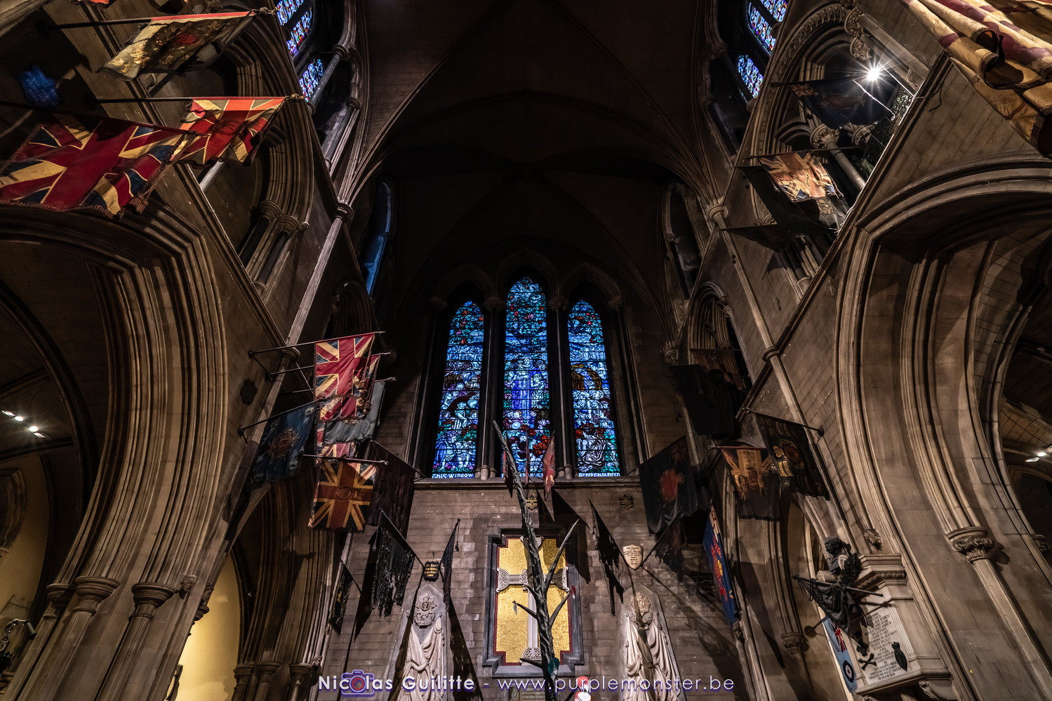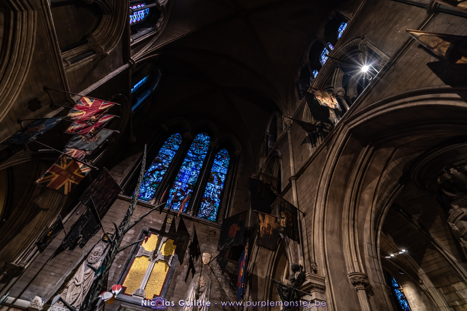 La cathédrale St-Patrick, joyau de l'art gothique avec ses nombreux drapeaux et vitraux bleus.
