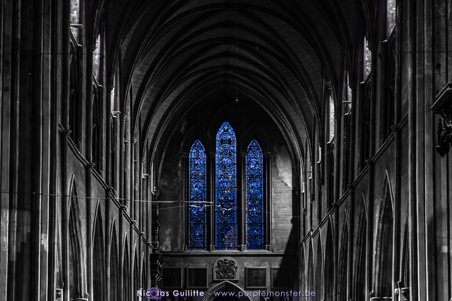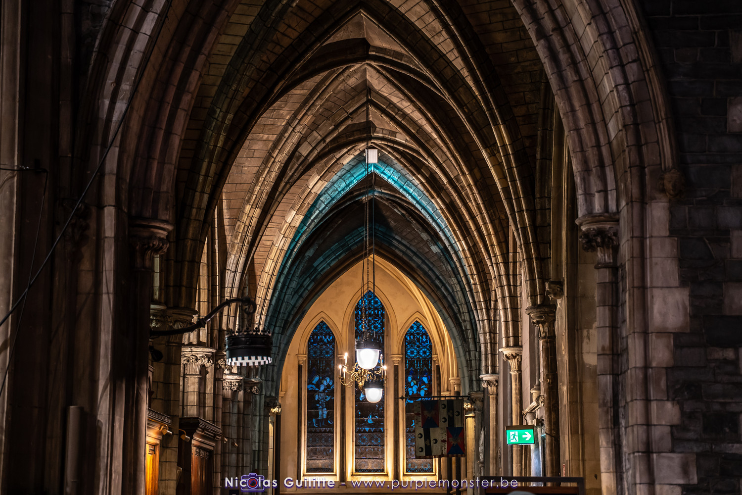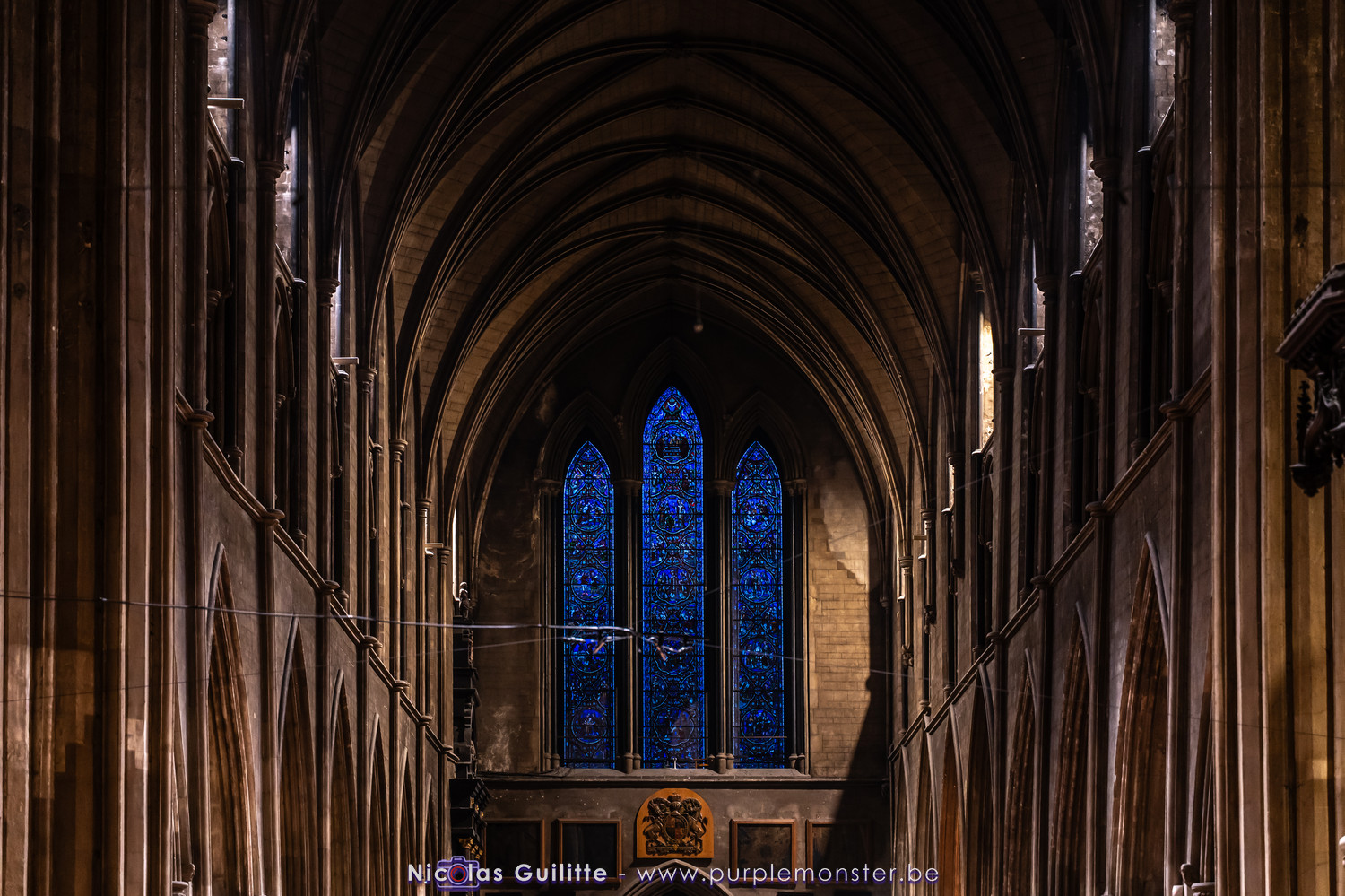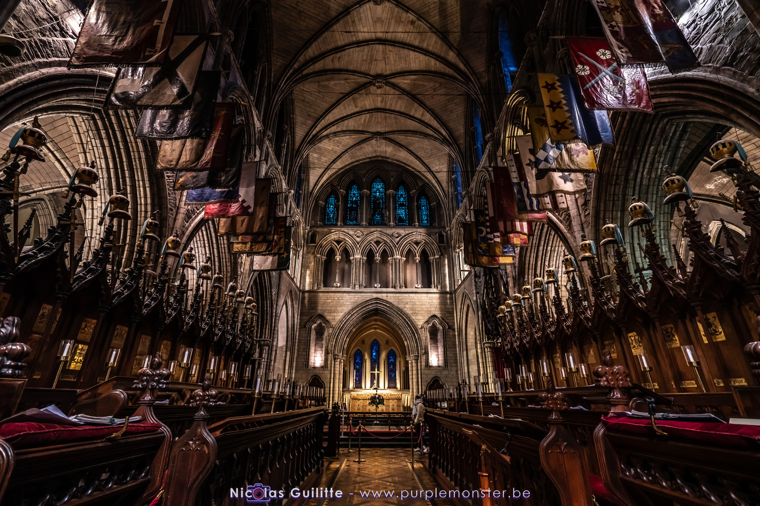 La cathédrale St-Patrick, joyau de l'art gothique avec ses nombreux drapeaux et vitraux bleus.