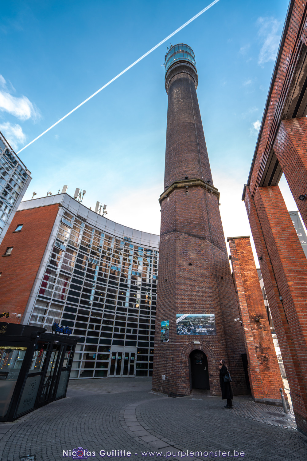A l'arrière de la distillerie de whisky Jameson, une ancienne cheminée de 60m de haut reconvertie en tour panoramique. Découverte par hasard, car étrangement, peu de sites touristiques la mentionnent, peut-être parce que l'ascenseur est hors-service (apparemment depuis des années), obligeant les visiteurs à emprunter un escalier étroit en colimaçon de plus de 250 marches !