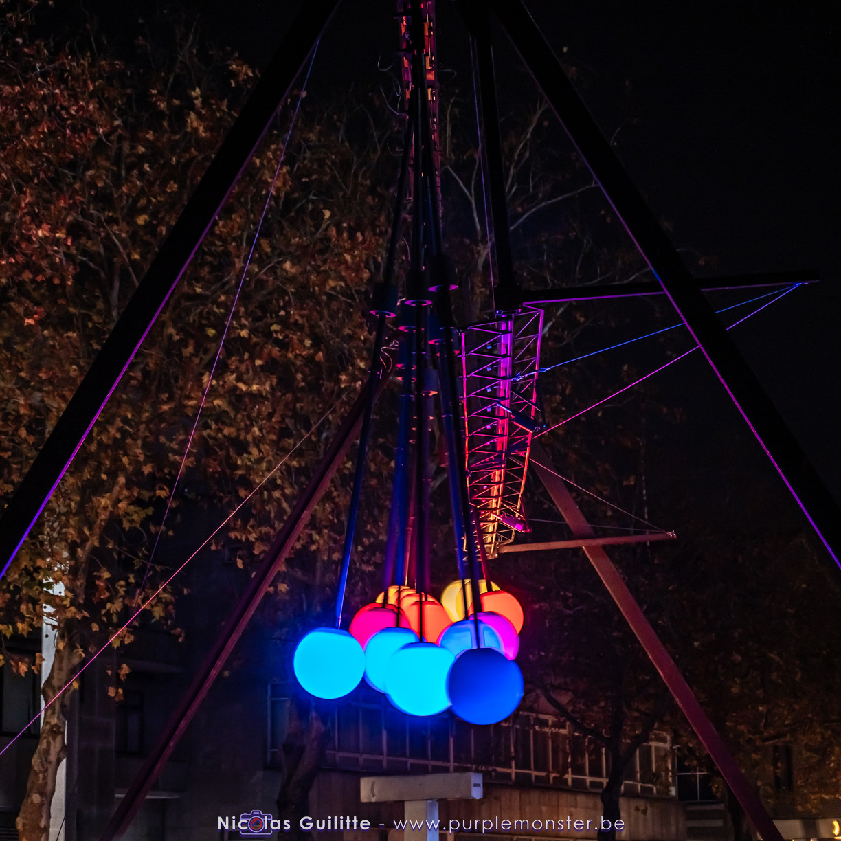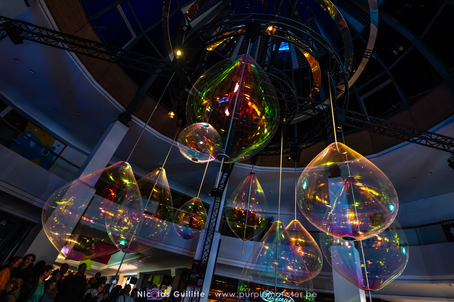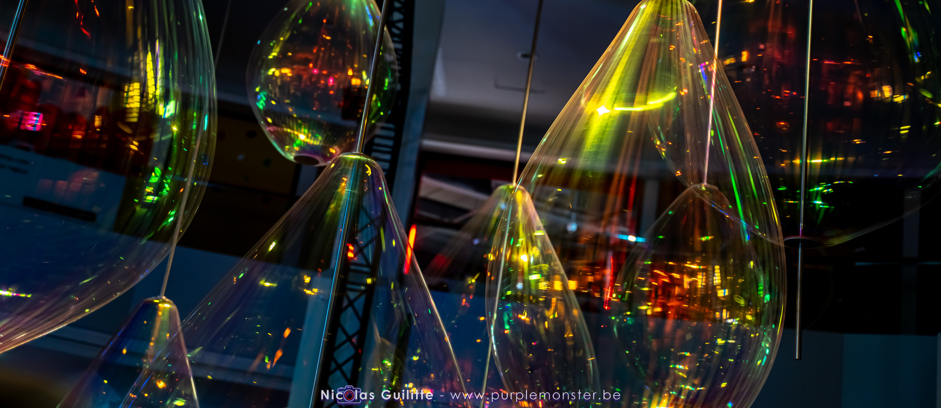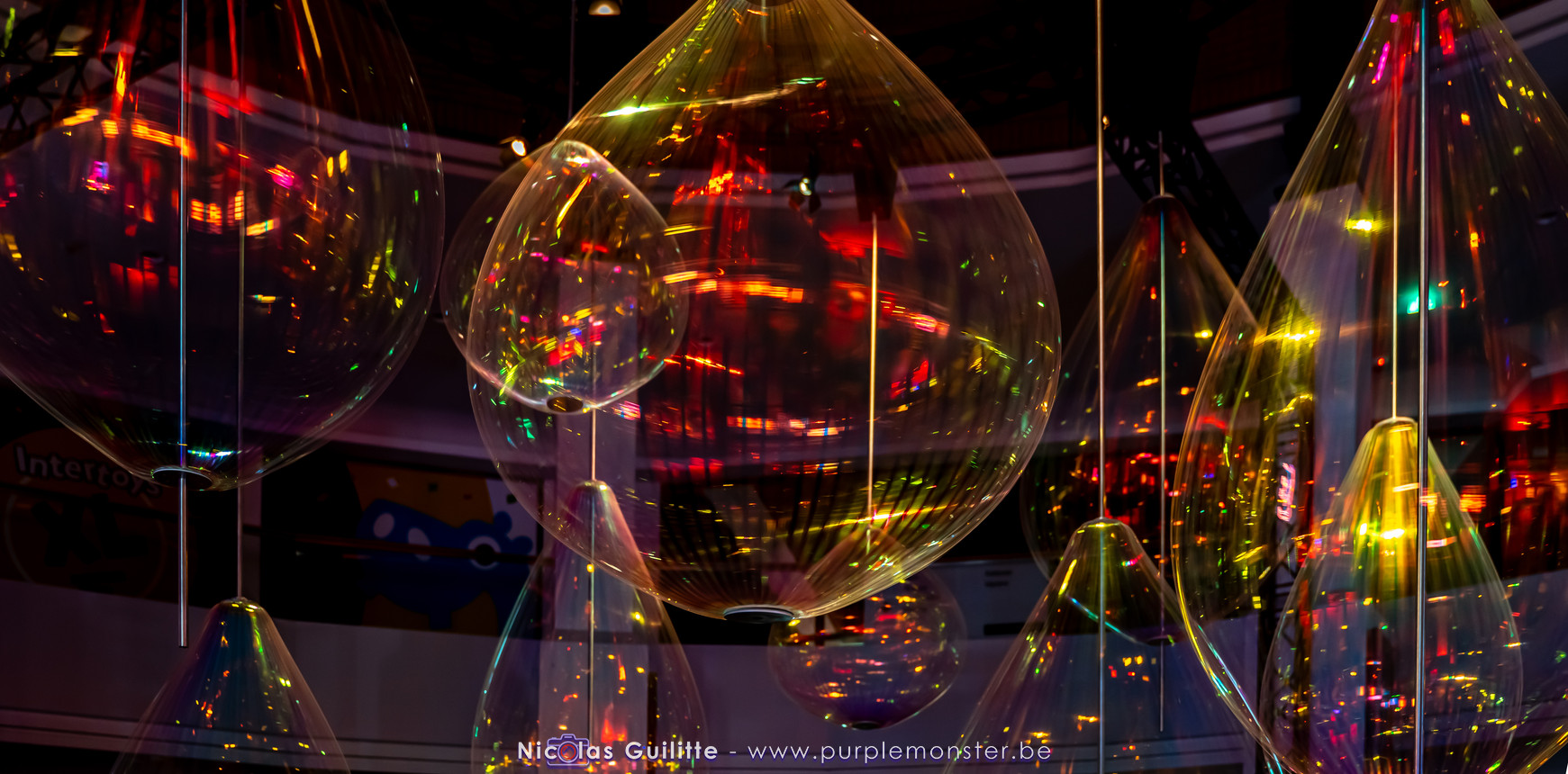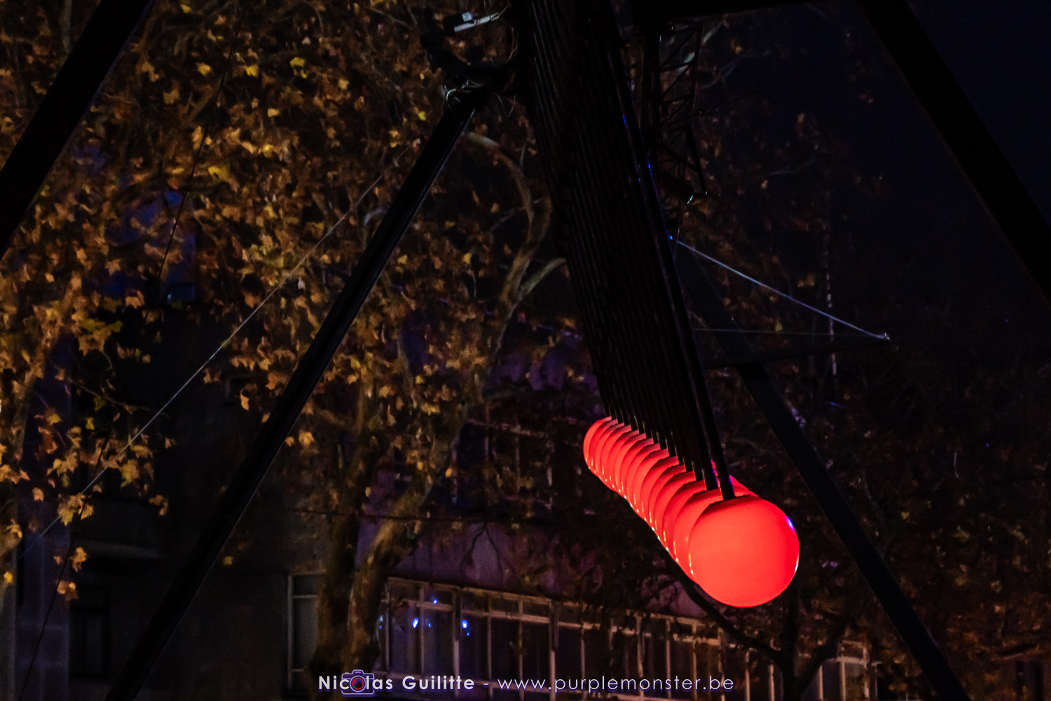 Une installation que j'avais déjà pu voir il y a plusieurs années, se présentant comme un ensemble de pendules géants de différentes longueurs, terminés par une boule lumieuse, et oscillant selon les lois de la physique en formant des sortes de vagues. Pas évident à prendre en photo, mais très hypnotique à regarder !