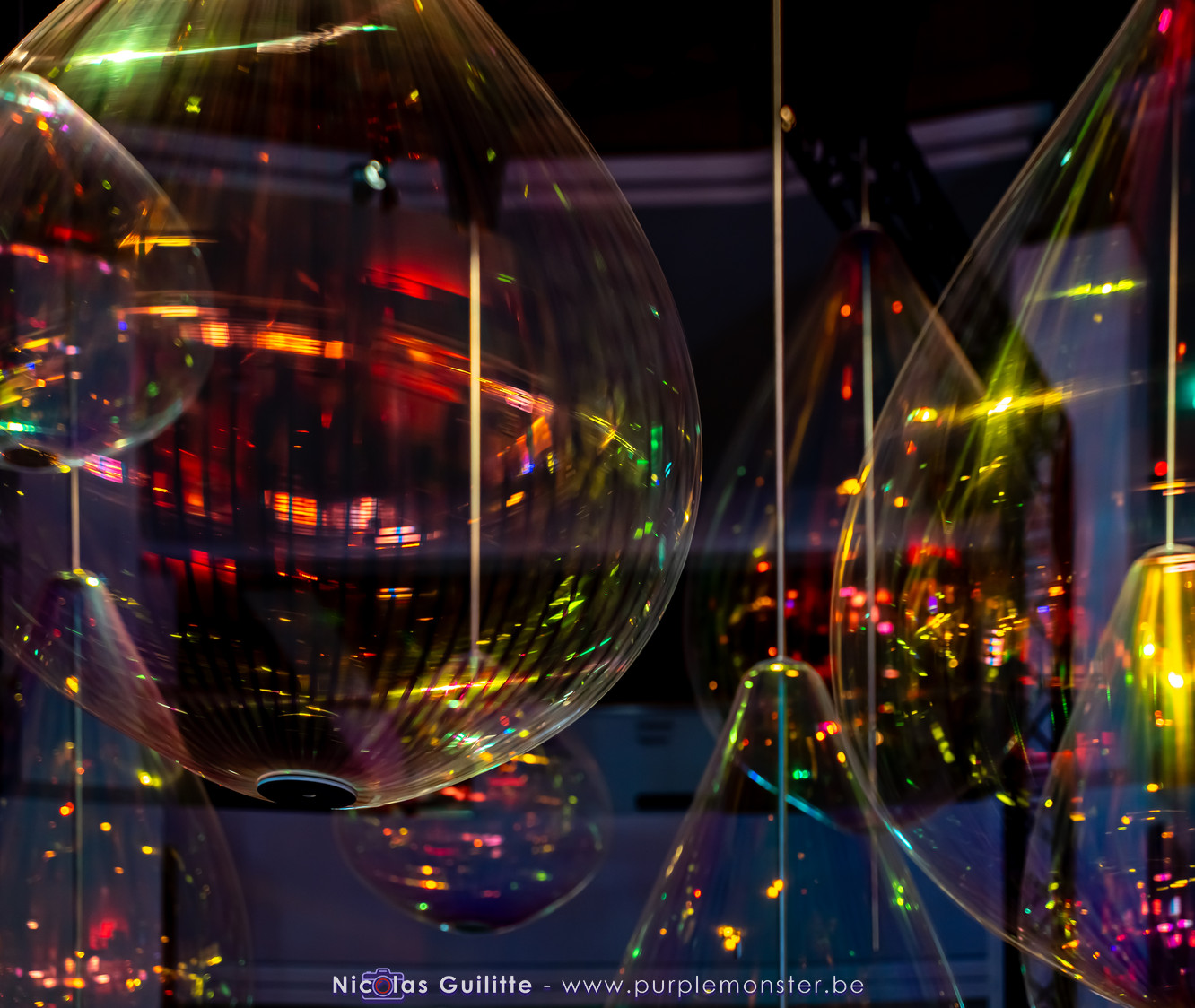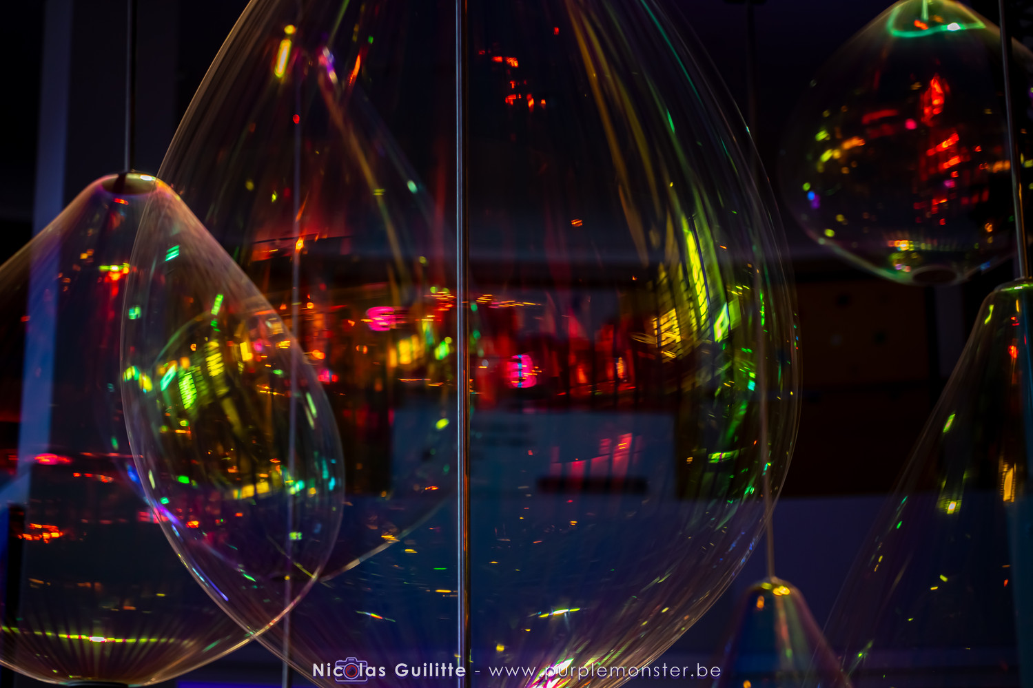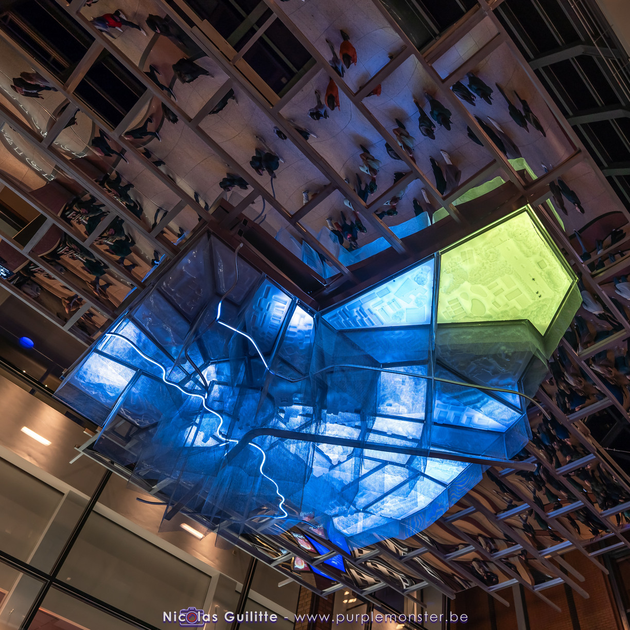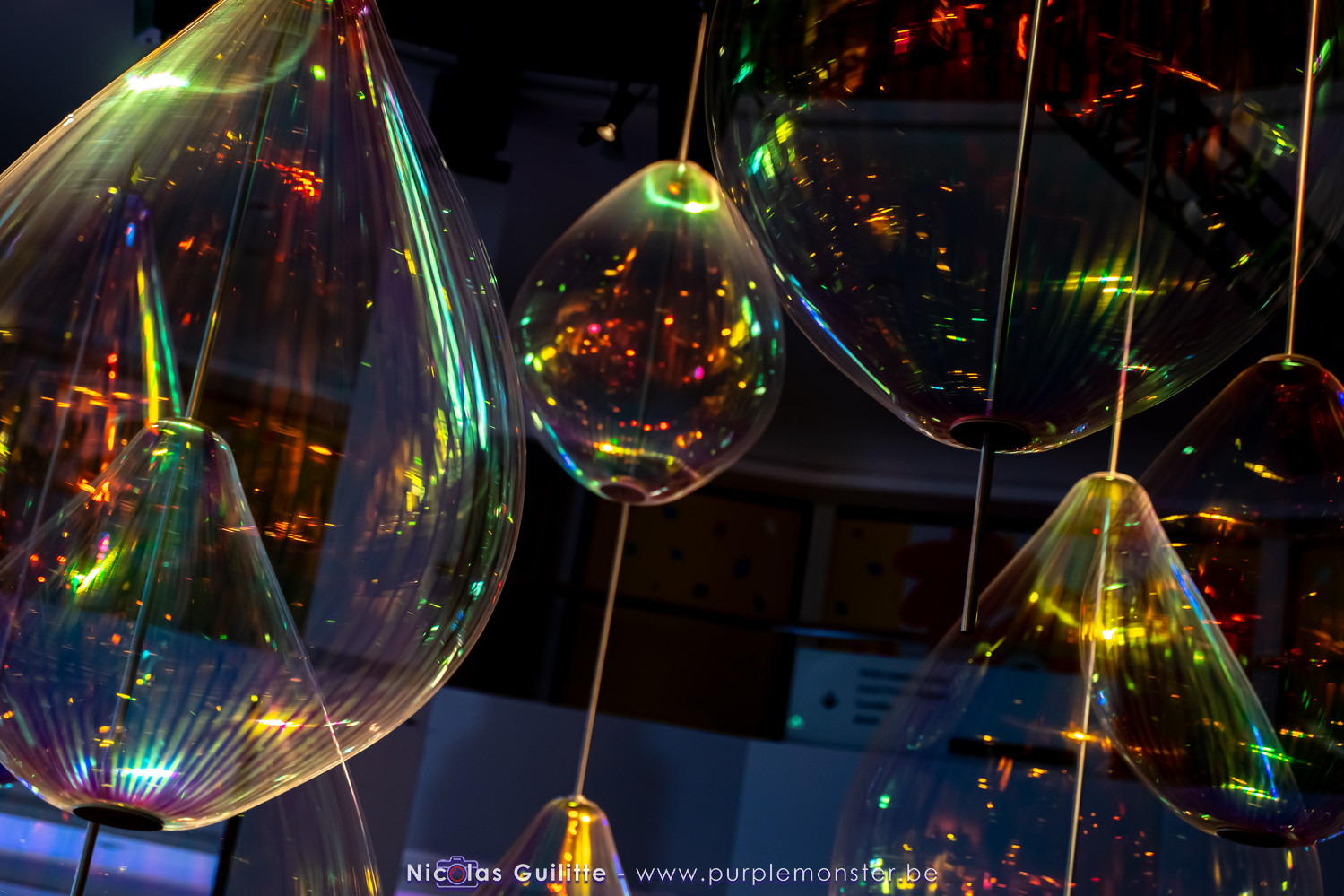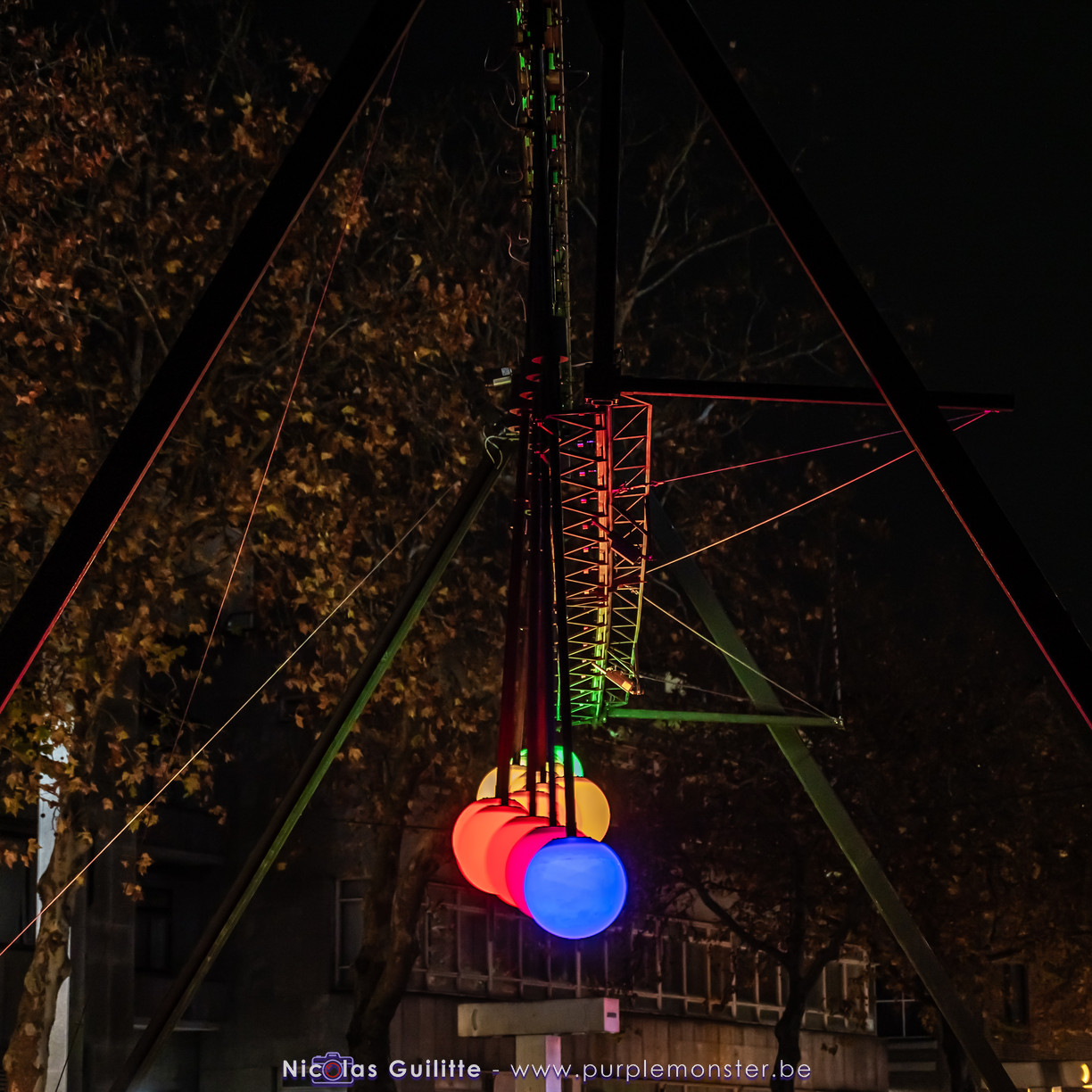 Une installation que j'avais déjà pu voir il y a plusieurs années, se présentant comme un ensemble de pendules géants de différentes longueurs, terminés par une boule lumieuse, et oscillant selon les lois de la physique en formant des sortes de vagues. Pas évident à prendre en photo, mais très hypnotique à regarder !