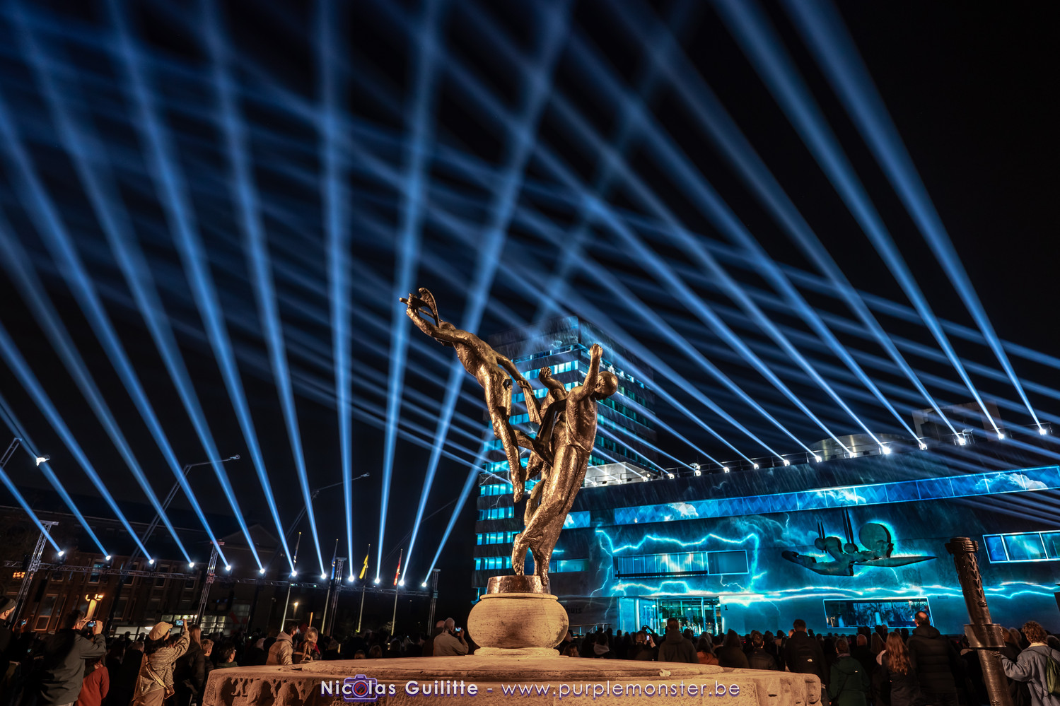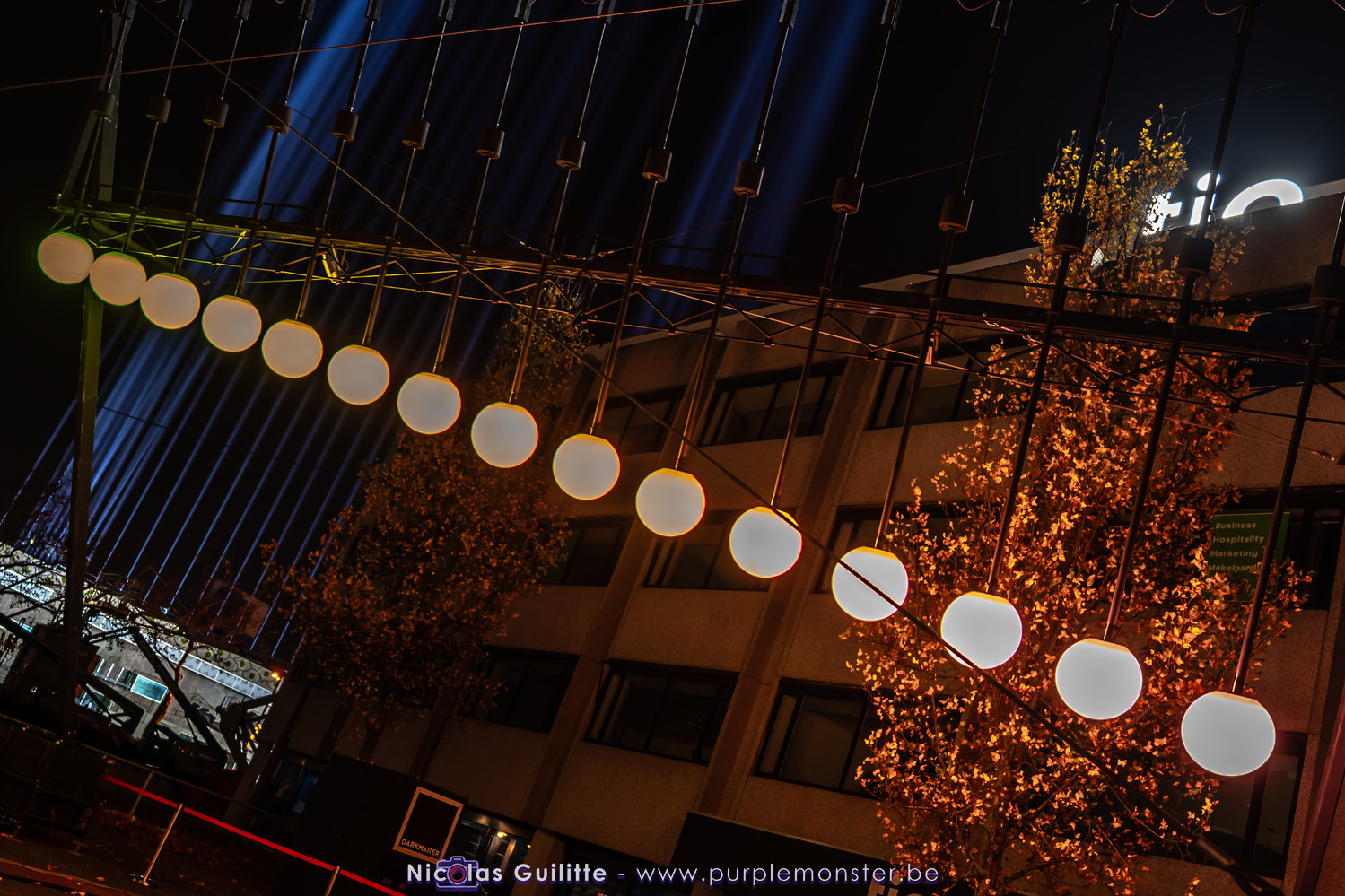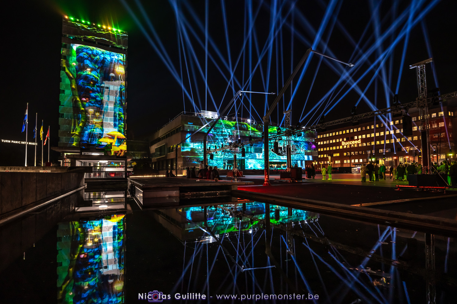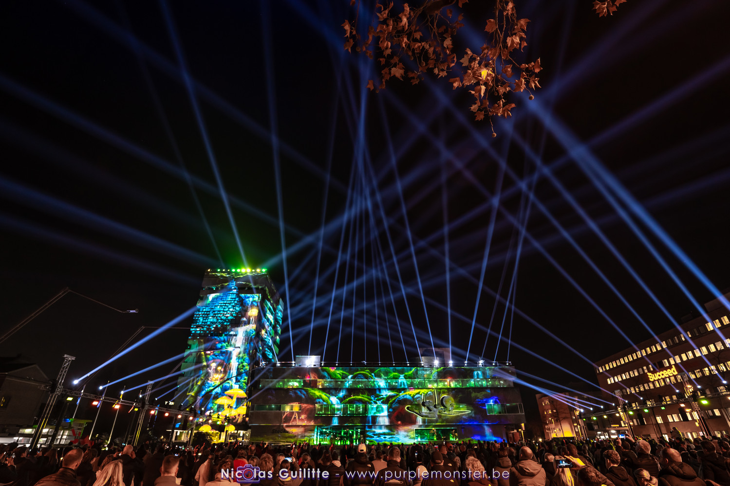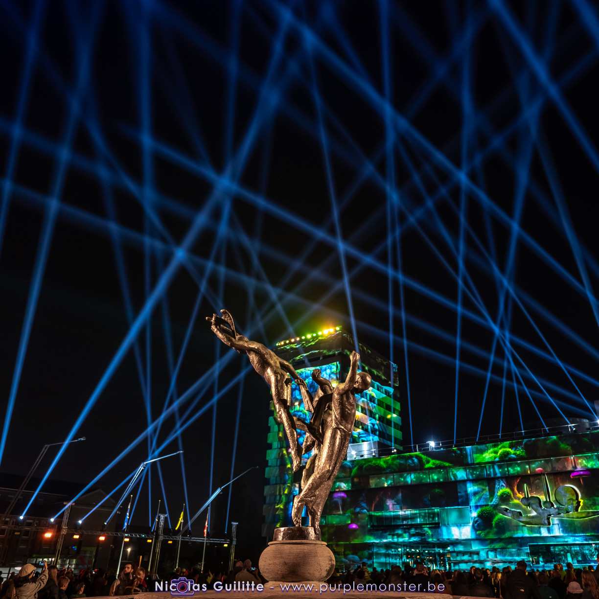 L'installation sans doute la plus impressionnante du festival, mêlant video-mapping et jeux de lumières. Le mapping en lui-même n'était pas spécialement original, d'autant plus que les 2 buildings servant de support étaient très basiques. En revanche le ballet de skytracers qui accompagnait le show était particulièrement réussi, visible depuis à peu près partout dans la ville.