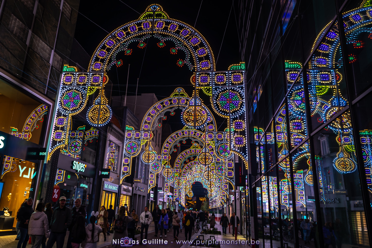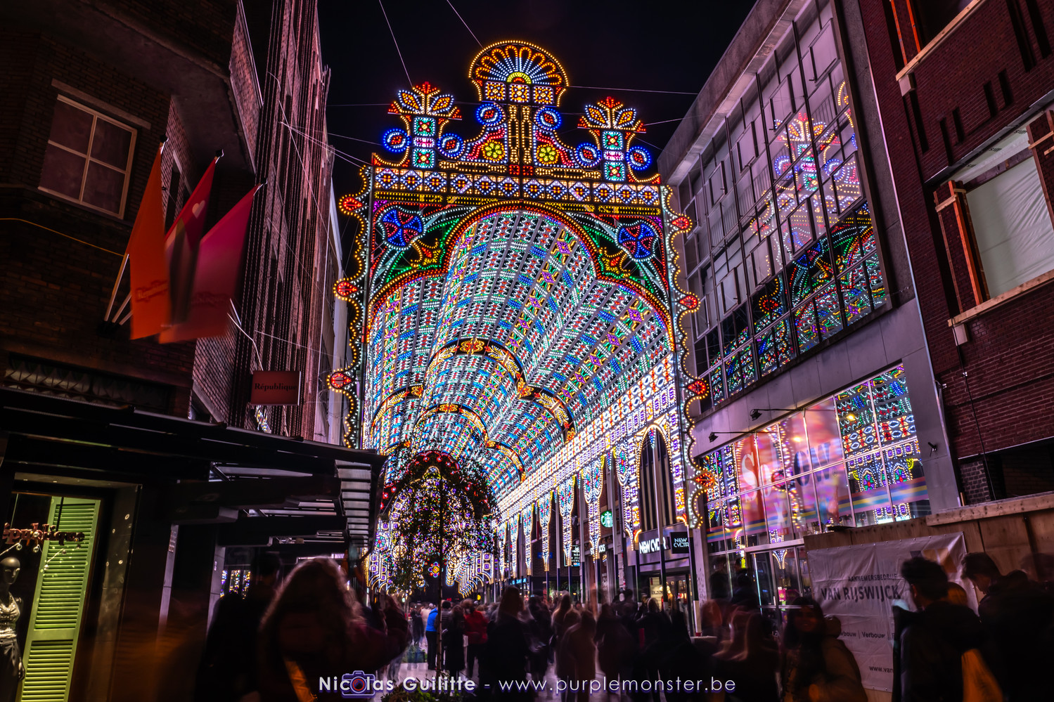 Une autre installation d'envergure, avec ce véritable tunnel de lumières sur plusieurs dizaines de mètres, donnant à la rue un petit air de "Fremont Street", cette célèbre rue couverte de Las Vegas avec son plafond lumineux. Ce n'est pas la première fois que je vois des oeuvres du même style produites par une société italienne, mais la magie opère à chaque fois !