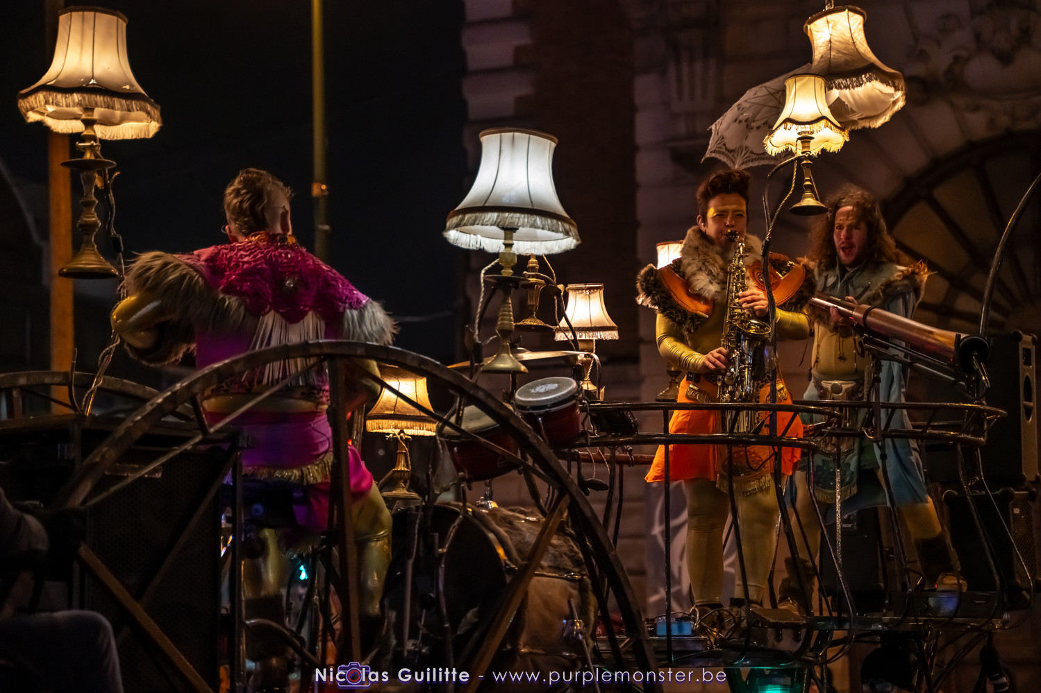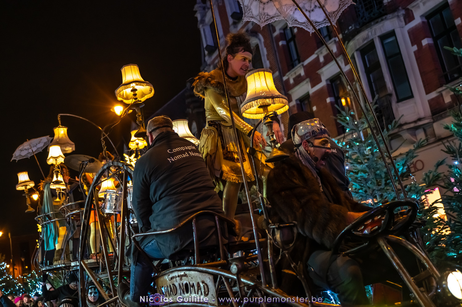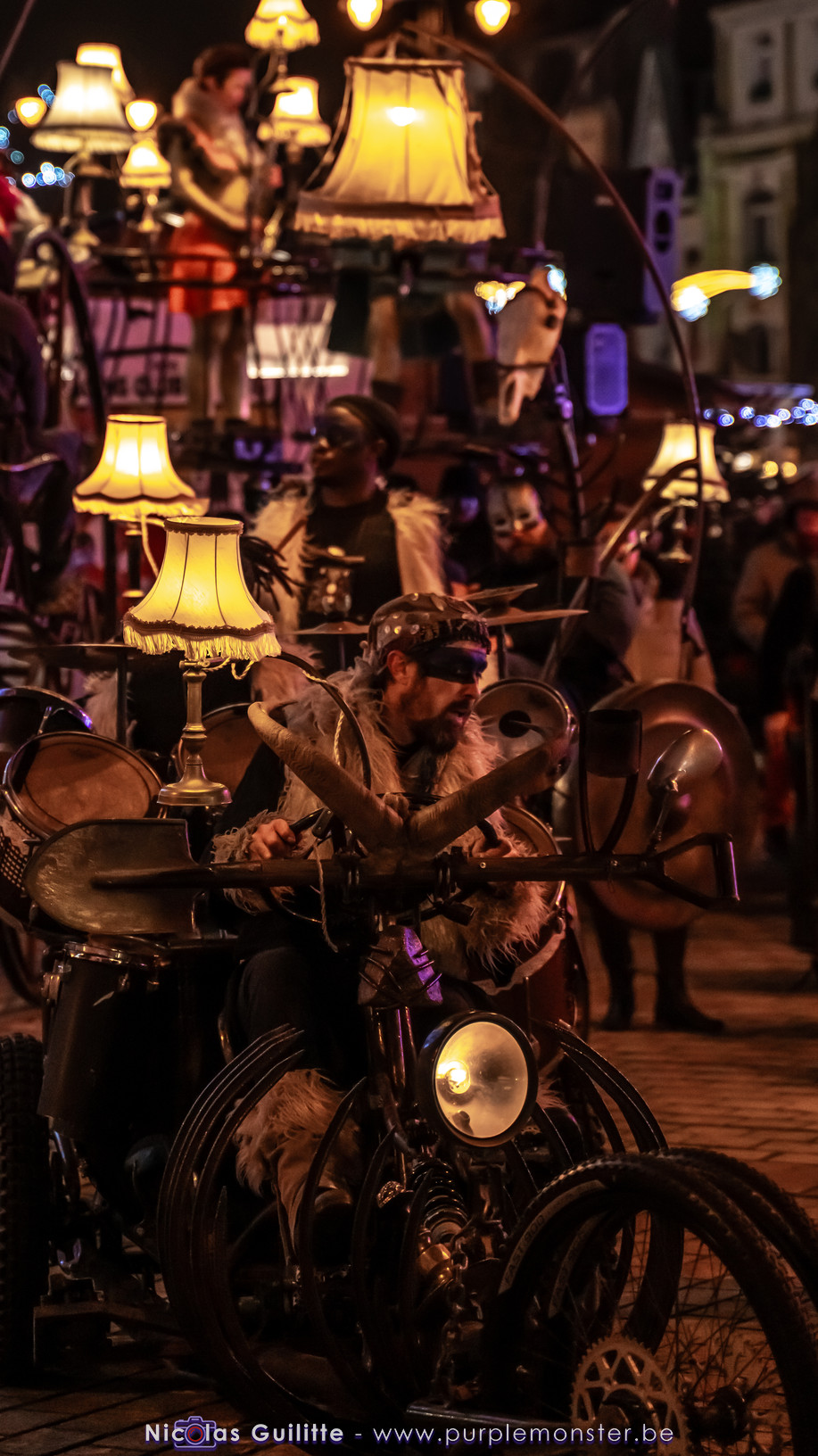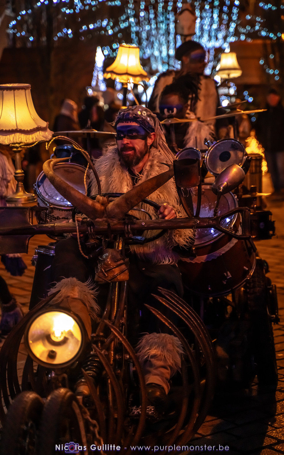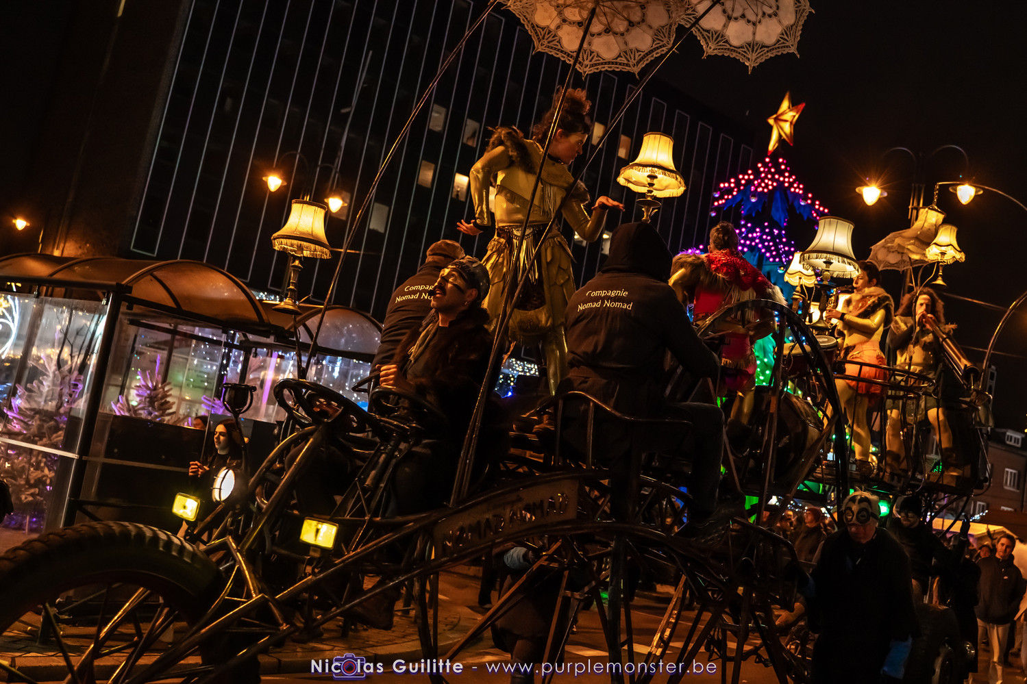 Lancement des festivités du week-end, dans le cadre du festival de la Sainte-Barbe, avec pour commencer une déambulation de la Cie Nomad Nomad dans le centre-ville de Lens, à bord de l'Ethno-Machine, un engin mobile en métal qui pourrait être sorti d'un univers de Mad Max, avec une petite touche baroque en plus, le tout dans une ambiance musicale assez envoûtante et entraînante à la fois, très sympa !