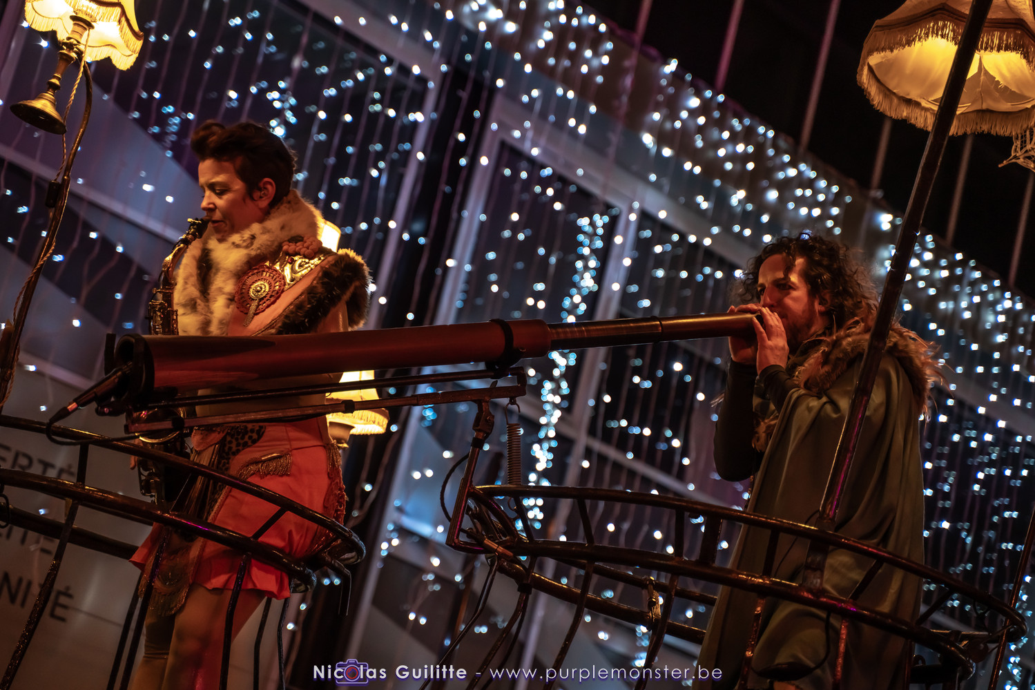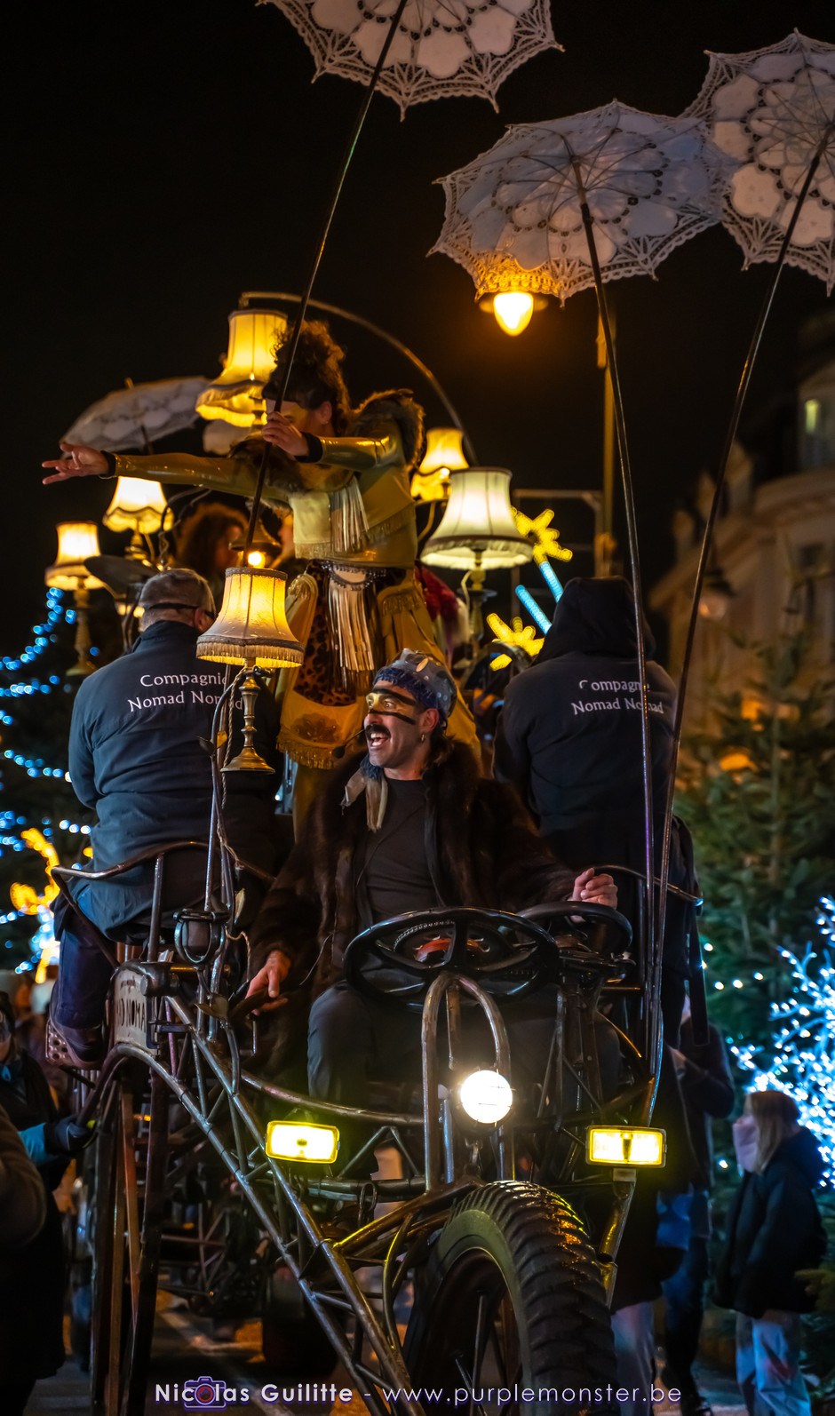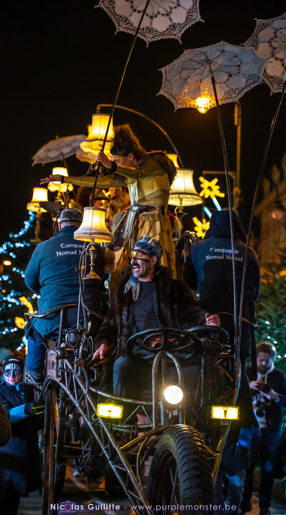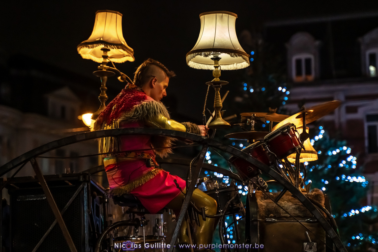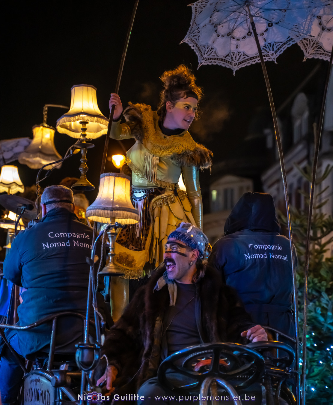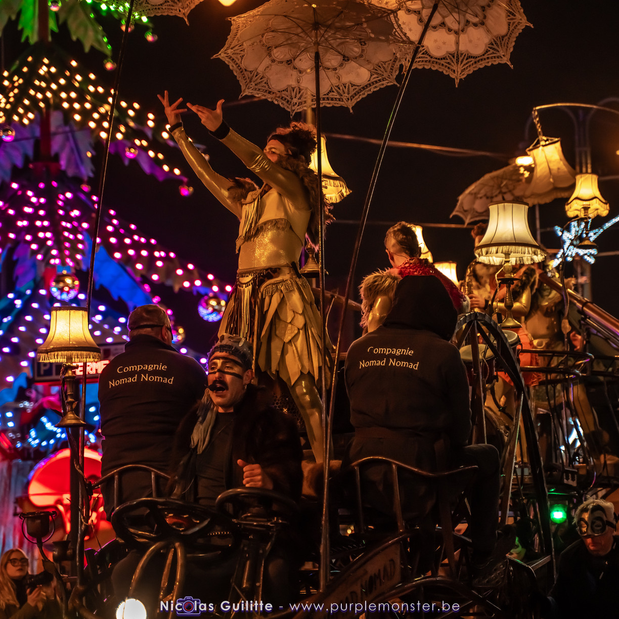 Lancement des festivités du week-end, dans le cadre du festival de la Sainte-Barbe, avec pour commencer une déambulation de la Cie Nomad Nomad dans le centre-ville de Lens, à bord de l'Ethno-Machine, un engin mobile en métal qui pourrait être sorti d'un univers de Mad Max, avec une petite touche baroque en plus, le tout dans une ambiance musicale assez envoûtante et entraînante à la fois, très sympa !