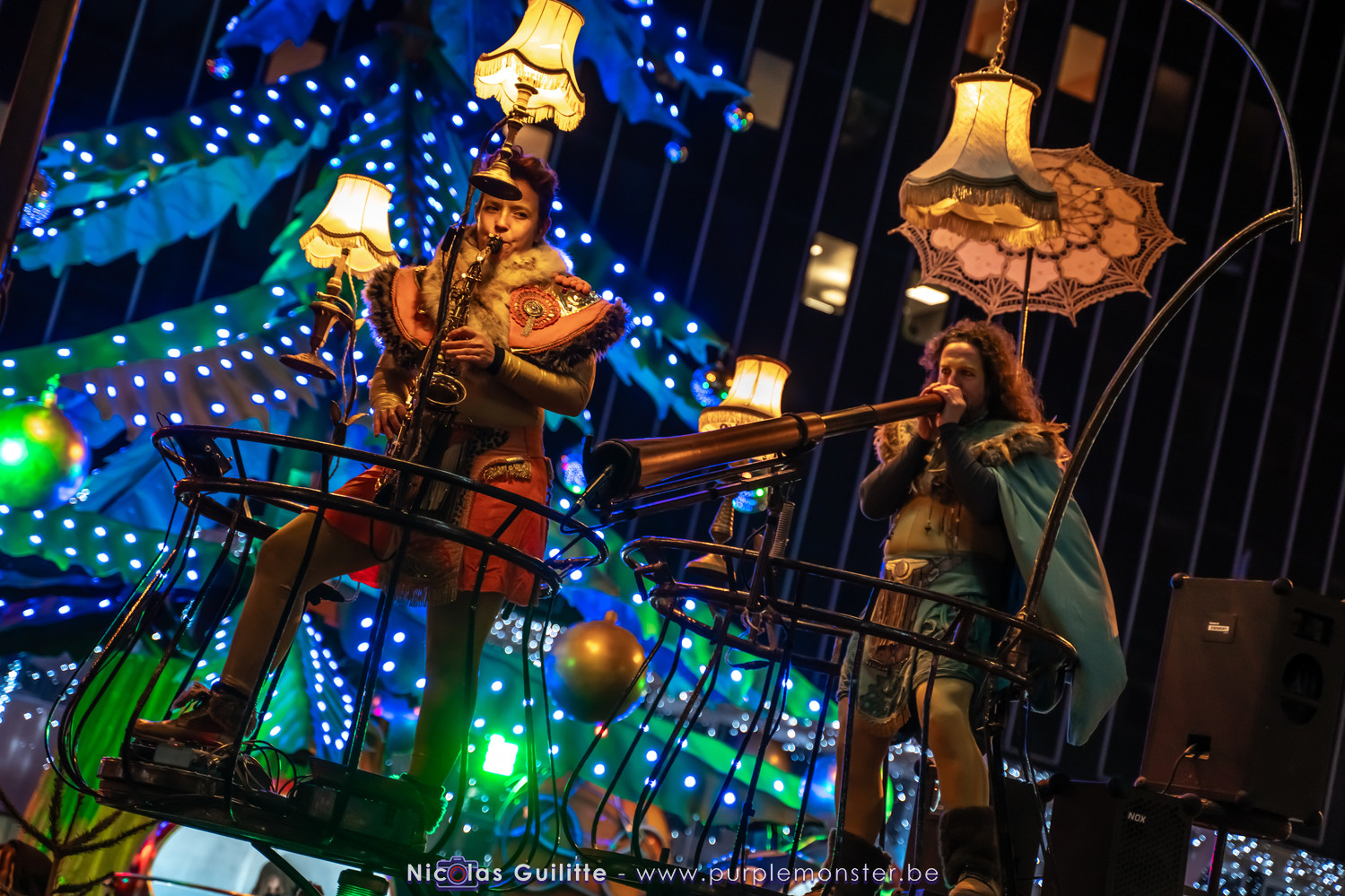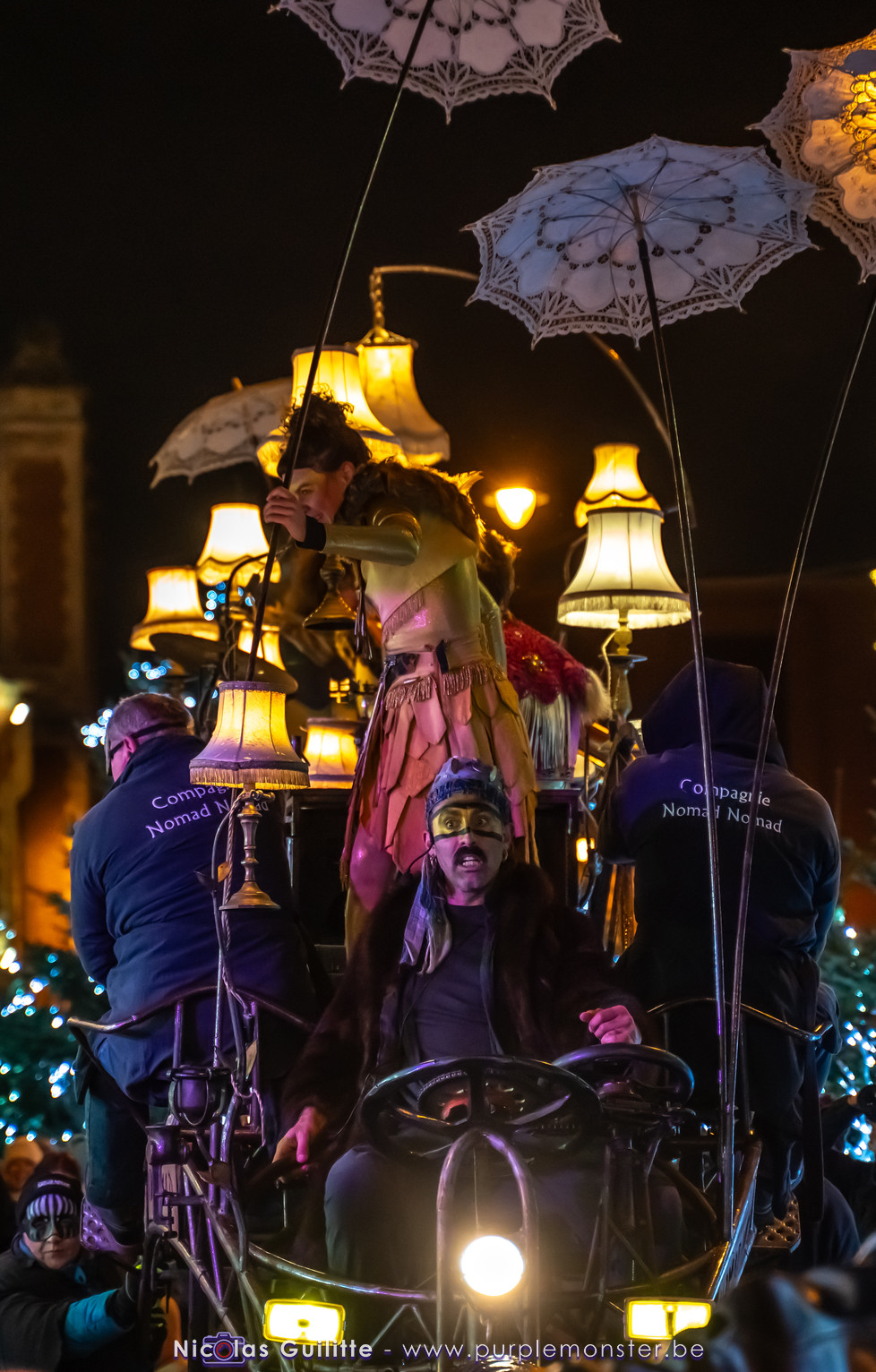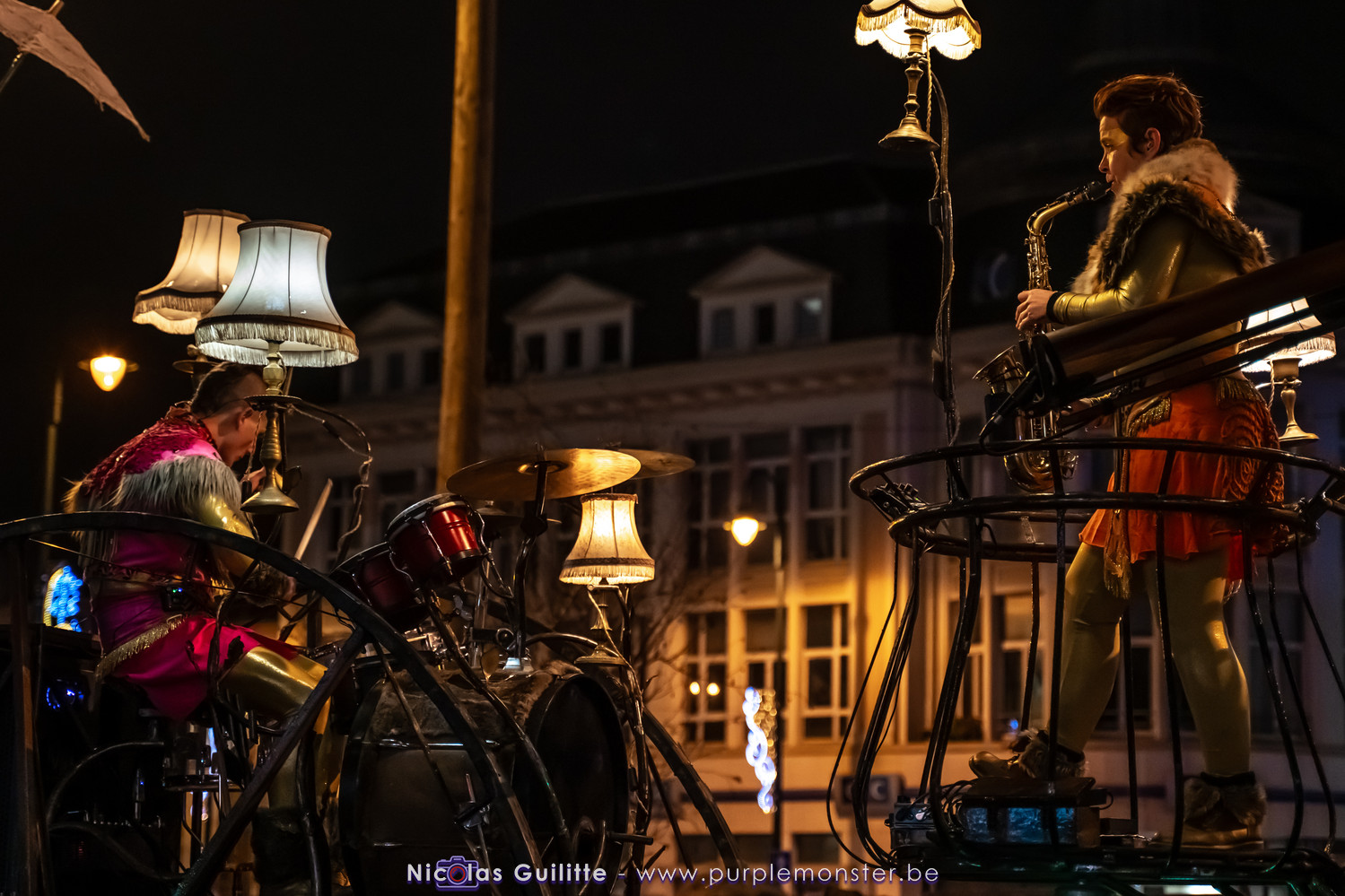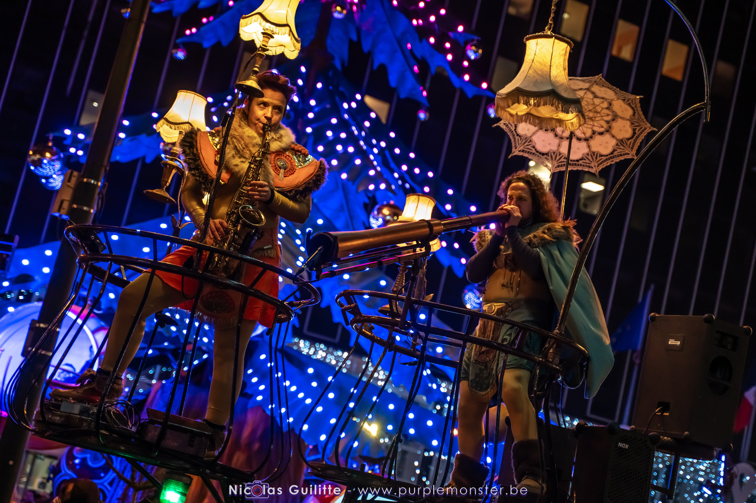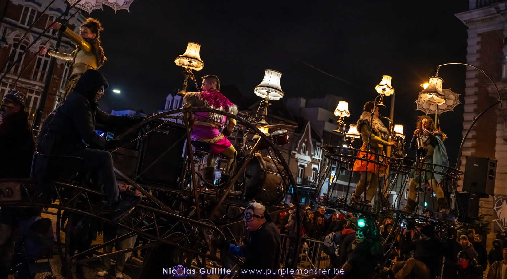 Lancement des festivités du week-end, dans le cadre du festival de la Sainte-Barbe, avec pour commencer une déambulation de la Cie Nomad Nomad dans le centre-ville de Lens, à bord de l'Ethno-Machine, un engin mobile en métal qui pourrait être sorti d'un univers de Mad Max, avec une petite touche baroque en plus, le tout dans une ambiance musicale assez envoûtante et entraînante à la fois, très sympa !