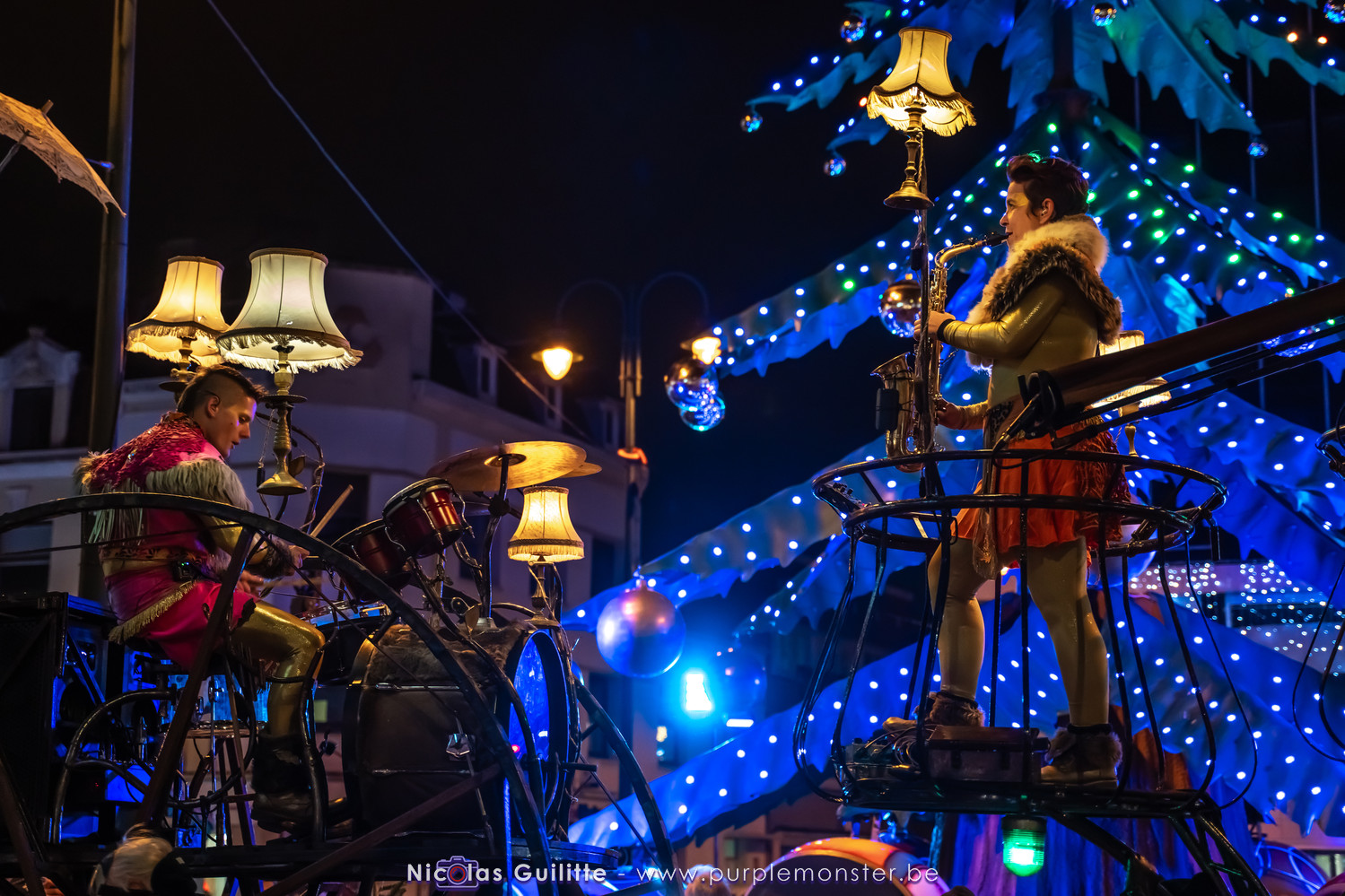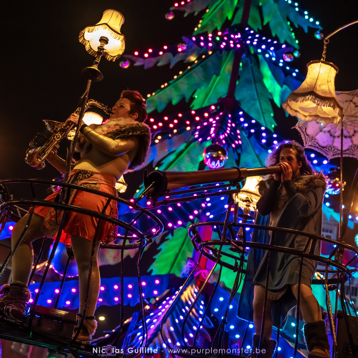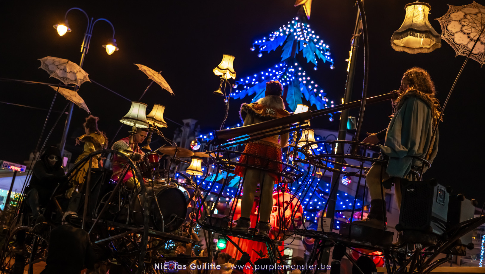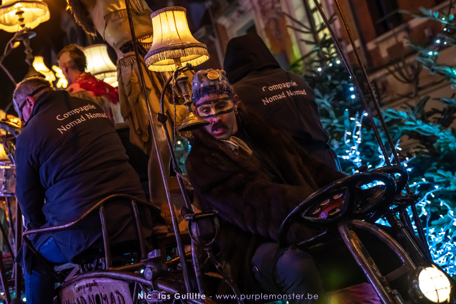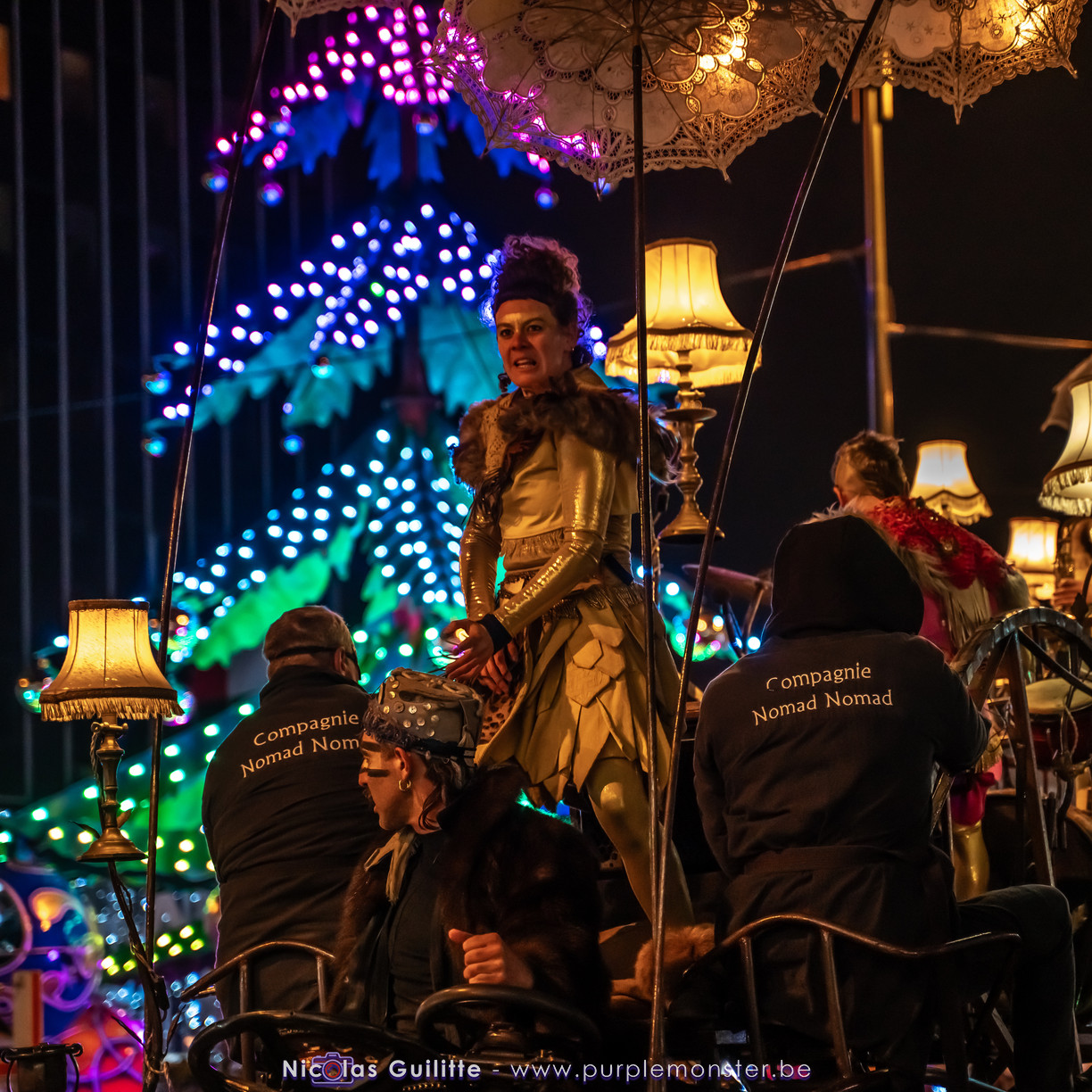 Lancement des festivités du week-end, dans le cadre du festival de la Sainte-Barbe, avec pour commencer une déambulation de la Cie Nomad Nomad dans le centre-ville de Lens, à bord de l'Ethno-Machine, un engin mobile en métal qui pourrait être sorti d'un univers de Mad Max, avec une petite touche baroque en plus, le tout dans une ambiance musicale assez envoûtante et entraînante à la fois, très sympa !