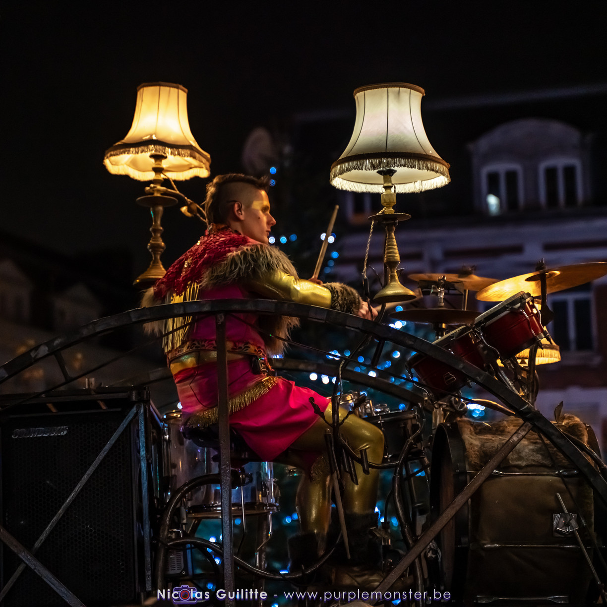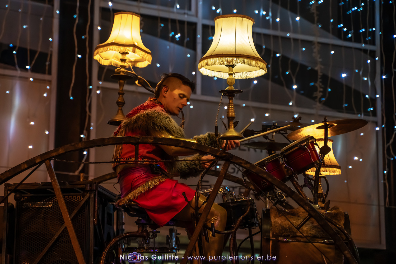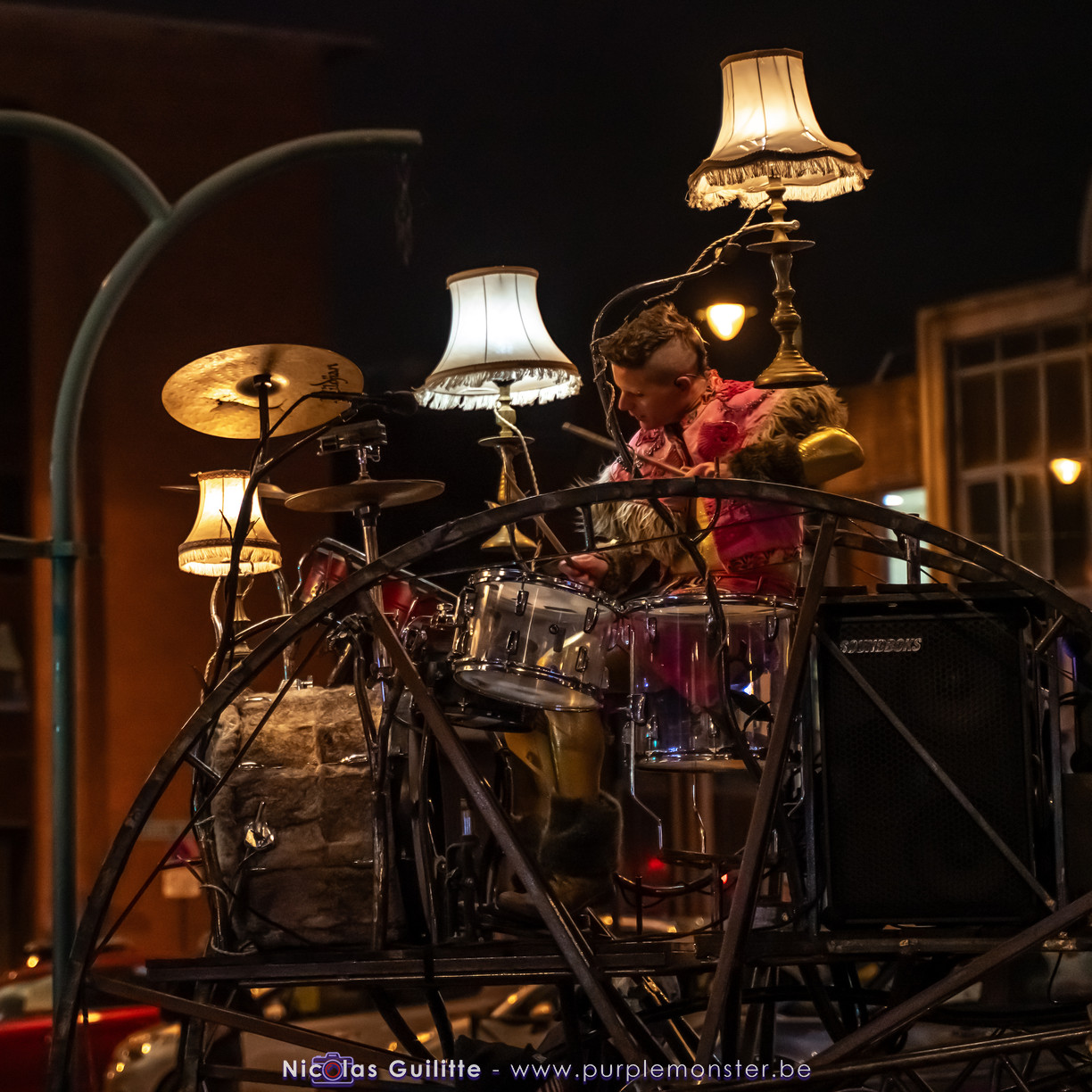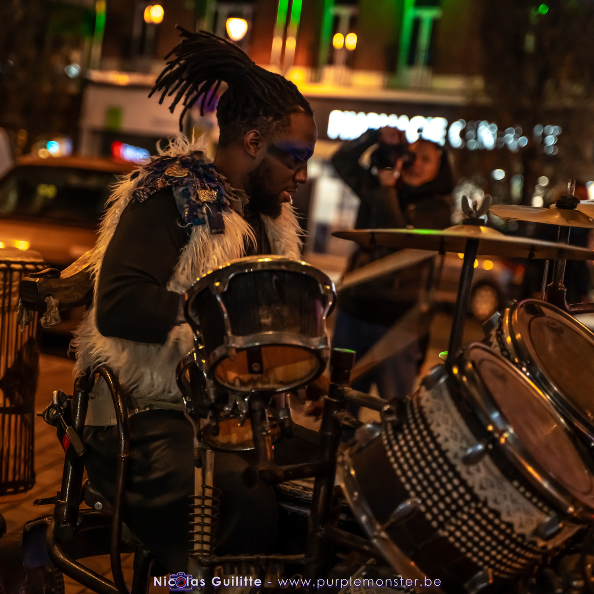 La "Batt Mobile" prend le relais, un tricycle géant servant de support à de multiples instruments de percussions, déambulant sous des rythmes tribaux très énergiques.