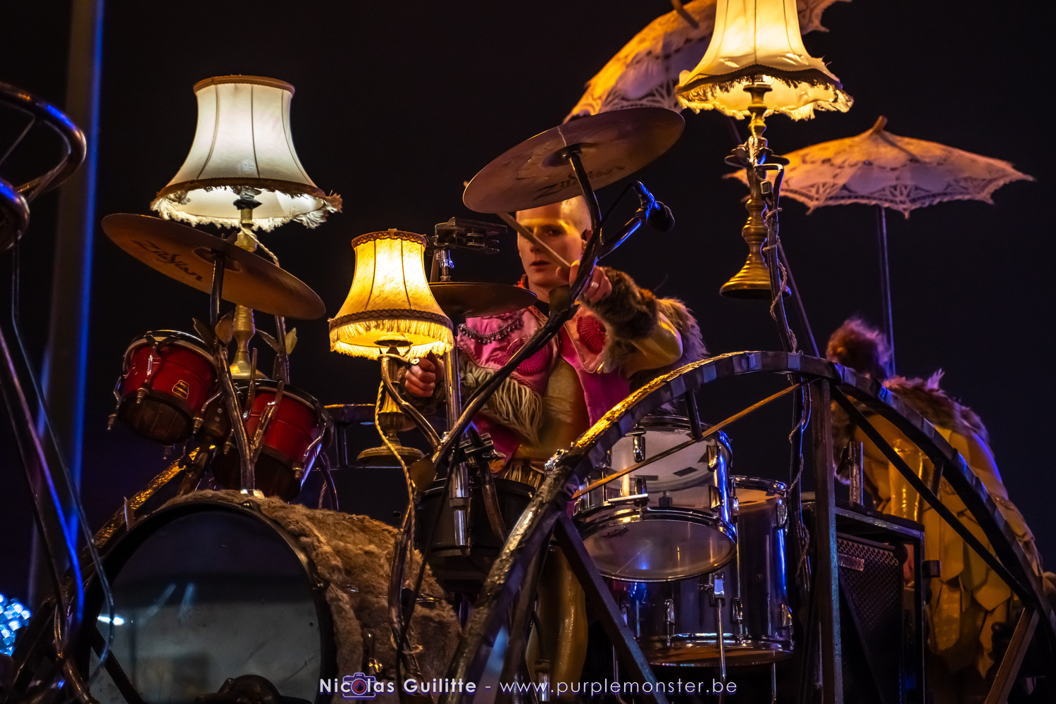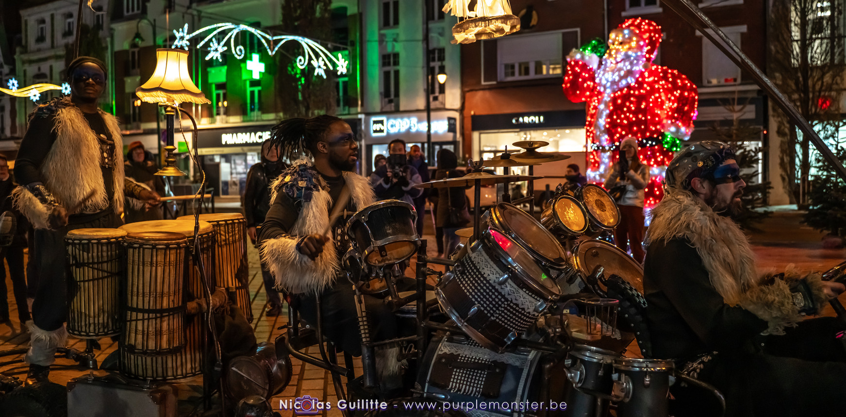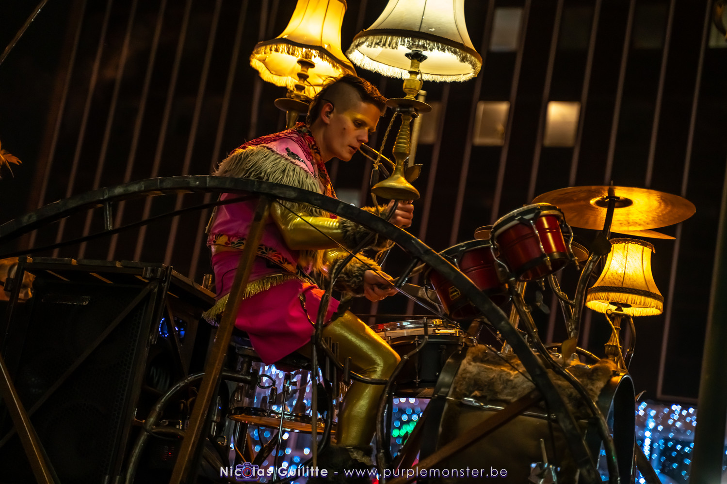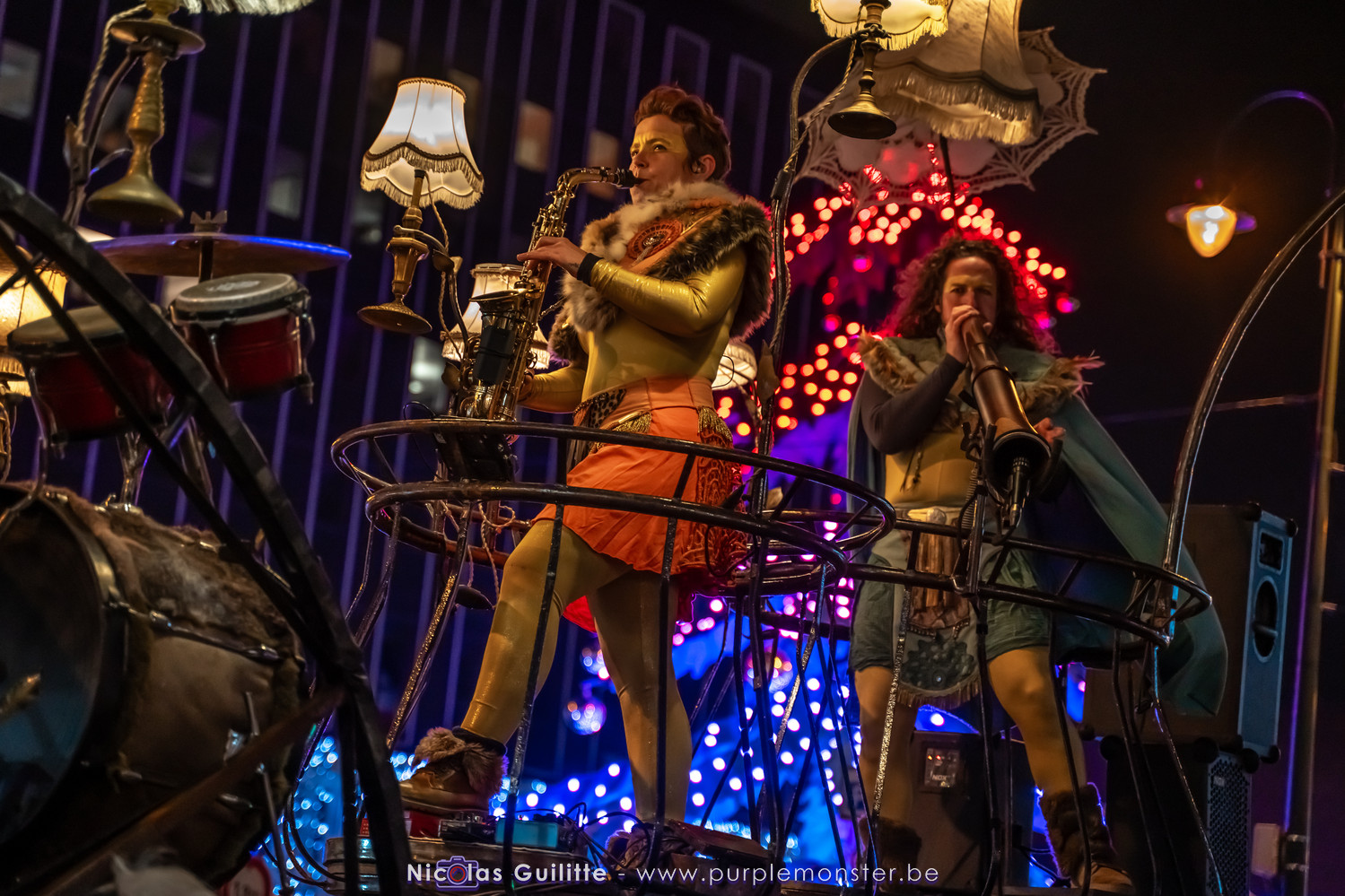 La "Batt Mobile" prend le relais, un tricycle géant servant de support à de multiples instruments de percussions, déambulant sous des rythmes tribaux très énergiques.