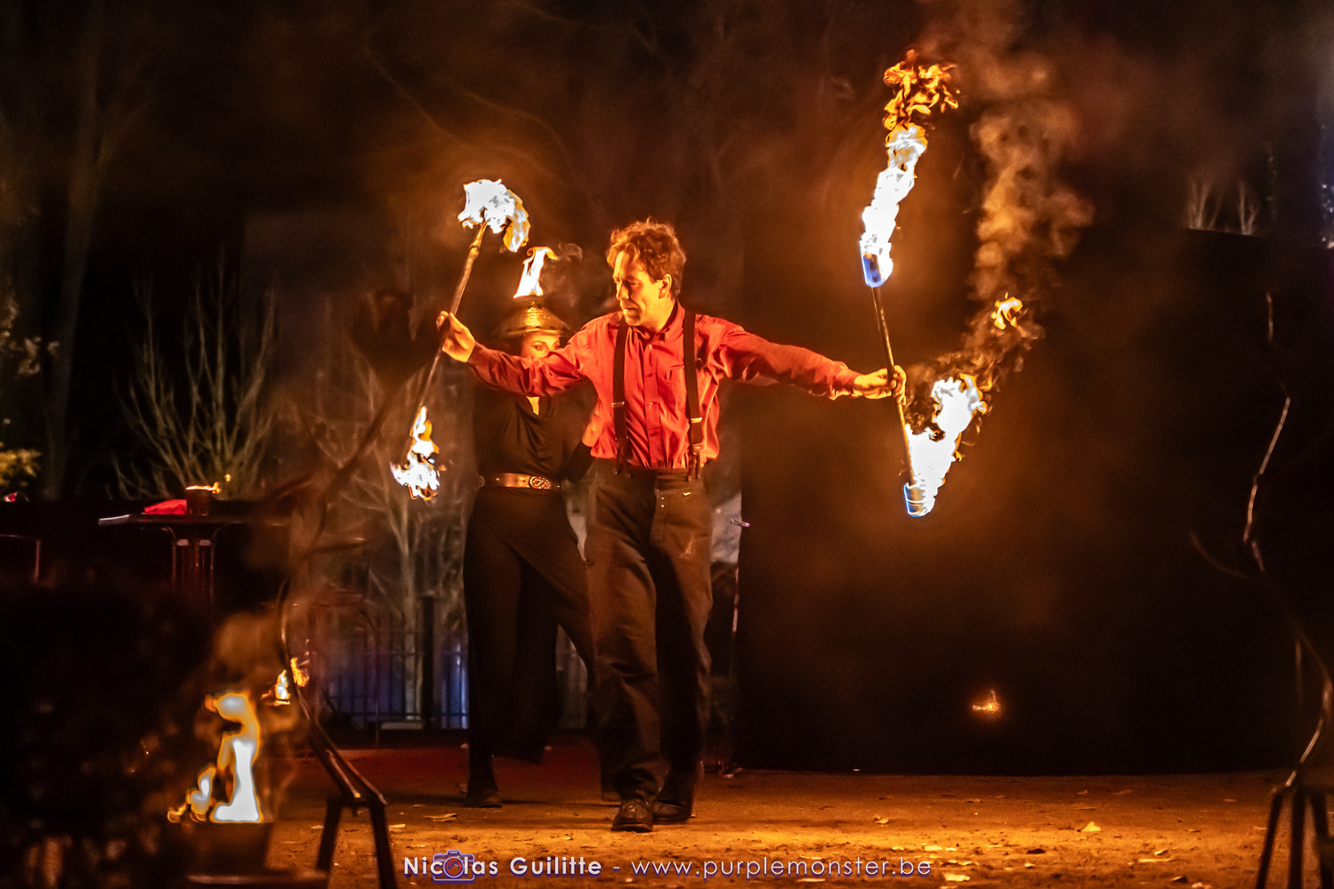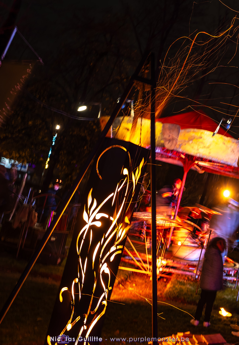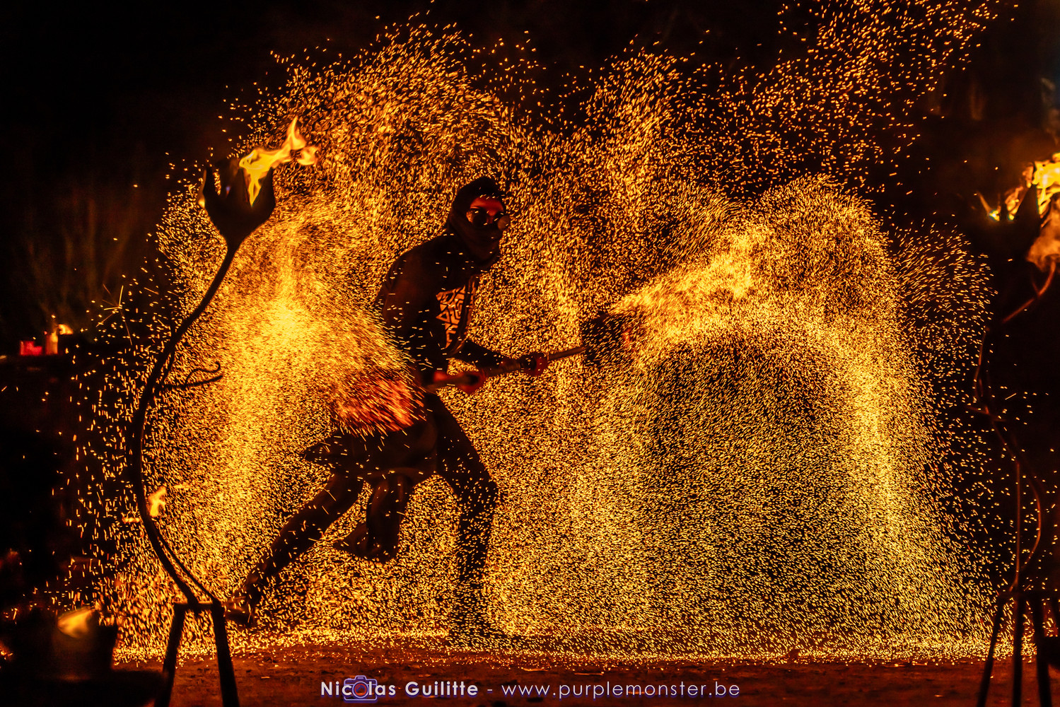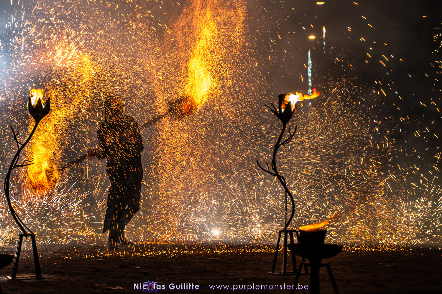 1° spectacle de feu du week-end, avec un duo de pyromanes jouant et jonglant avec le feu, dans une succession de numéros assez classiques dans ce genre de spectacle. Rien que je n'aie déjà vu ailleurs, mais ça réchauffe un peu l'atmosphère, et c'est toujours sympa à photographier !