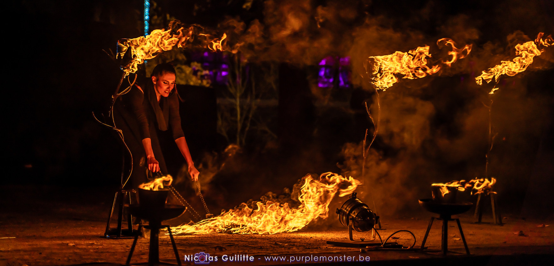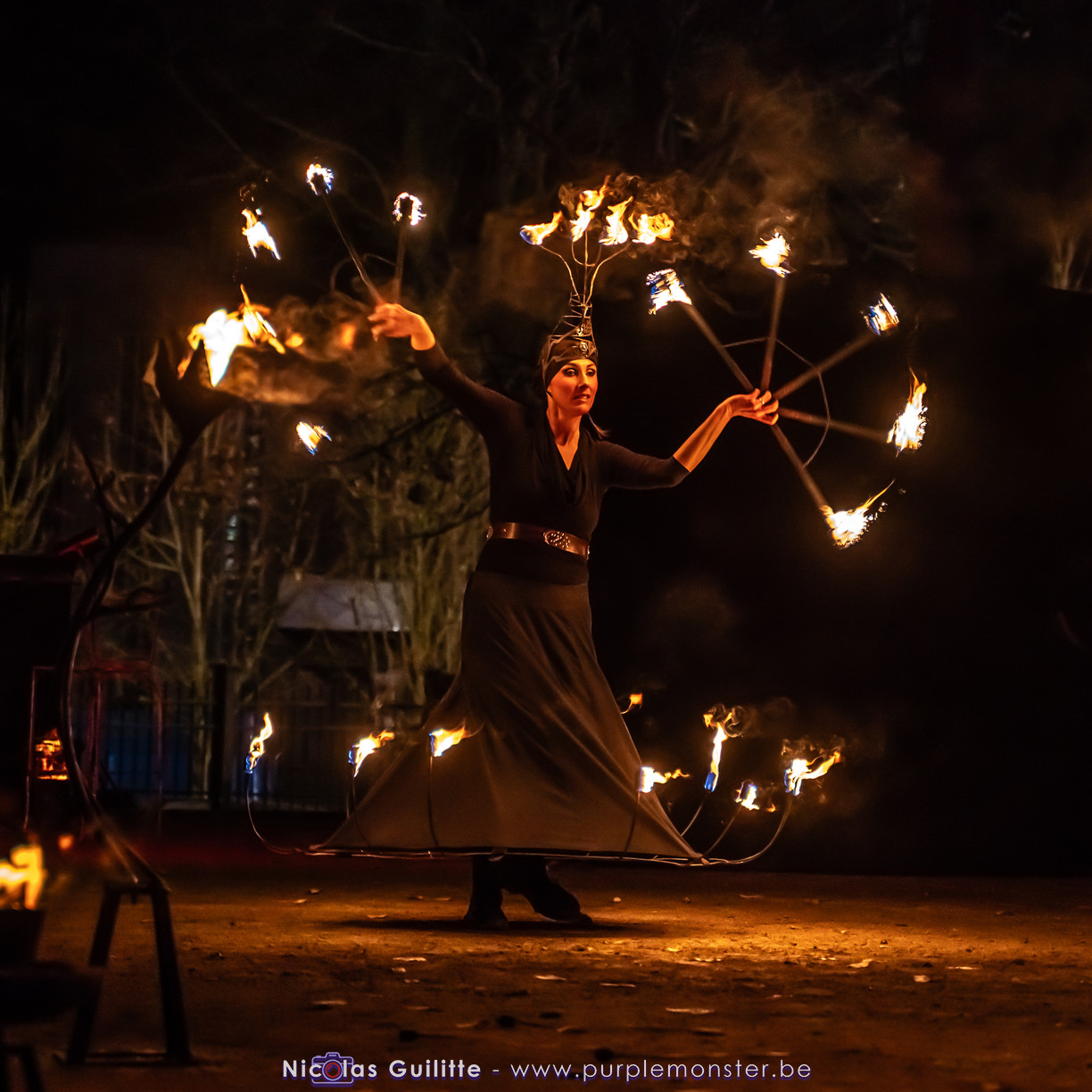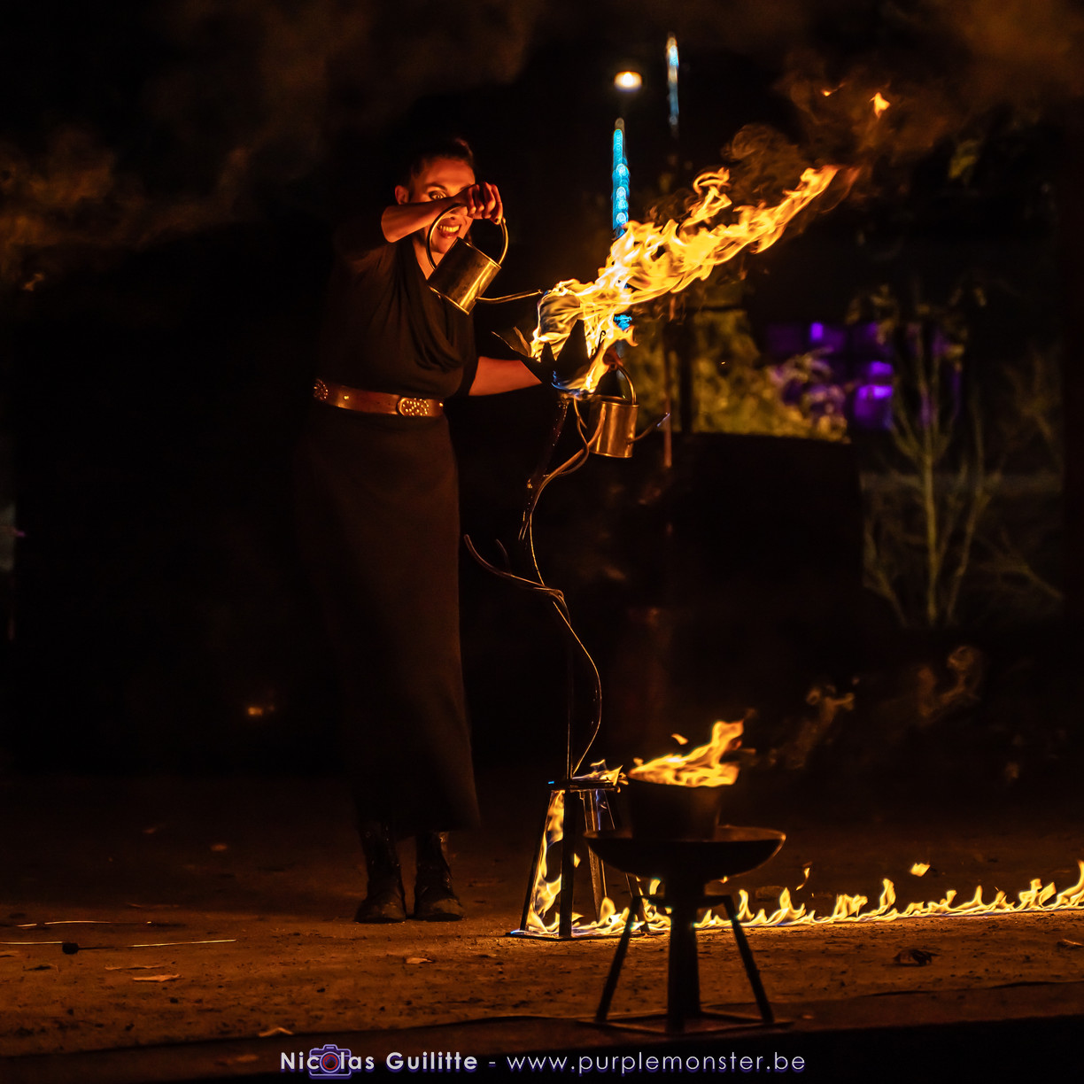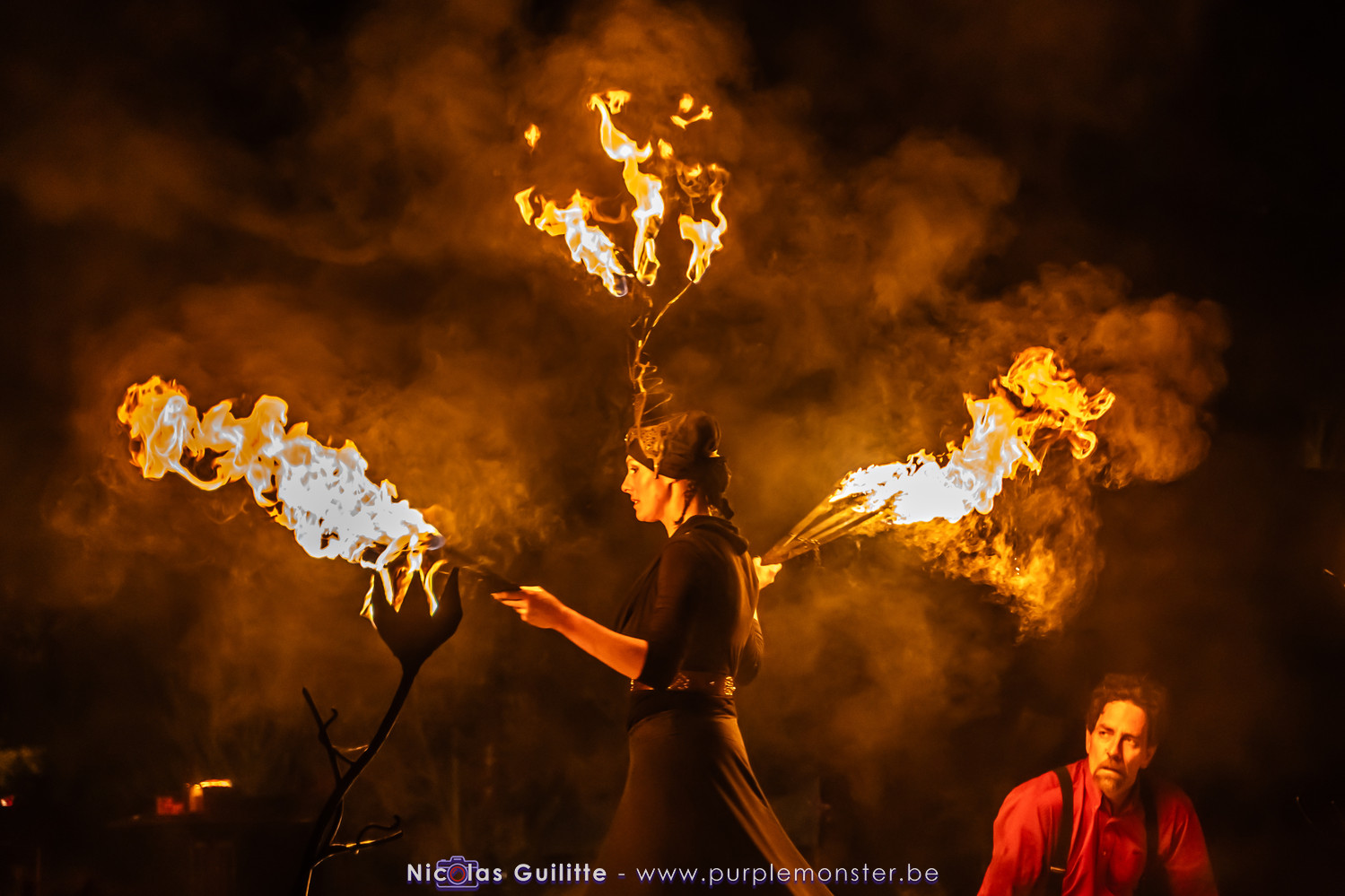 1° spectacle de feu du week-end, avec un duo de pyromanes jouant et jonglant avec le feu, dans une succession de numéros assez classiques dans ce genre de spectacle. Rien que je n'aie déjà vu ailleurs, mais ça réchauffe un peu l'atmosphère, et c'est toujours sympa à photographier !