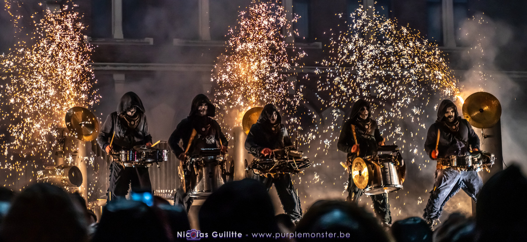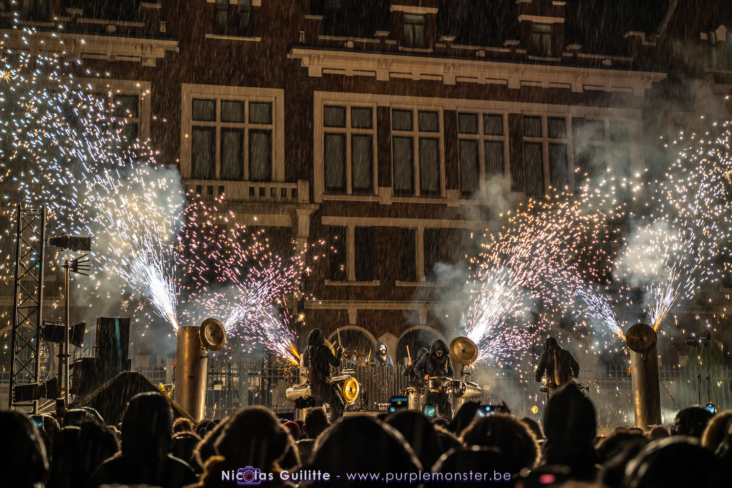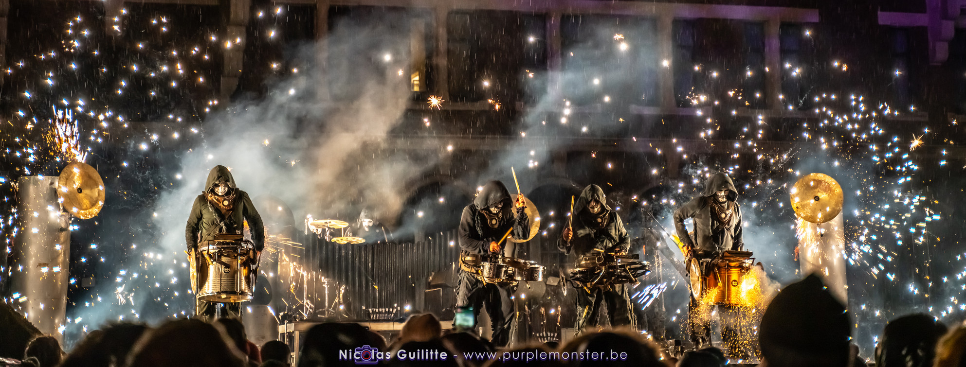 Point d'orgue de cette première soirée du week-end de la Sainte-Barbe, le spectacle "Symfeuny" de la compagnie espagnole Deabru Beltzak. Percus et pyro au programme, un concept très similaire à celui des Commandos Percus vus en 2022 et 2024, mais un cran en-dessous, surtout au niveau pyro, avec des effets un peu plus redondants et moins impressionnants, malgré une synchro parfaite cela dit. Le tout sous une pluie battante, encore pire que durant le feu d'artifice de la veille. Misère...