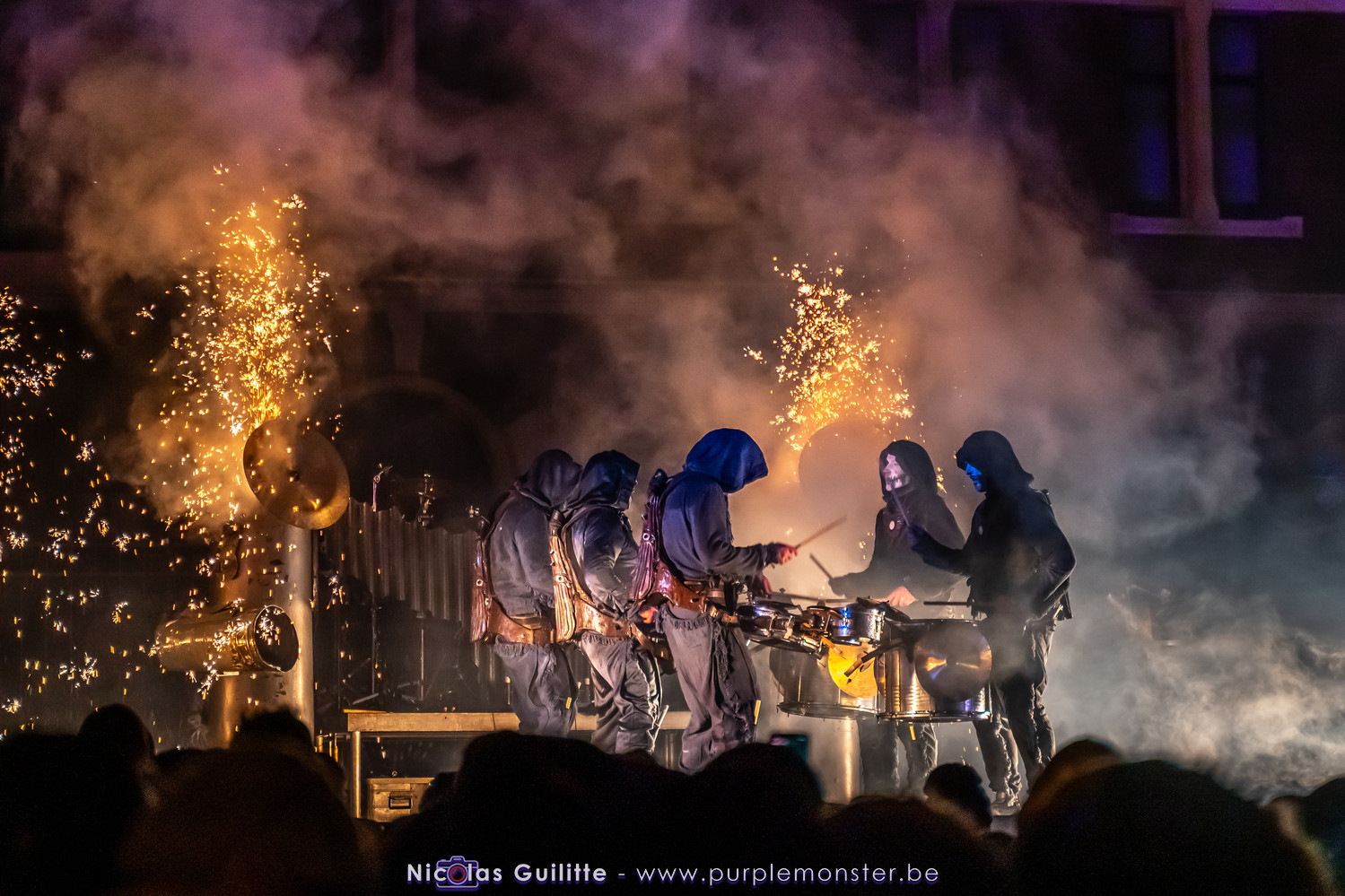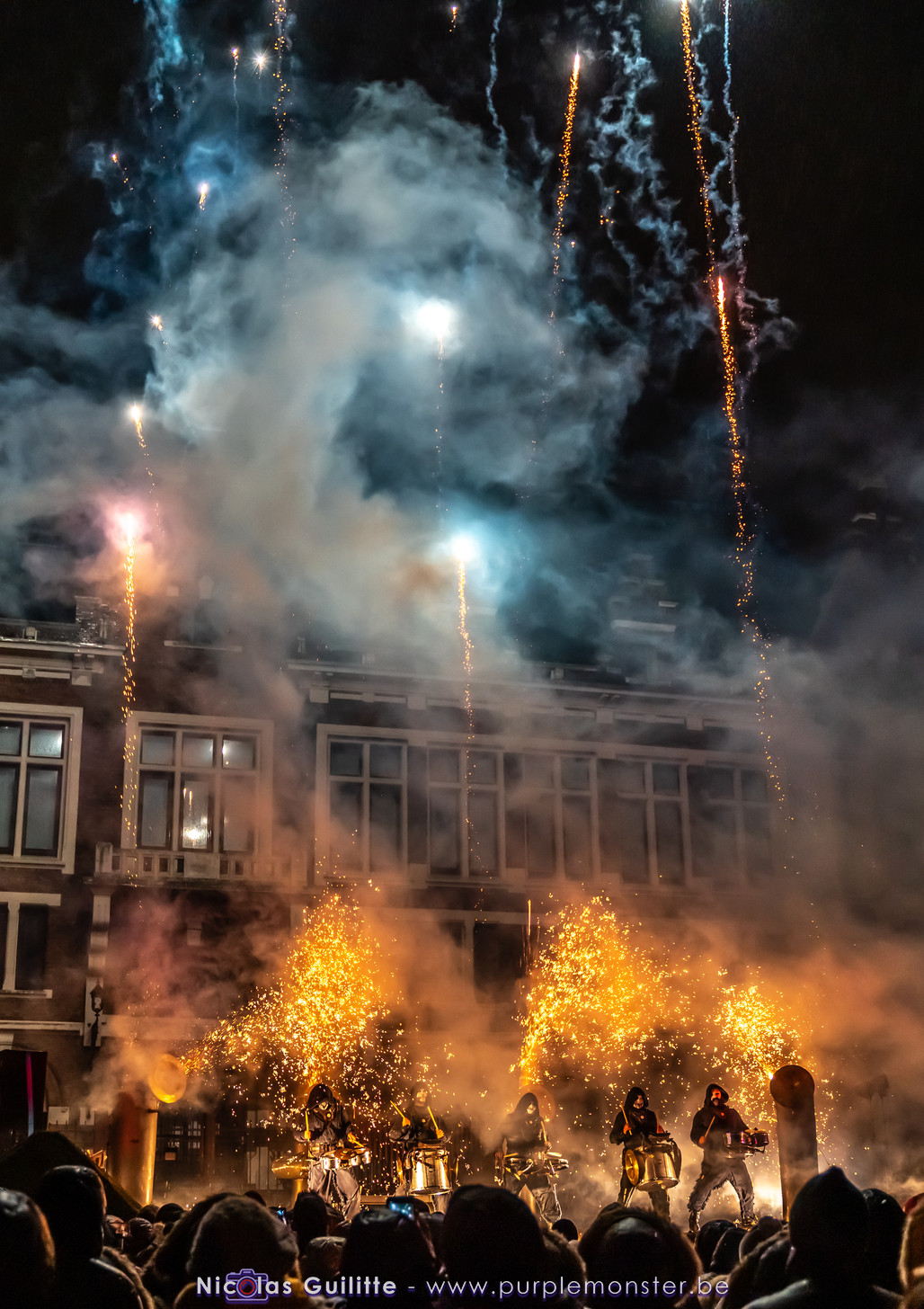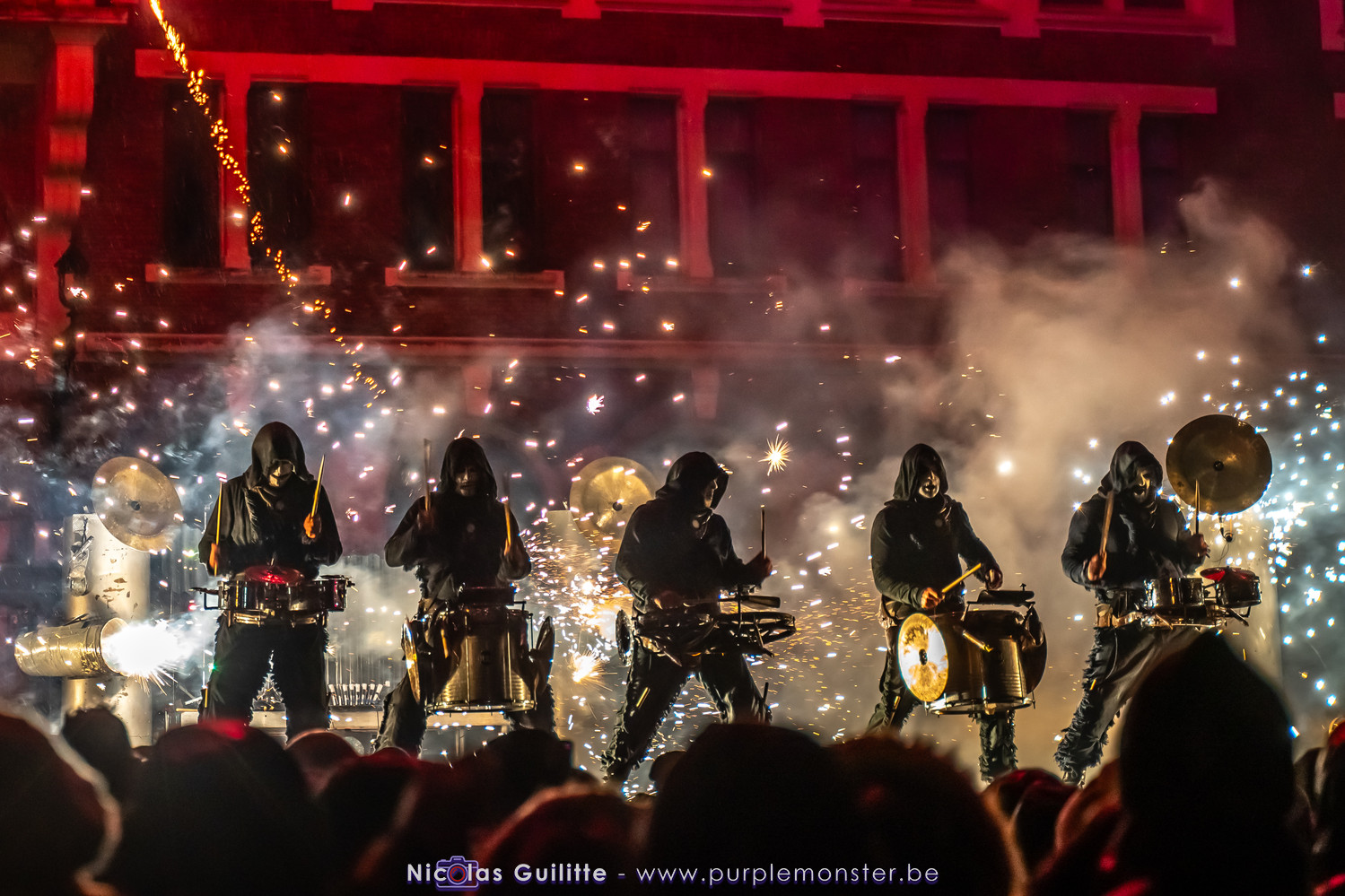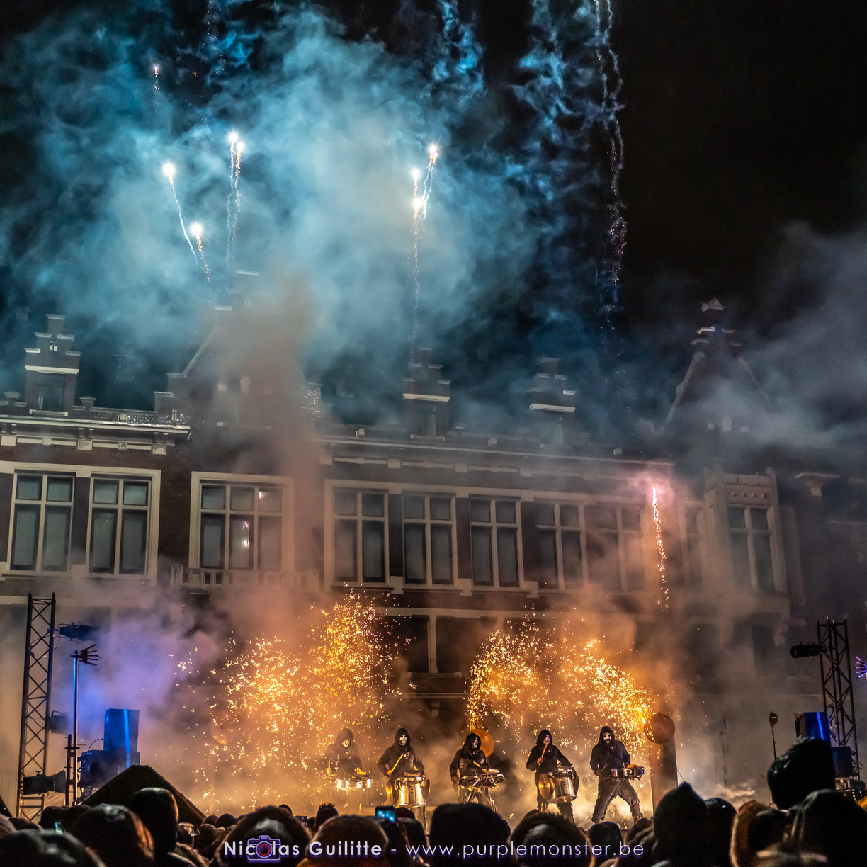 Point d'orgue de cette première soirée du week-end de la Sainte-Barbe, le spectacle "Symfeuny" de la compagnie espagnole Deabru Beltzak. Percus et pyro au programme, un concept très similaire à celui des Commandos Percus vus en 2022 et 2024, mais un cran en-dessous, surtout au niveau pyro, avec des effets un peu plus redondants et moins impressionnants, malgré une synchro parfaite cela dit. Le tout sous une pluie battante, encore pire que durant le feu d'artifice de la veille. Misère...