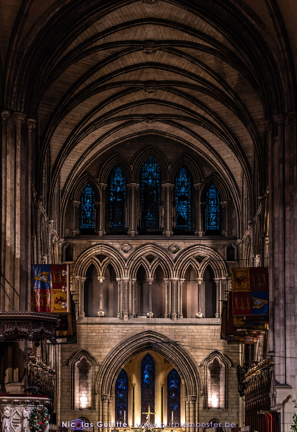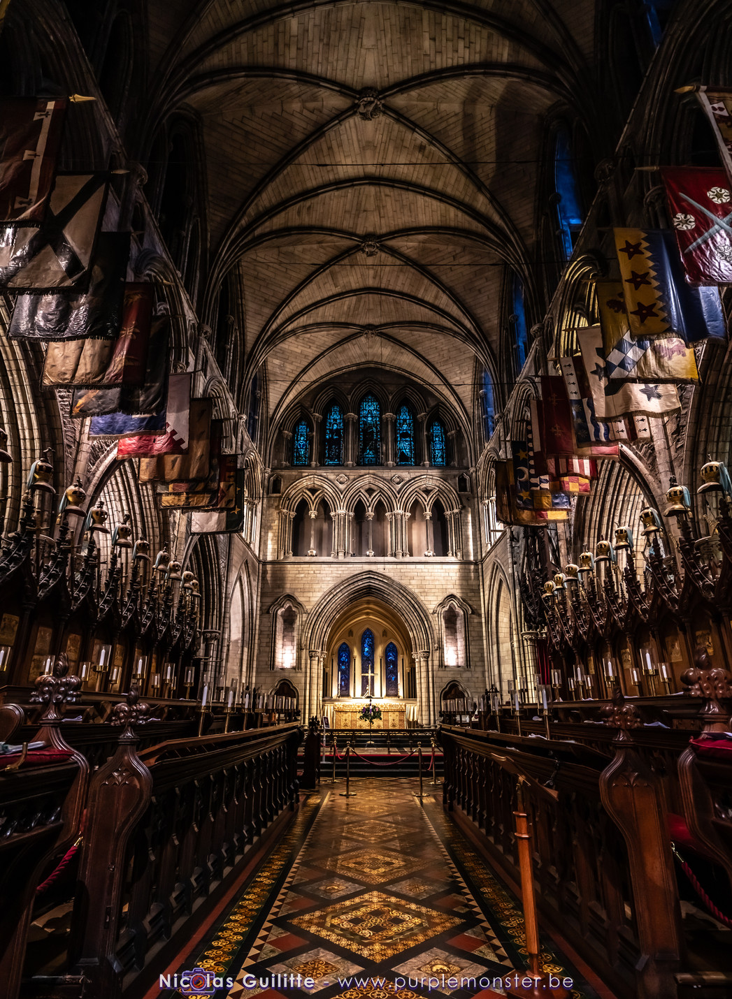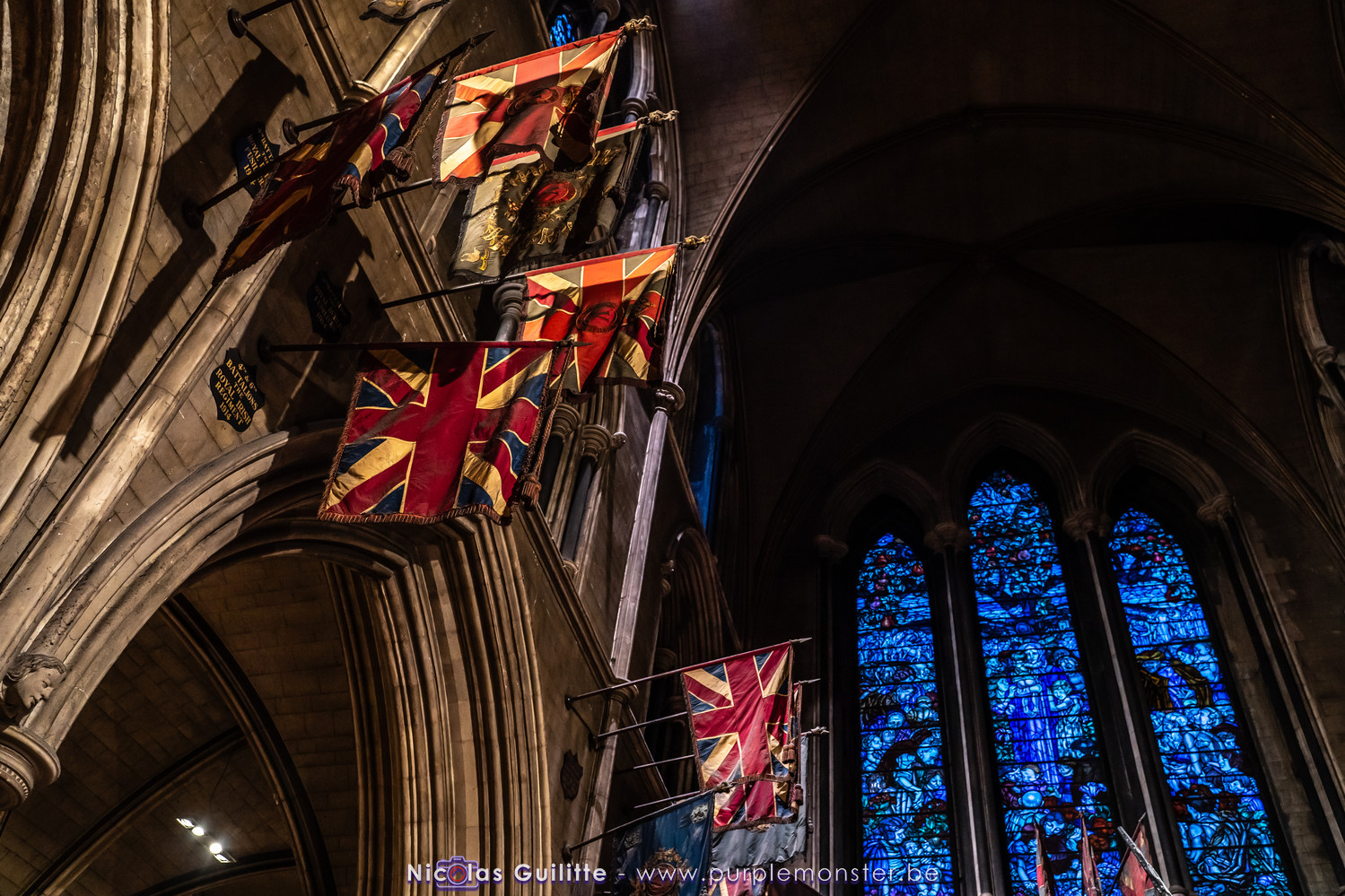 La cathédrale St-Patrick, joyau de l'art gothique avec ses nombreux drapeaux et vitraux bleus.