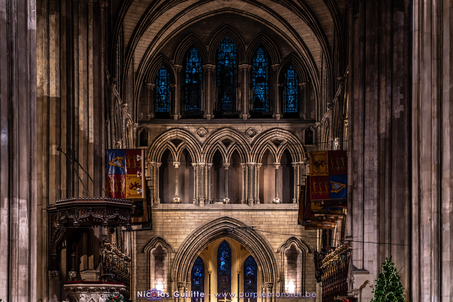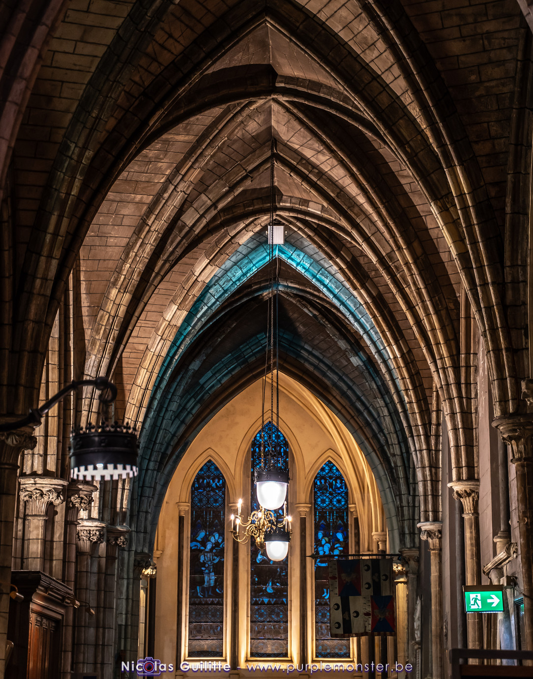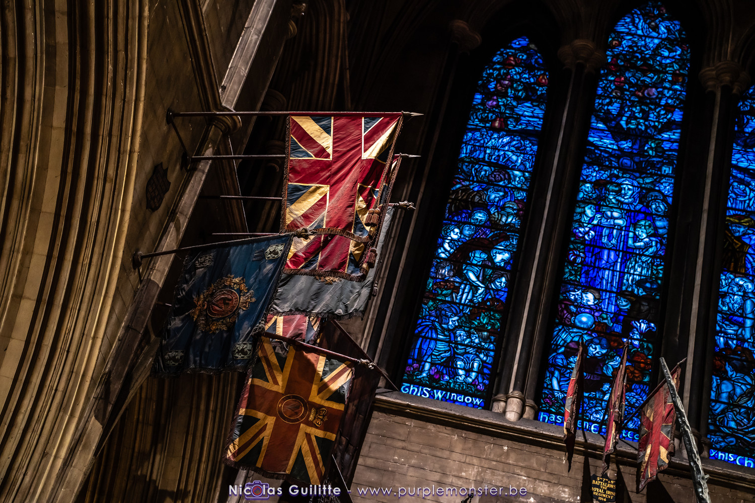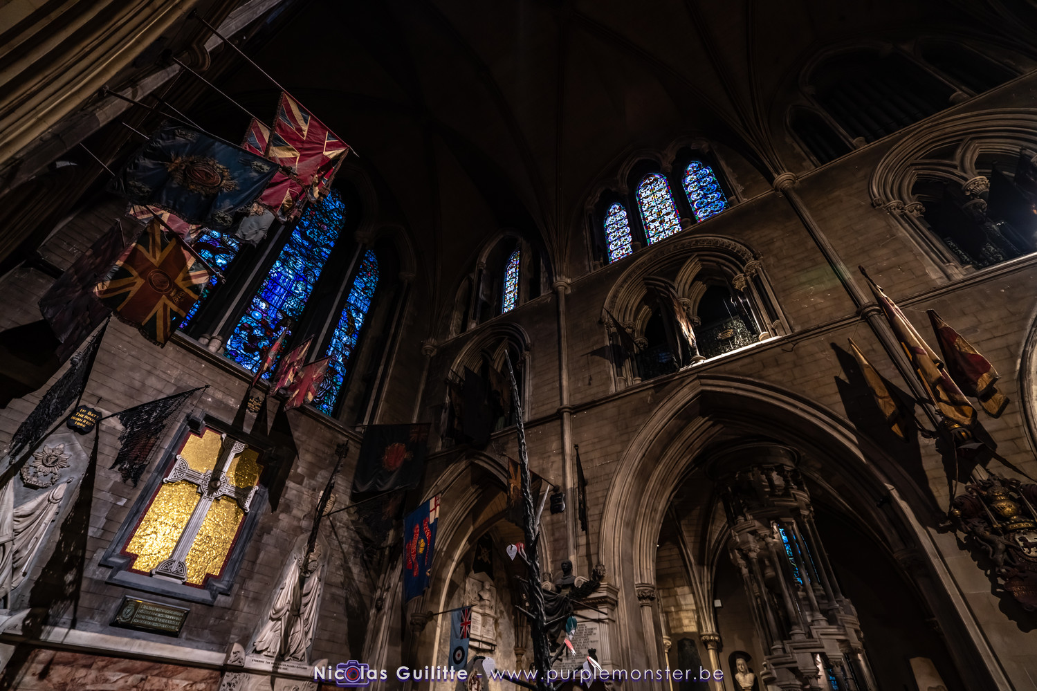 La cathédrale St-Patrick, joyau de l'art gothique avec ses nombreux drapeaux et vitraux bleus.