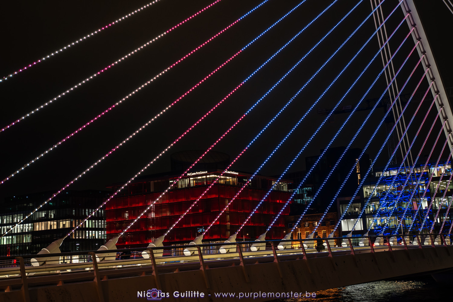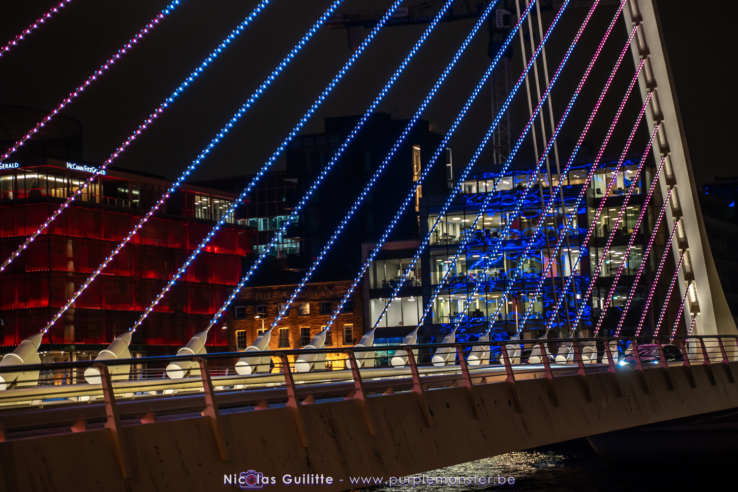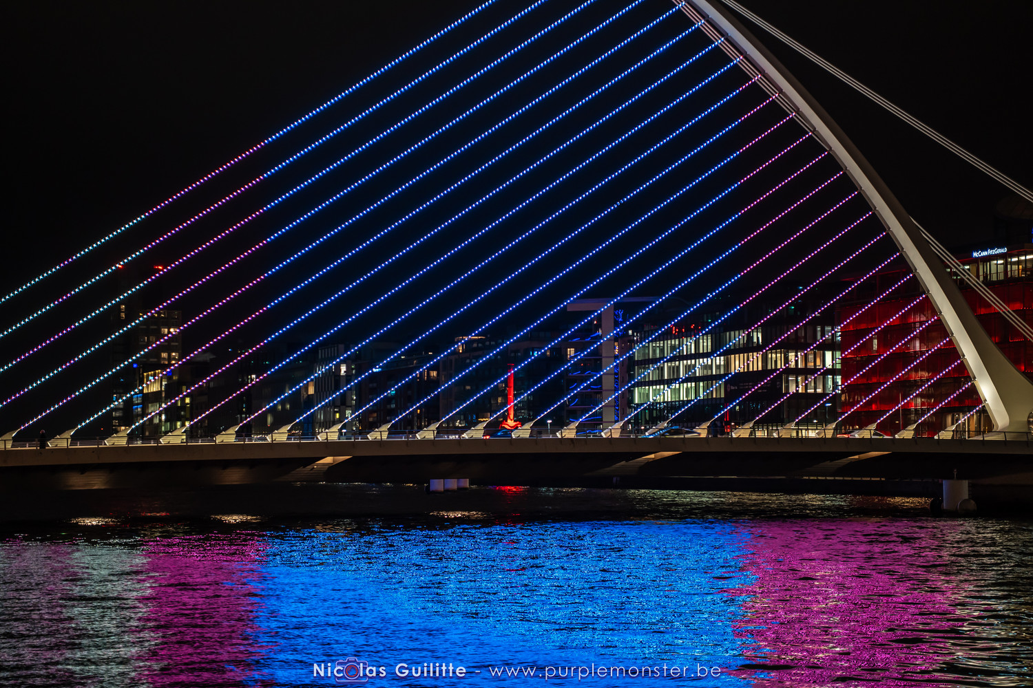 Petit show de video-mapping sur un bâtiment en face du City Hall, faisant partie des animations d'un festival de lumières. Un peu plus loin, le Millenium Bridge est lui aussi relooké au moyen d'arcades lumineuses. Une bonne façon de découvrir la ville avec un petit truc en plus !