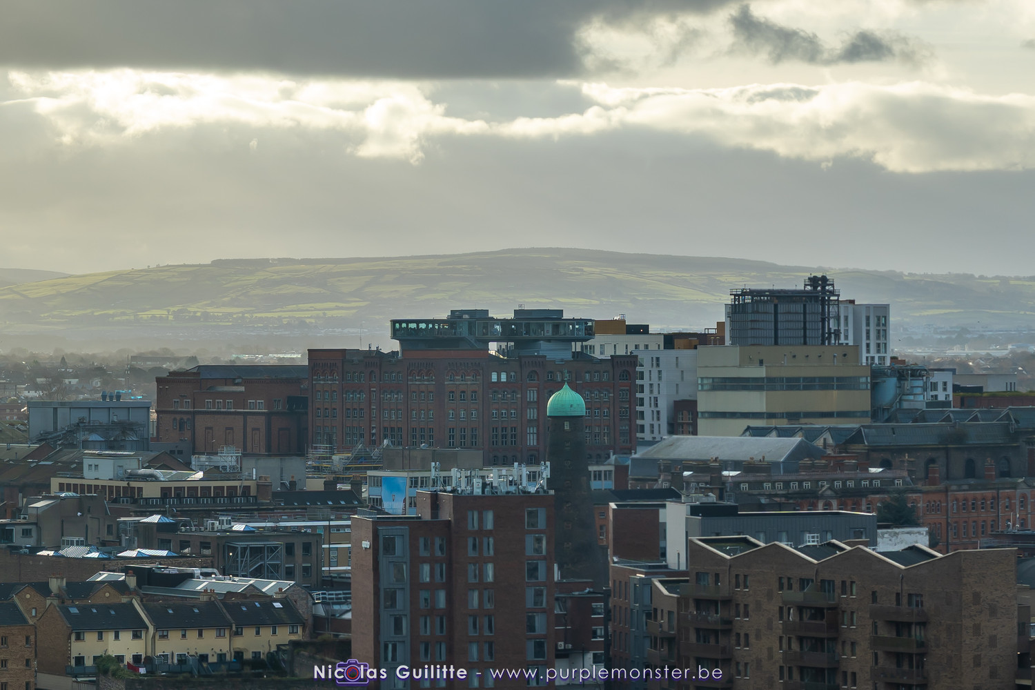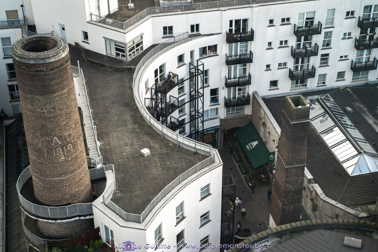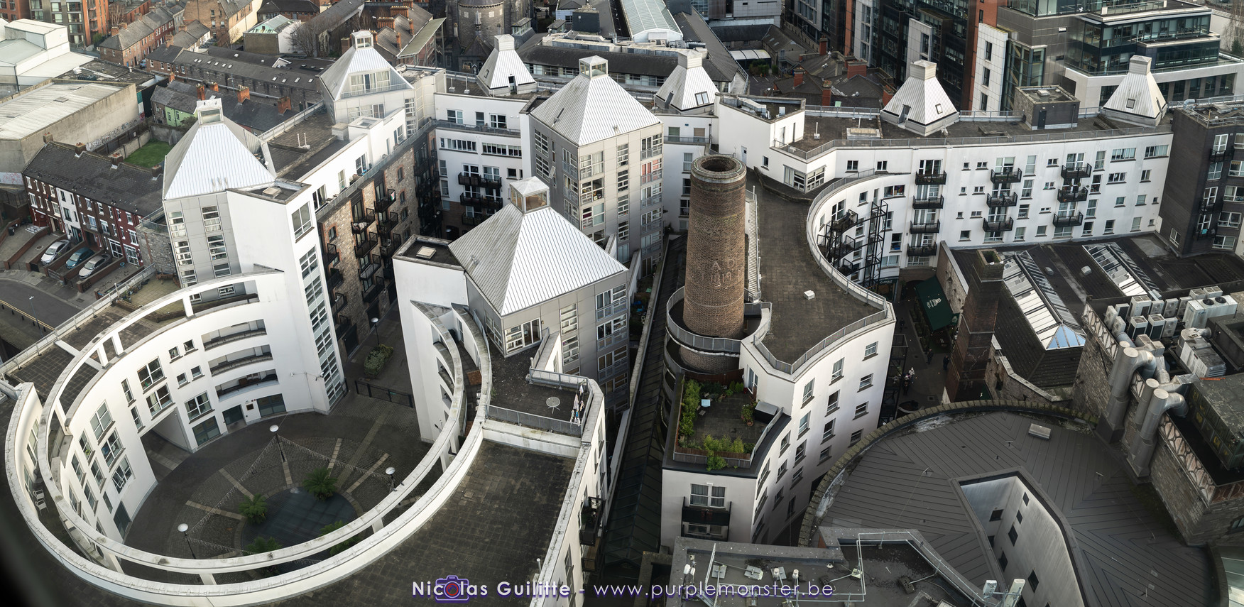 A l'arrière de la distillerie de whisky Jameson, une ancienne cheminée de 60m de haut reconvertie en tour panoramique. Découverte par hasard, car étrangement, peu de sites touristiques la mentionnent, peut-être parce que l'ascenseur est hors-service (apparemment depuis des années), obligeant les visiteurs à emprunter un escalier étroit en colimaçon de plus de 250 marches !