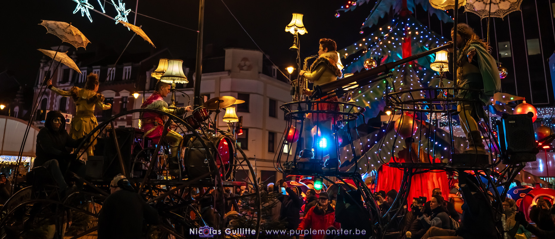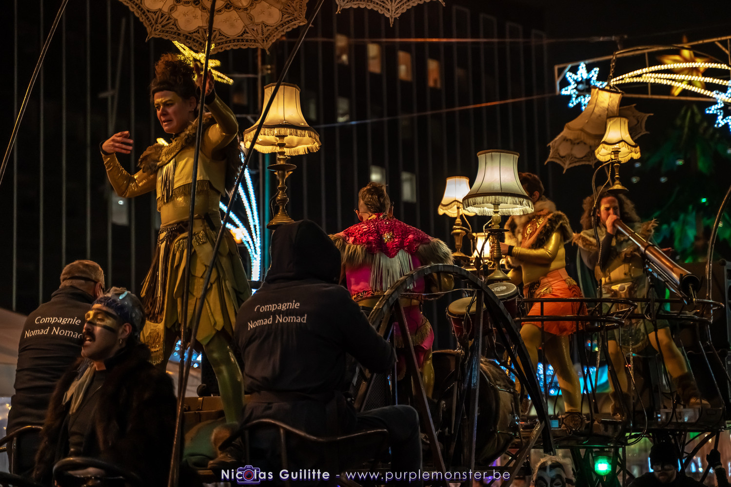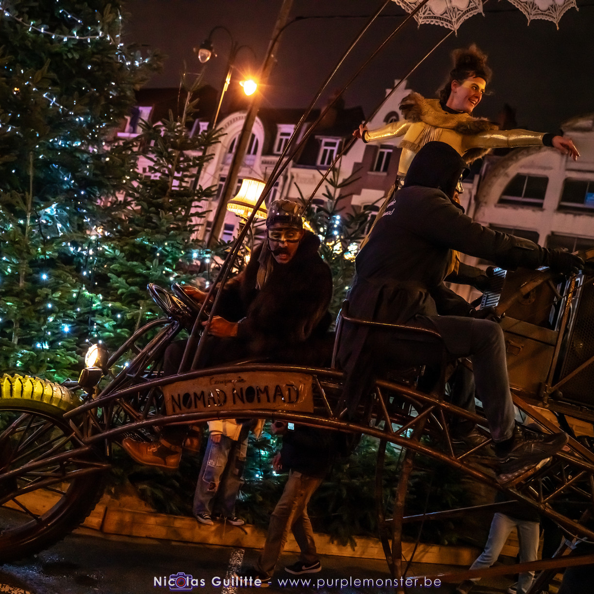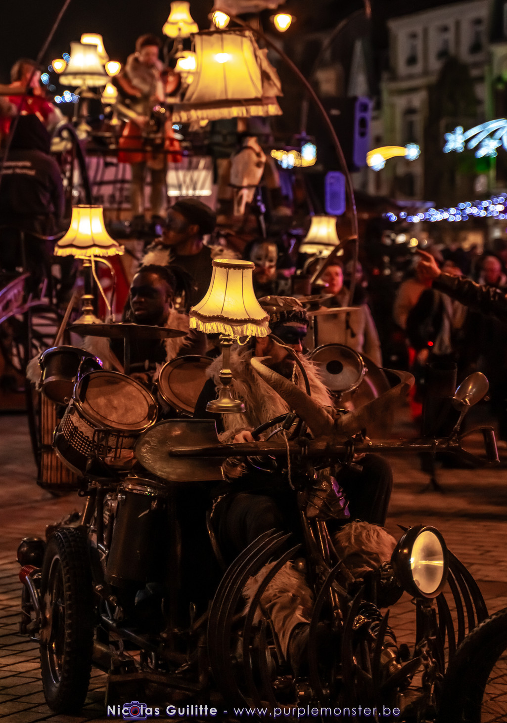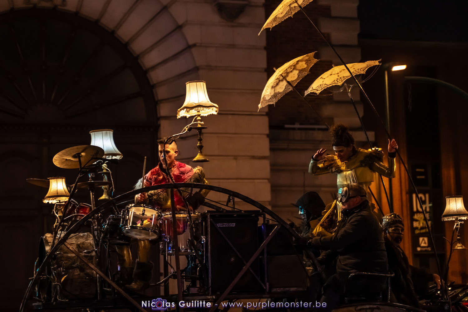 Lancement des festivités du week-end, dans le cadre du festival de la Sainte-Barbe, avec pour commencer une déambulation de la Cie Nomad Nomad dans le centre-ville de Lens, à bord de l'Ethno-Machine, un engin mobile en métal qui pourrait être sorti d'un univers de Mad Max, avec une petite touche baroque en plus, le tout dans une ambiance musicale assez envoûtante et entraînante à la fois, très sympa !