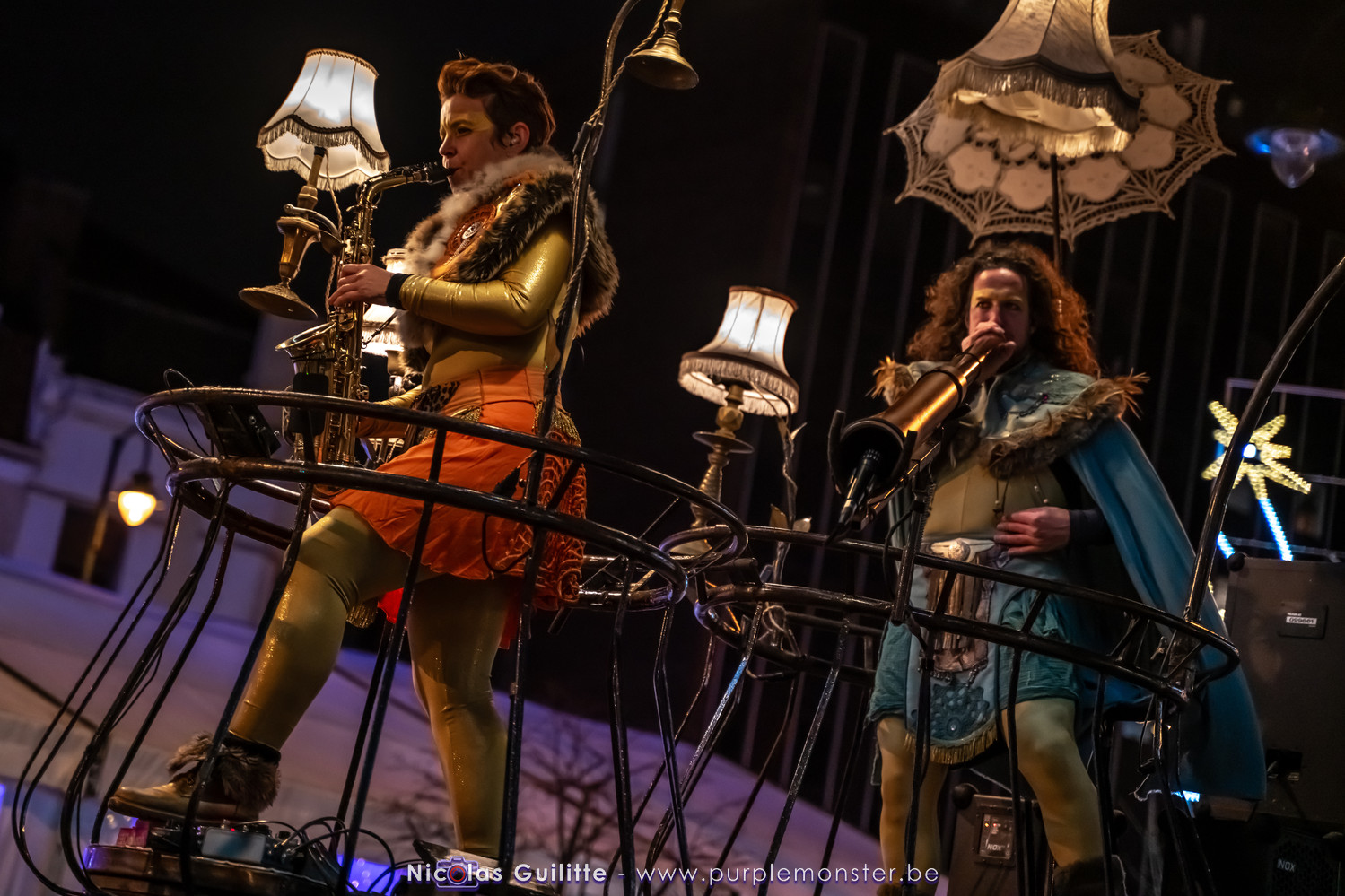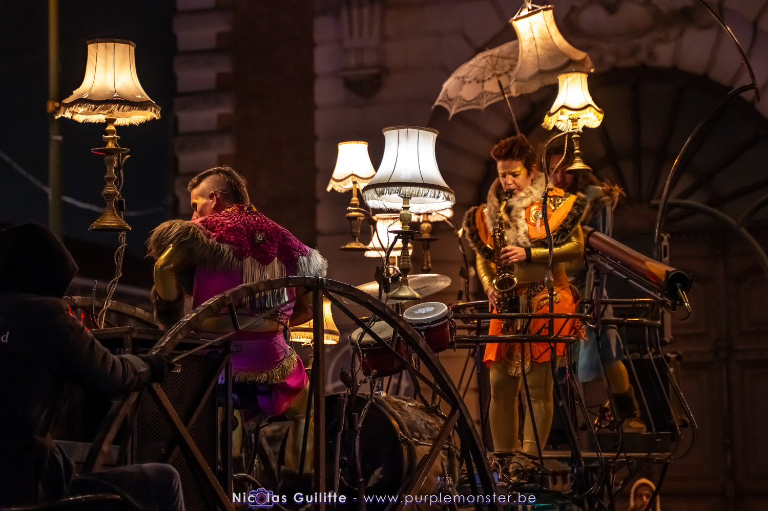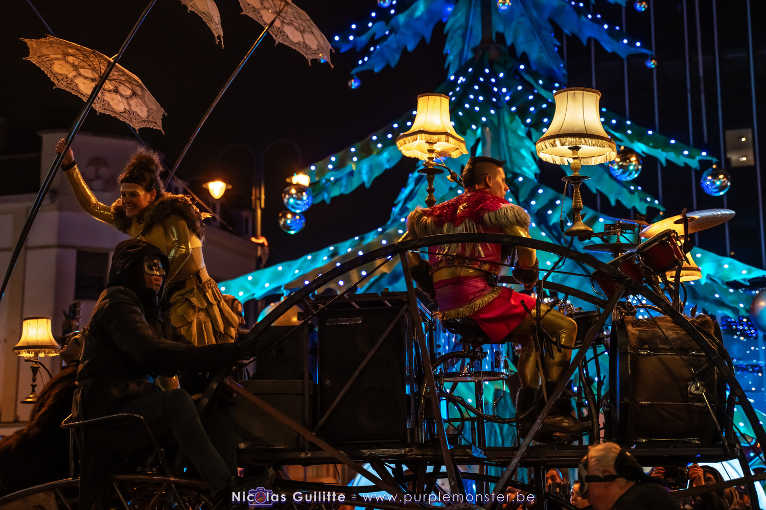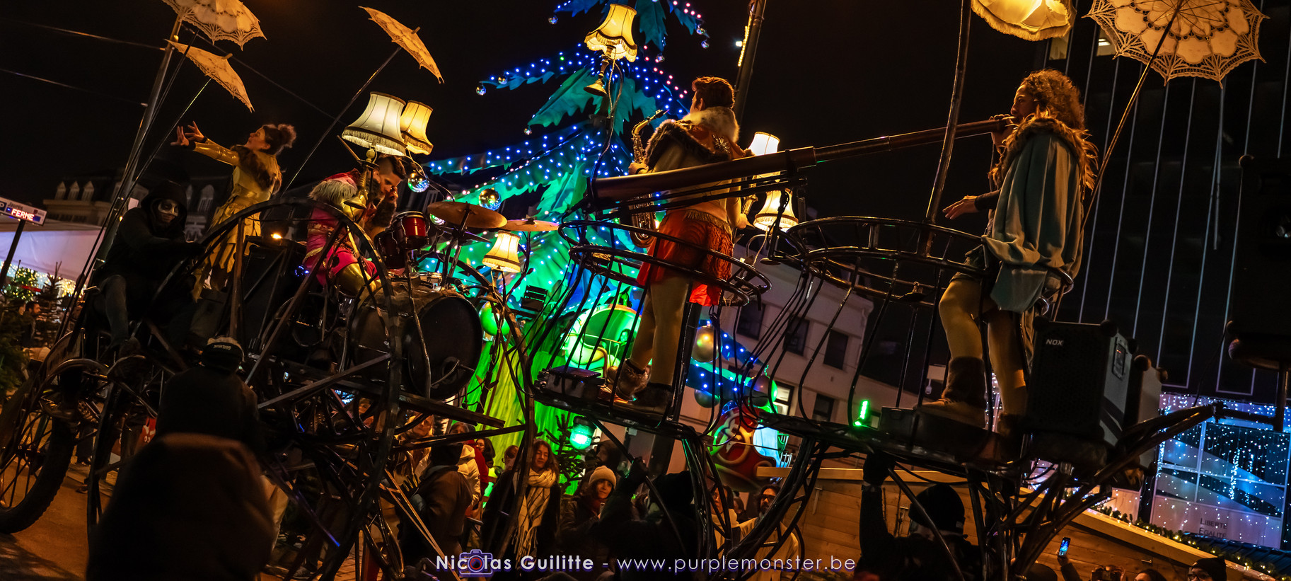 Lancement des festivités du week-end, dans le cadre du festival de la Sainte-Barbe, avec pour commencer une déambulation de la Cie Nomad Nomad dans le centre-ville de Lens, à bord de l'Ethno-Machine, un engin mobile en métal qui pourrait être sorti d'un univers de Mad Max, avec une petite touche baroque en plus, le tout dans une ambiance musicale assez envoûtante et entraînante à la fois, très sympa !