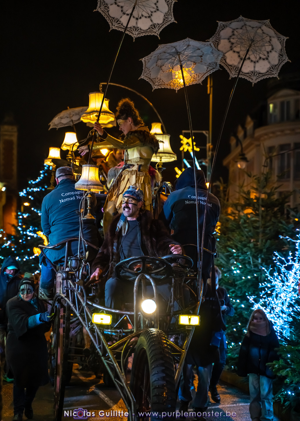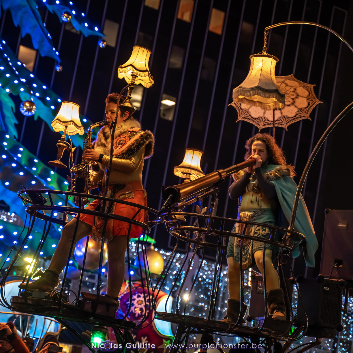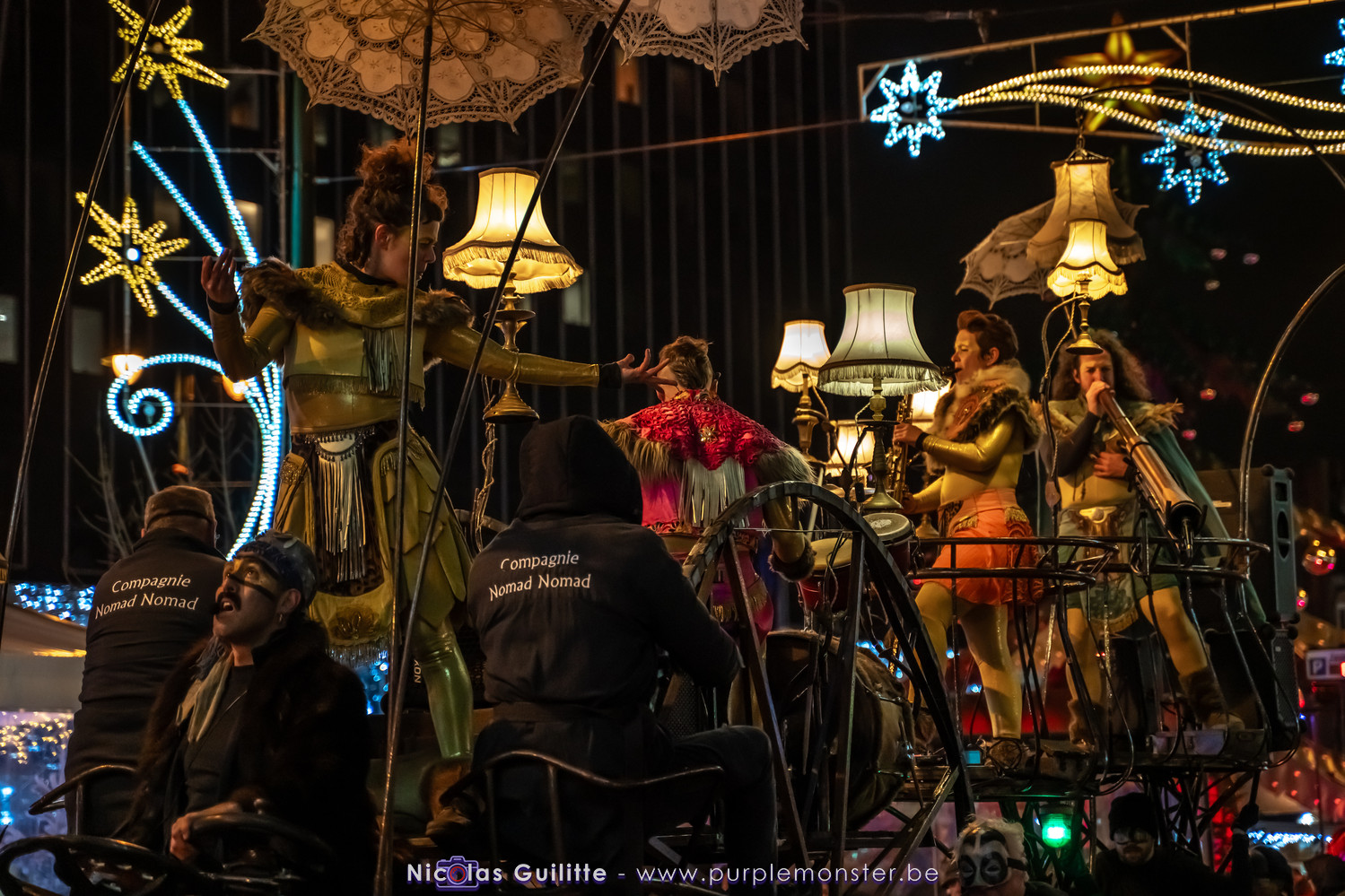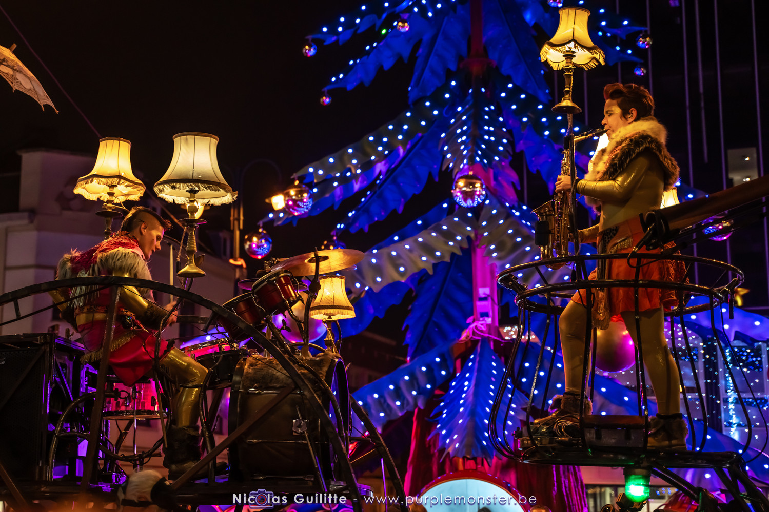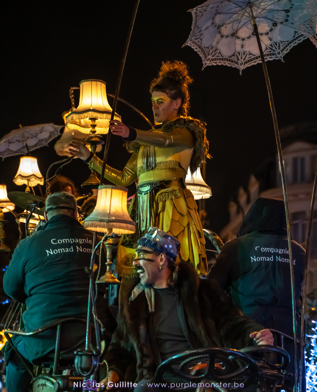 Lancement des festivités du week-end, dans le cadre du festival de la Sainte-Barbe, avec pour commencer une déambulation de la Cie Nomad Nomad dans le centre-ville de Lens, à bord de l'Ethno-Machine, un engin mobile en métal qui pourrait être sorti d'un univers de Mad Max, avec une petite touche baroque en plus, le tout dans une ambiance musicale assez envoûtante et entraînante à la fois, très sympa !