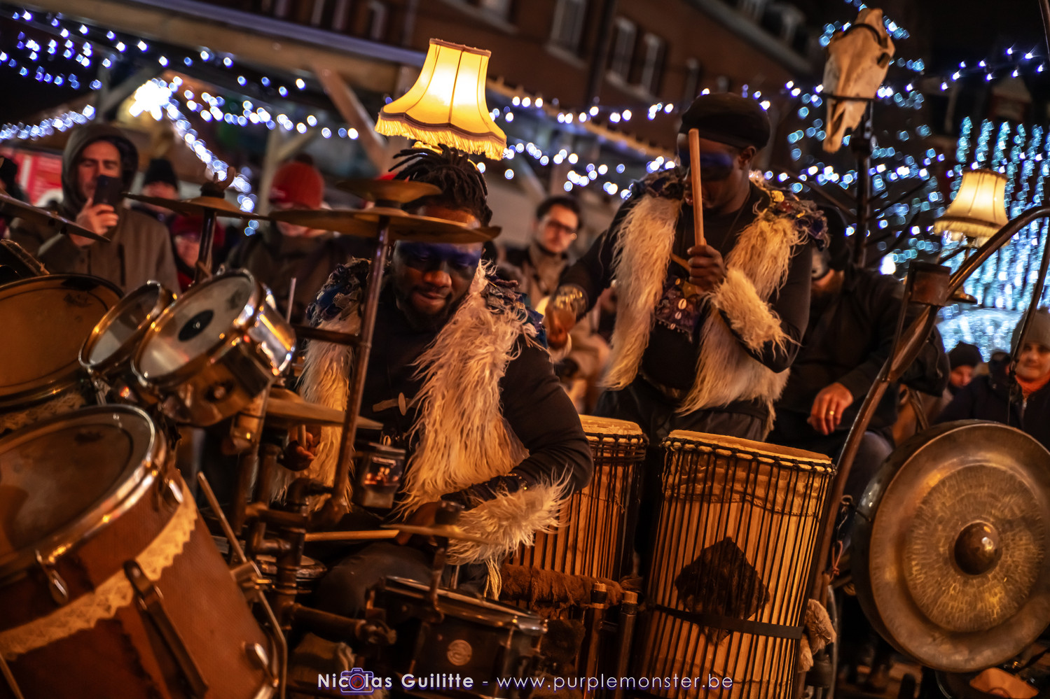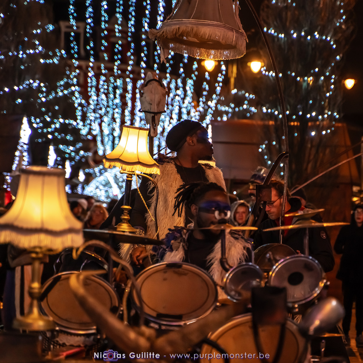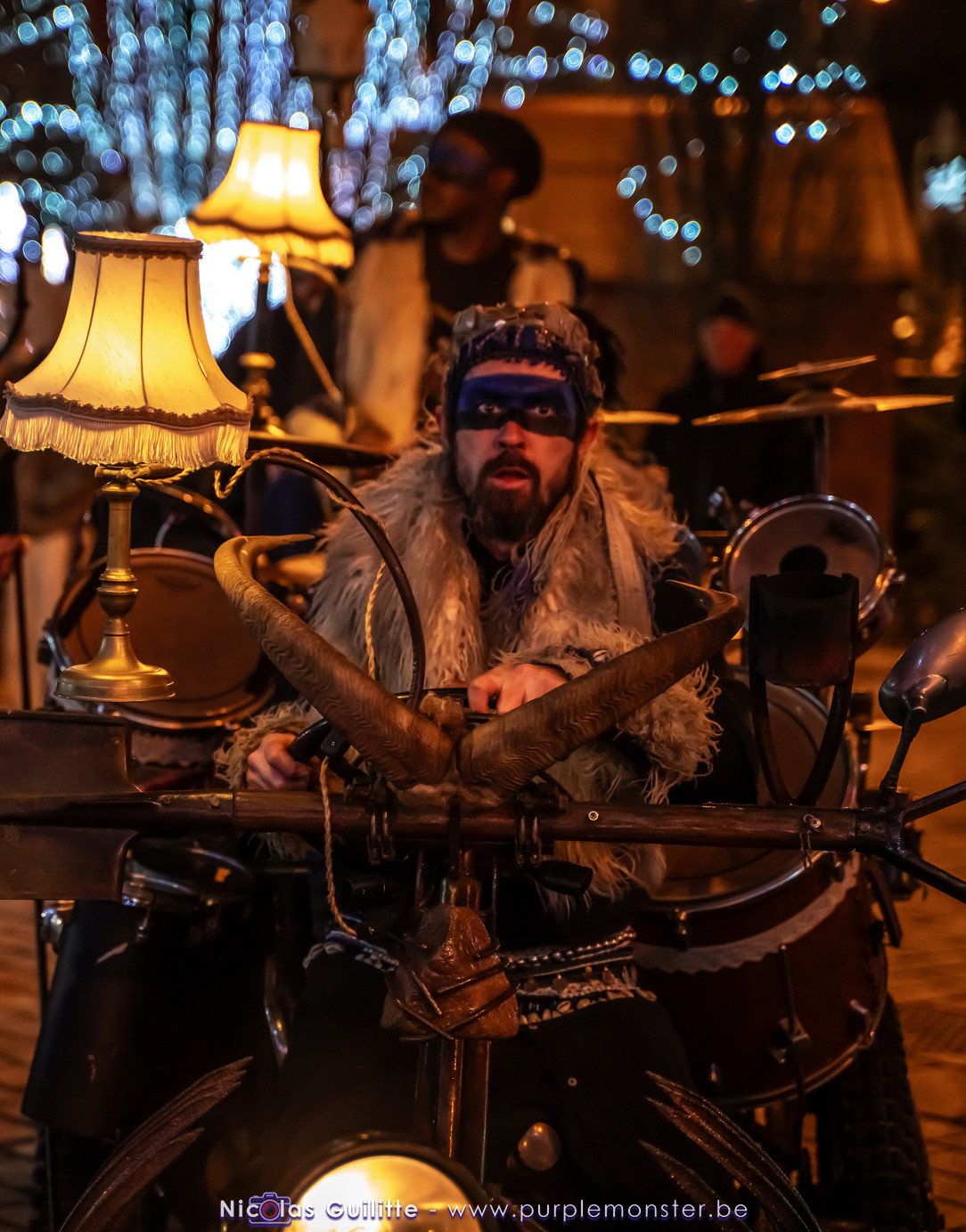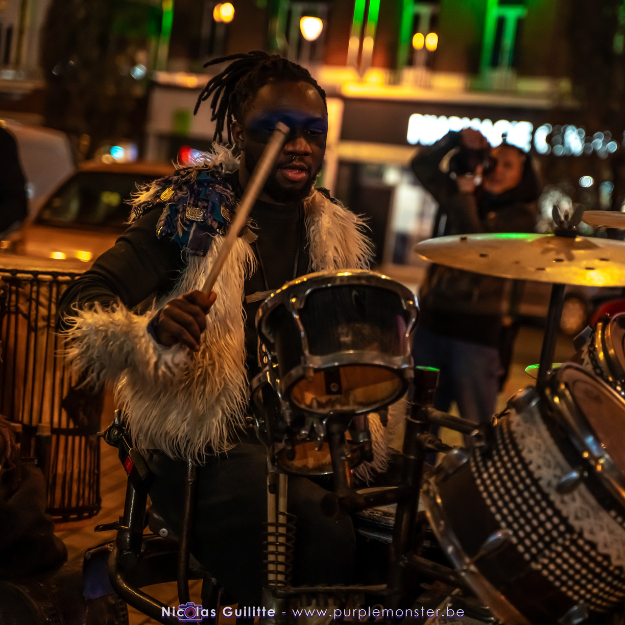 La "Batt Mobile" prend le relais, un tricycle géant servant de support à de multiples instruments de percussions, déambulant sous des rythmes tribaux très énergiques.
