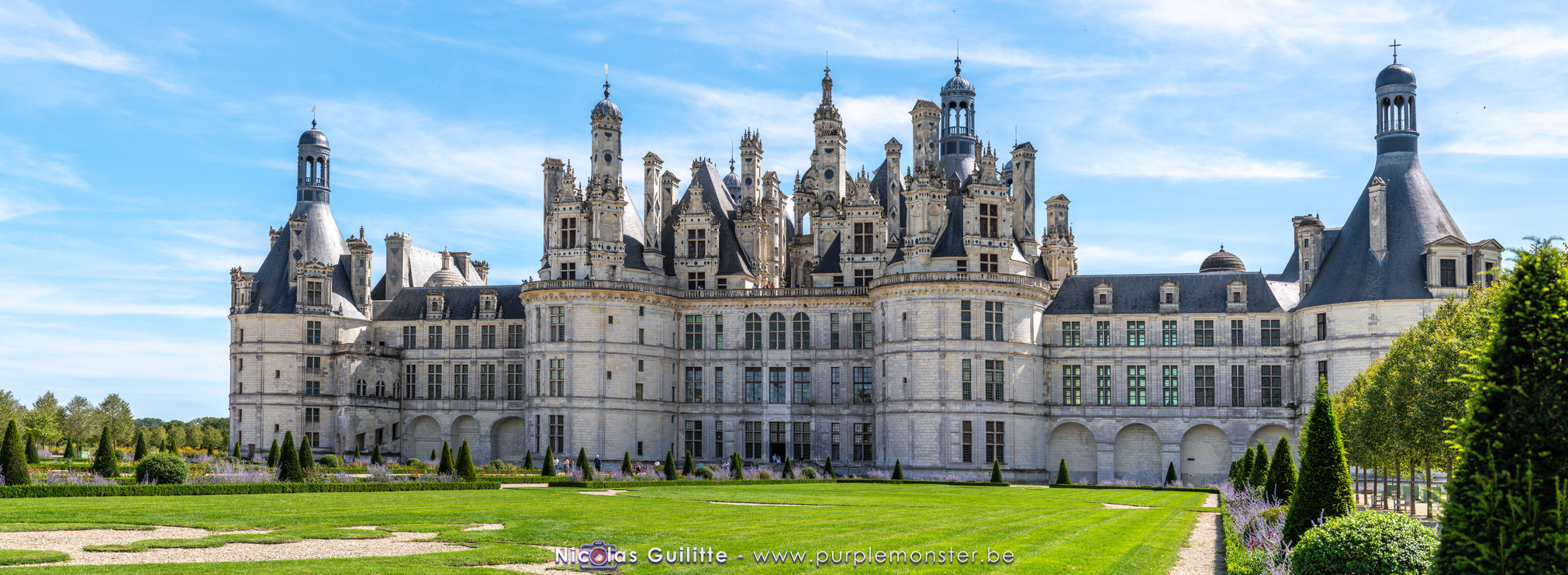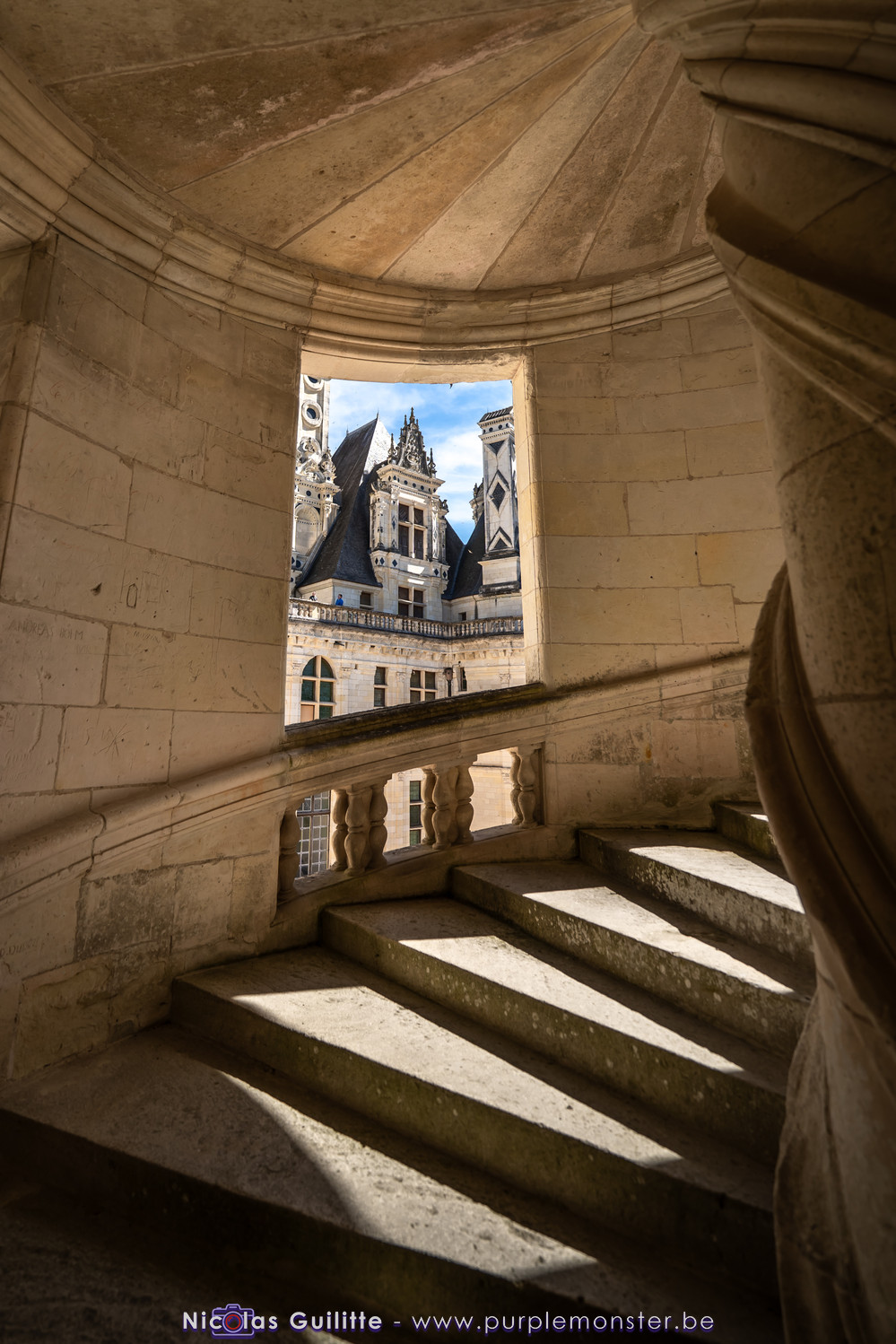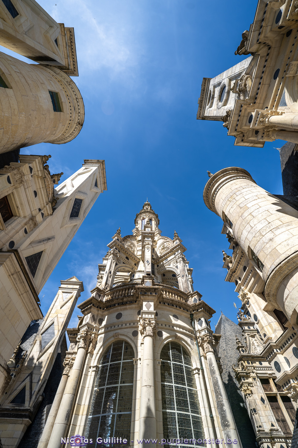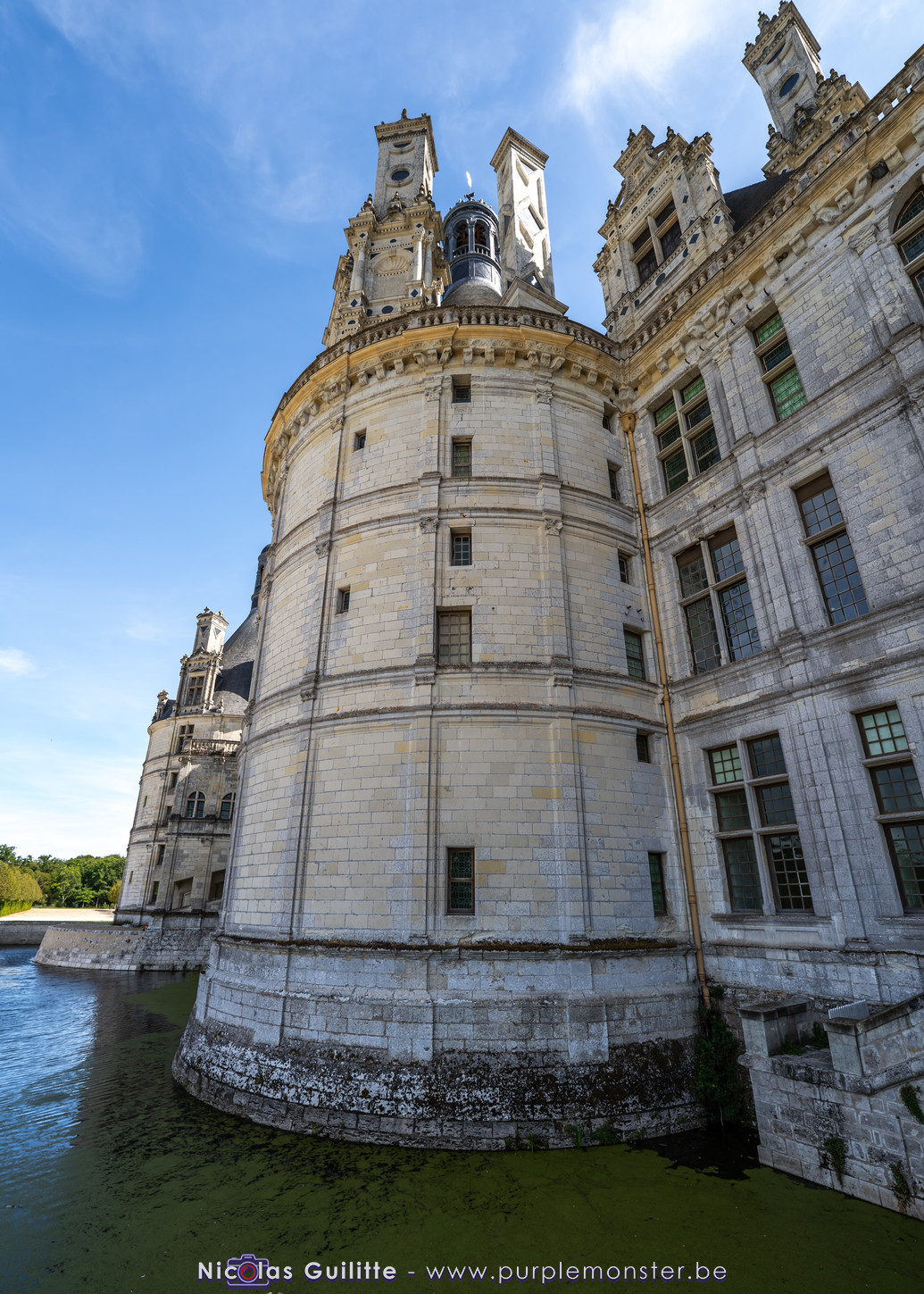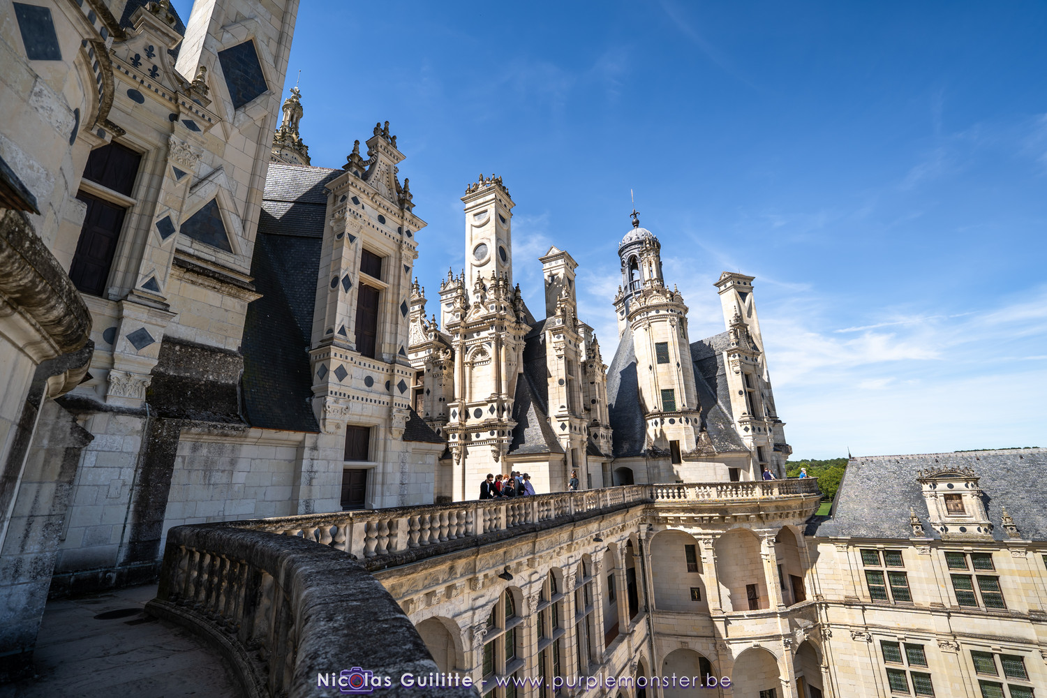 De passage dans la région pour la dernière édition des Nuits de Sologne, et au vu de la météo encore estivale, le moment était bien choisi pour faire un peu de tourisme local au château de Chambord tout proche, que j'avais déjà pu photographier en 2019 à travers un feu d'artifice pour son 500° anniversaire, mais que je n'avais jamais visité. Le moins que l'on puisse dire c'est qu'il est assez majestueux vu de l'extérieur, et un peu atypique de par ses nombreuses fenêtres et tourelles sur les toits. A première vue, tout paraît symétrique, mais quand on y prête attention, beaucoup de choses ne le sont pas, à commencer par les tourelles justement, mais aussi certaines fenêtres sur la façade centrale, ou encore la largeur des 2 ailes de part et d'autre de la partie centrale du chateau. Il paraît grand, mais on en fait assez vite le tour au final. Les différentes pièces intérieures s'articulant autour du double escalier central sont relativement grandes, mais tout se ressemble un peu et si on ne regarde pas par la fenêtre, c'est difficile de deviner de quel côté du chateau on se trouve.
