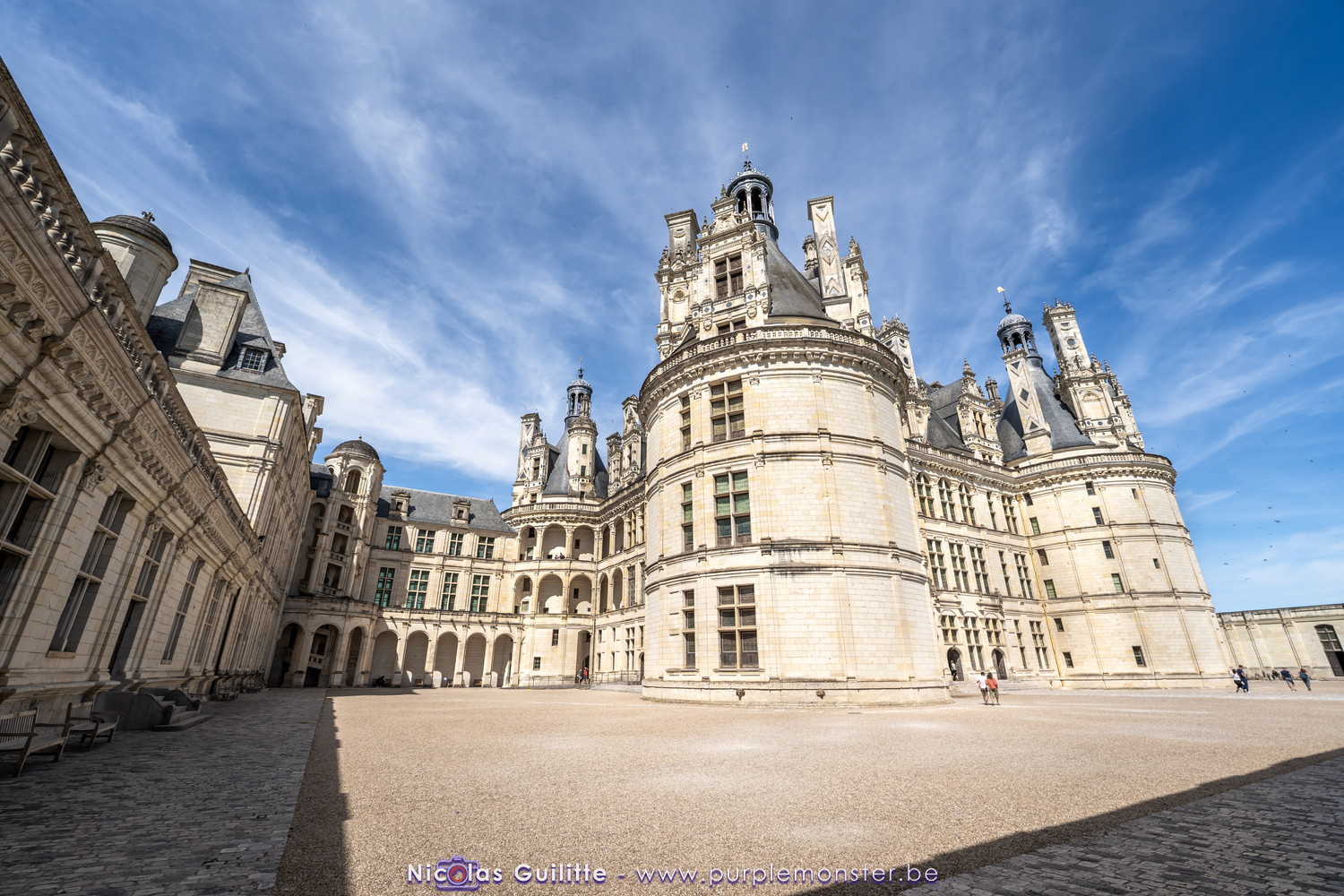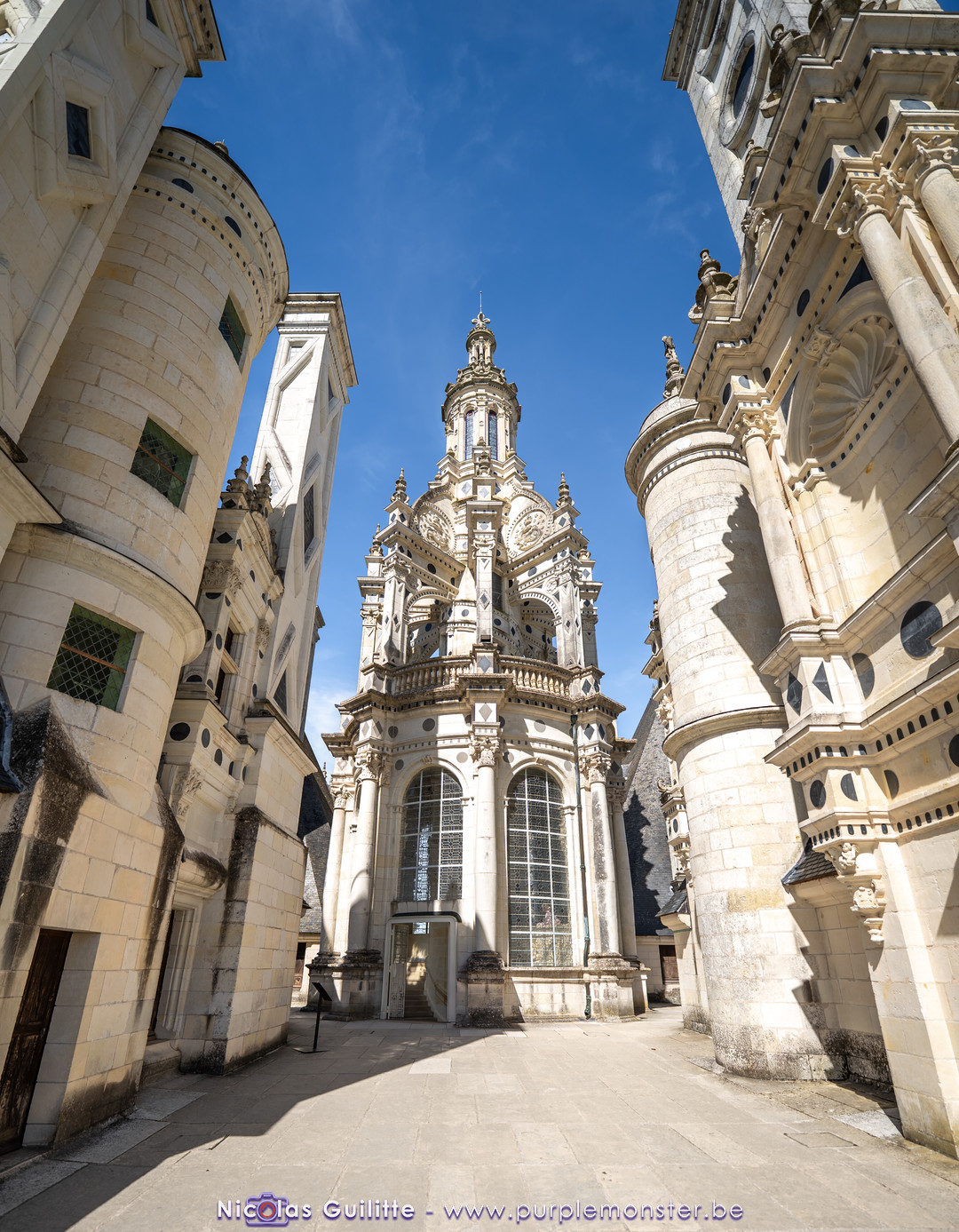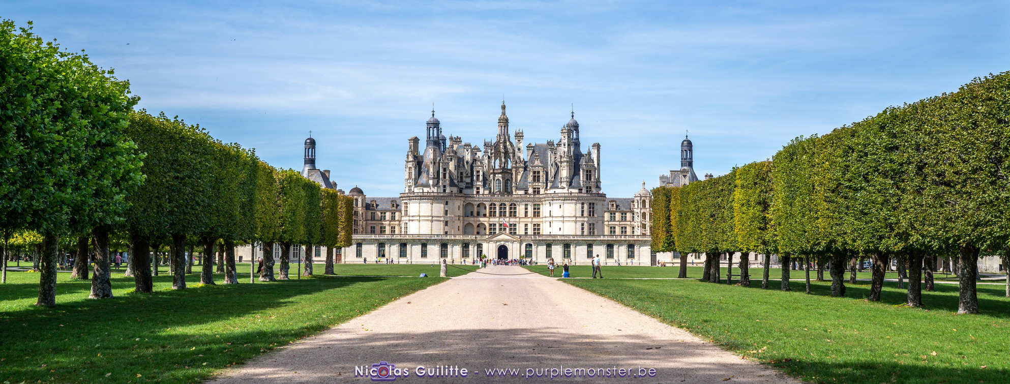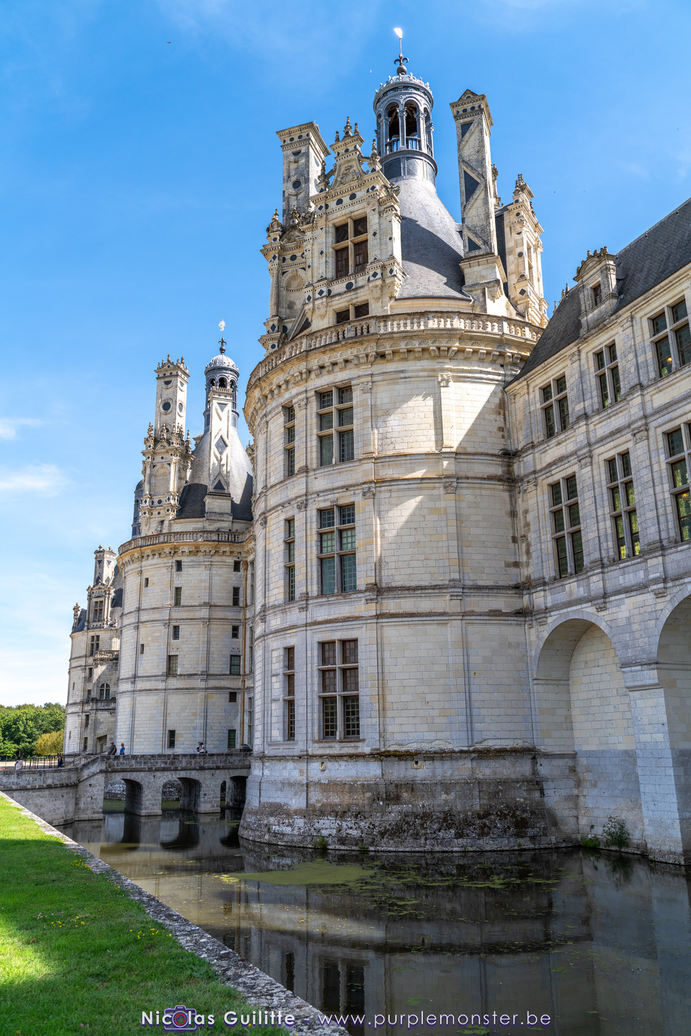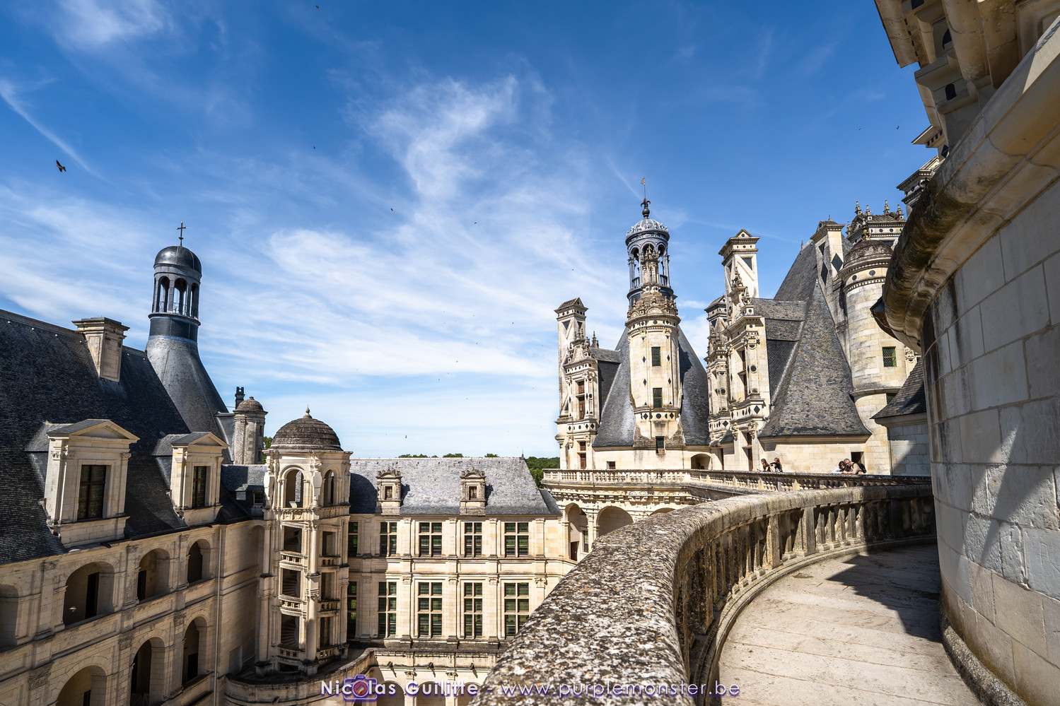 De passage dans la région pour la dernière édition des Nuits de Sologne, et au vu de la météo encore estivale, le moment était bien choisi pour faire un peu de tourisme local au château de Chambord tout proche, que j'avais déjà pu photographier en 2019 à travers un feu d'artifice pour son 500° anniversaire, mais que je n'avais jamais visité. Le moins que l'on puisse dire c'est qu'il est assez majestueux vu de l'extérieur, et un peu atypique de par ses nombreuses fenêtres et tourelles sur les toits. A première vue, tout paraît symétrique, mais quand on y prête attention, beaucoup de choses ne le sont pas, à commencer par les tourelles justement, mais aussi certaines fenêtres sur la façade centrale, ou encore la largeur des 2 ailes de part et d'autre de la partie centrale du chateau. Il paraît grand, mais on en fait assez vite le tour au final. Les différentes pièces intérieures s'articulant autour du double escalier central sont relativement grandes, mais tout se ressemble un peu et si on ne regarde pas par la fenêtre, c'est difficile de deviner de quel côté du chateau on se trouve.