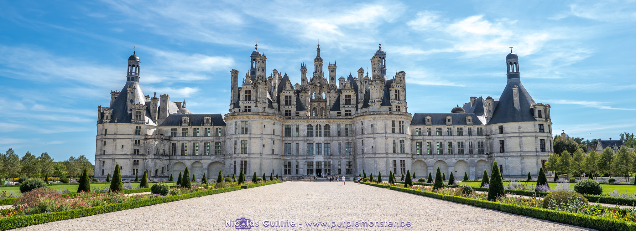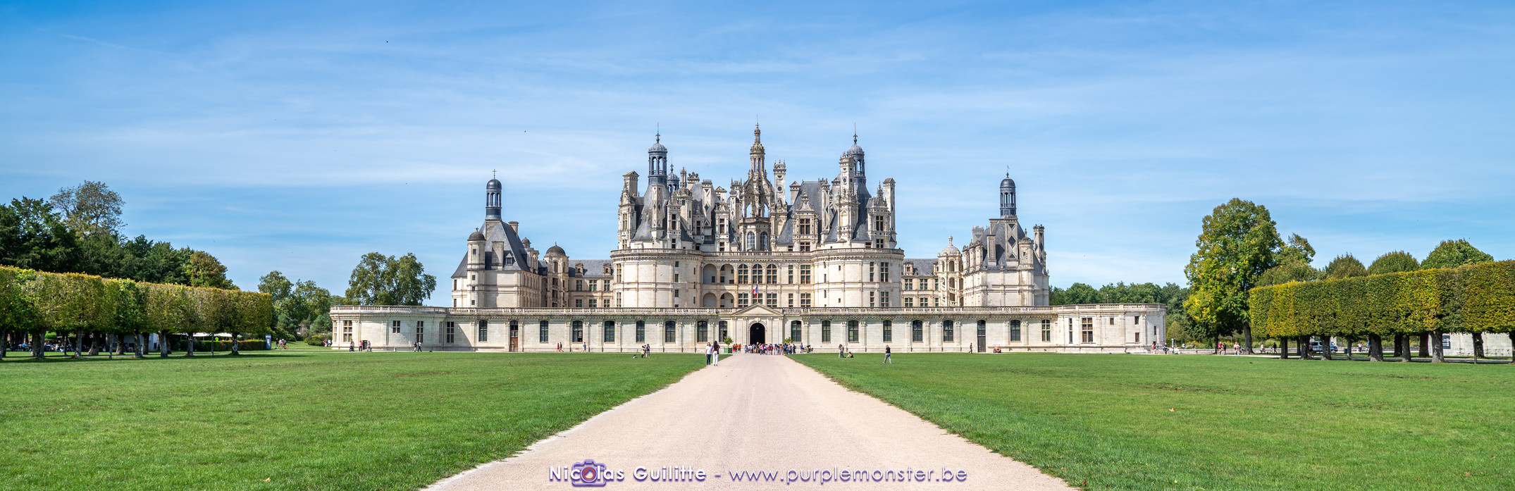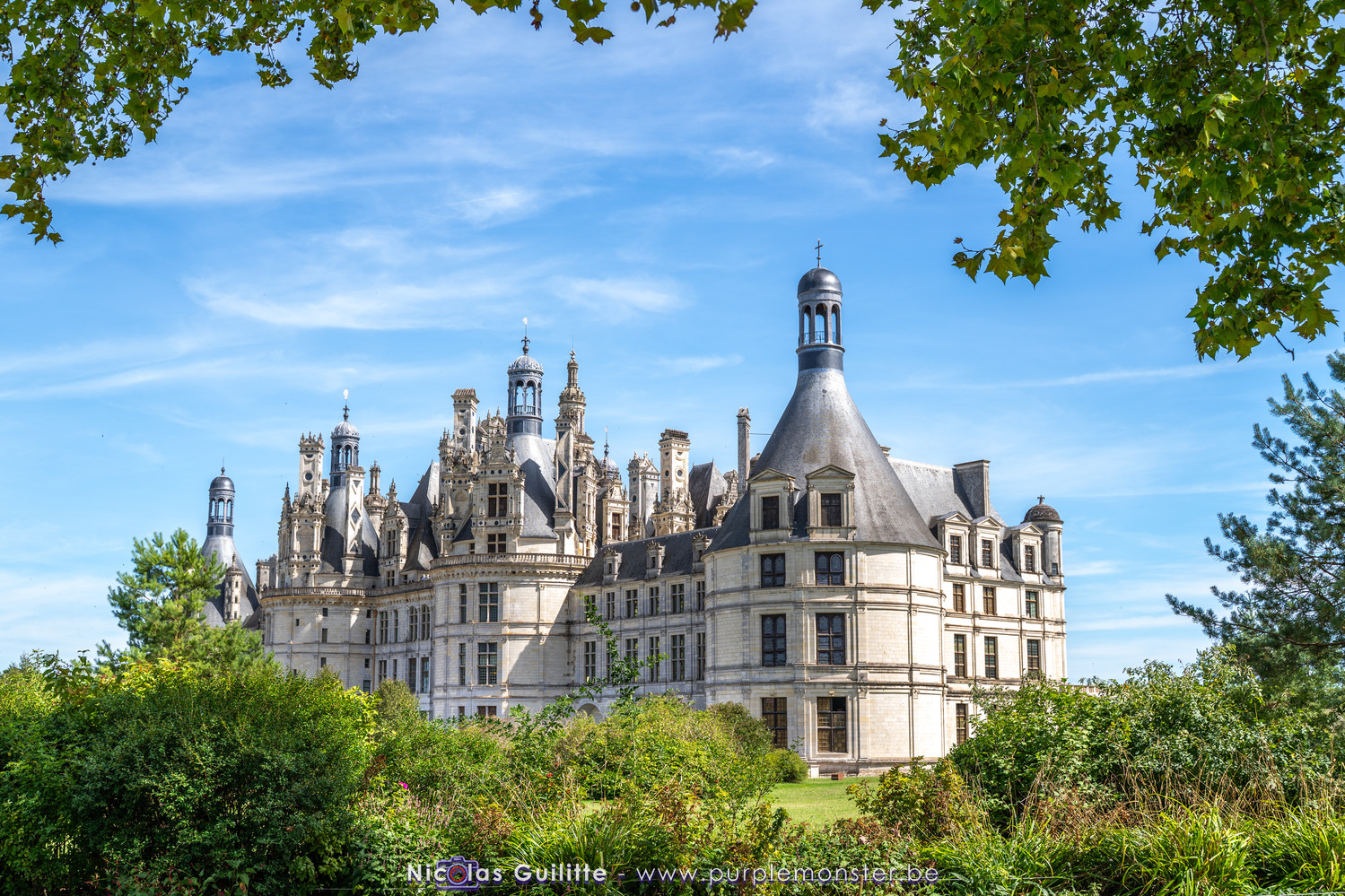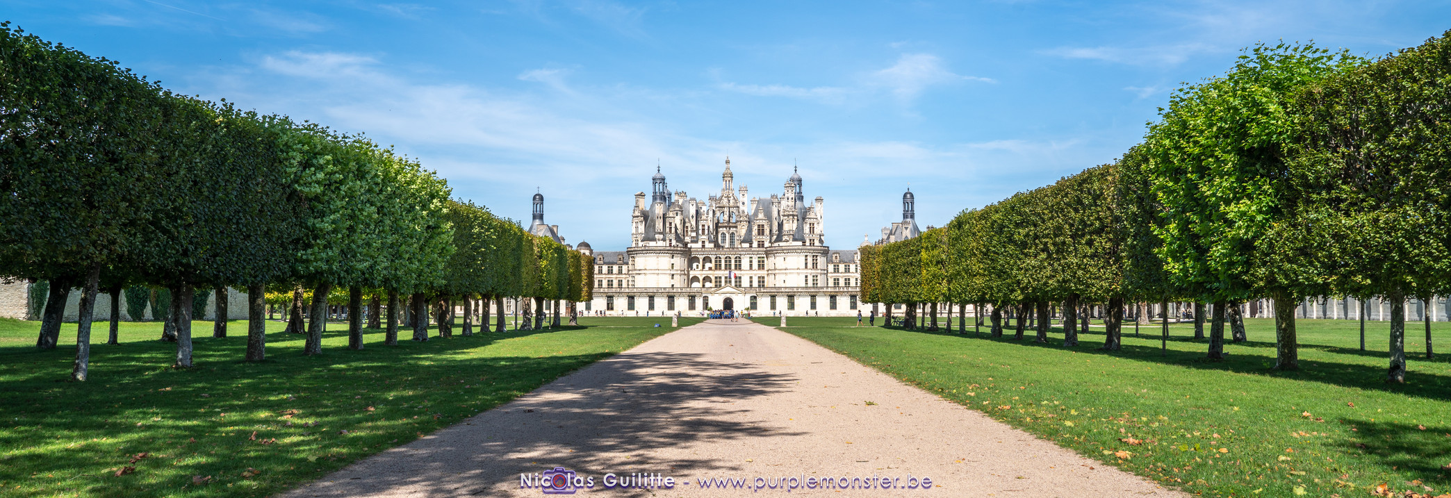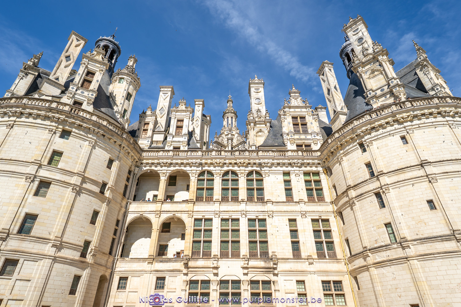 De passage dans la région pour la dernière édition des Nuits de Sologne, et au vu de la météo encore estivale, le moment était bien choisi pour faire un peu de tourisme local au château de Chambord tout proche, que j'avais déjà pu photographier en 2019 à travers un feu d'artifice pour son 500° anniversaire, mais que je n'avais jamais visité. Le moins que l'on puisse dire c'est qu'il est assez majestueux vu de l'extérieur, et un peu atypique de par ses nombreuses fenêtres et tourelles sur les toits. A première vue, tout paraît symétrique, mais quand on y prête attention, beaucoup de choses ne le sont pas, à commencer par les tourelles justement, mais aussi certaines fenêtres sur la façade centrale, ou encore la largeur des 2 ailes de part et d'autre de la partie centrale du chateau. Il paraît grand, mais on en fait assez vite le tour au final. Les différentes pièces intérieures s'articulant autour du double escalier central sont relativement grandes, mais tout se ressemble un peu et si on ne regarde pas par la fenêtre, c'est difficile de deviner de quel côté du chateau on se trouve.
