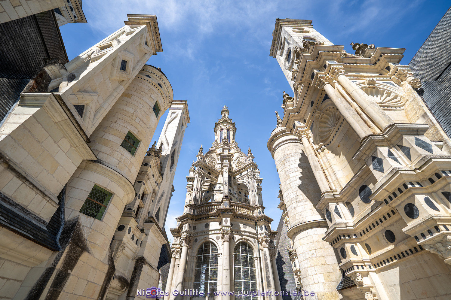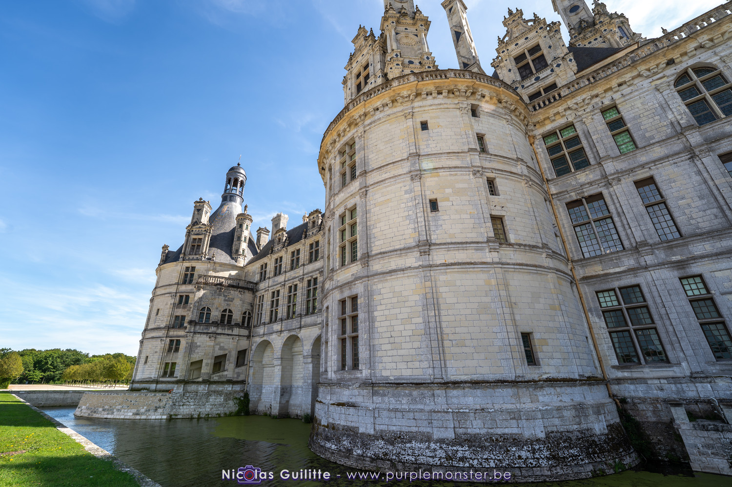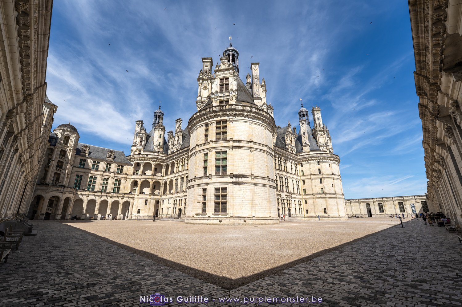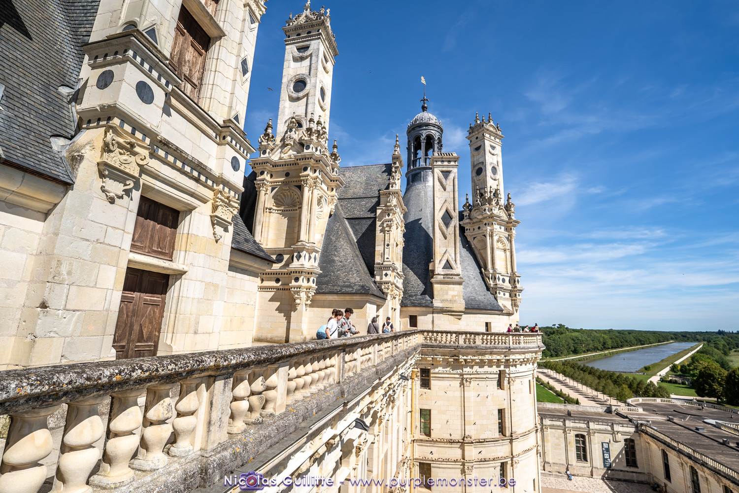 De passage dans la région pour la dernière édition des Nuits de Sologne, et au vu de la météo encore estivale, le moment était bien choisi pour faire un peu de tourisme local au château de Chambord tout proche, que j'avais déjà pu photographier en 2019 à travers un feu d'artifice pour son 500° anniversaire, mais que je n'avais jamais visité. Le moins que l'on puisse dire c'est qu'il est assez majestueux vu de l'extérieur, et un peu atypique de par ses nombreuses fenêtres et tourelles sur les toits. A première vue, tout paraît symétrique, mais quand on y prête attention, beaucoup de choses ne le sont pas, à commencer par les tourelles justement, mais aussi certaines fenêtres sur la façade centrale, ou encore la largeur des 2 ailes de part et d'autre de la partie centrale du chateau. Il paraît grand, mais on en fait assez vite le tour au final. Les différentes pièces intérieures s'articulant autour du double escalier central sont relativement grandes, mais tout se ressemble un peu et si on ne regarde pas par la fenêtre, c'est difficile de deviner de quel côté du chateau on se trouve.