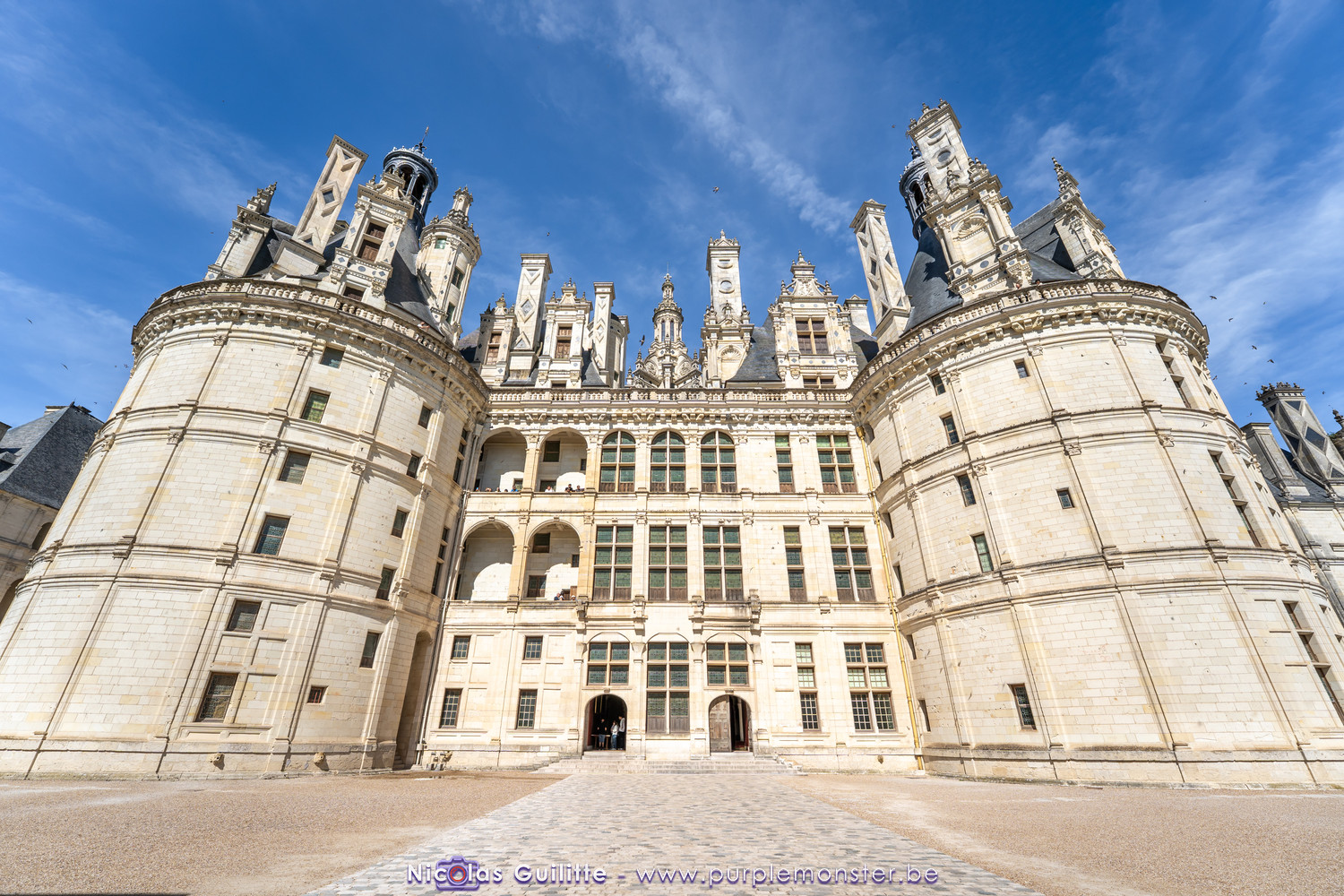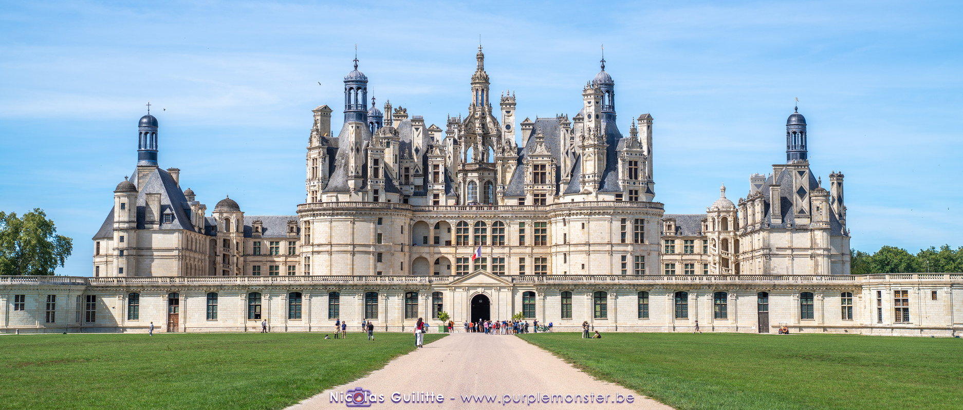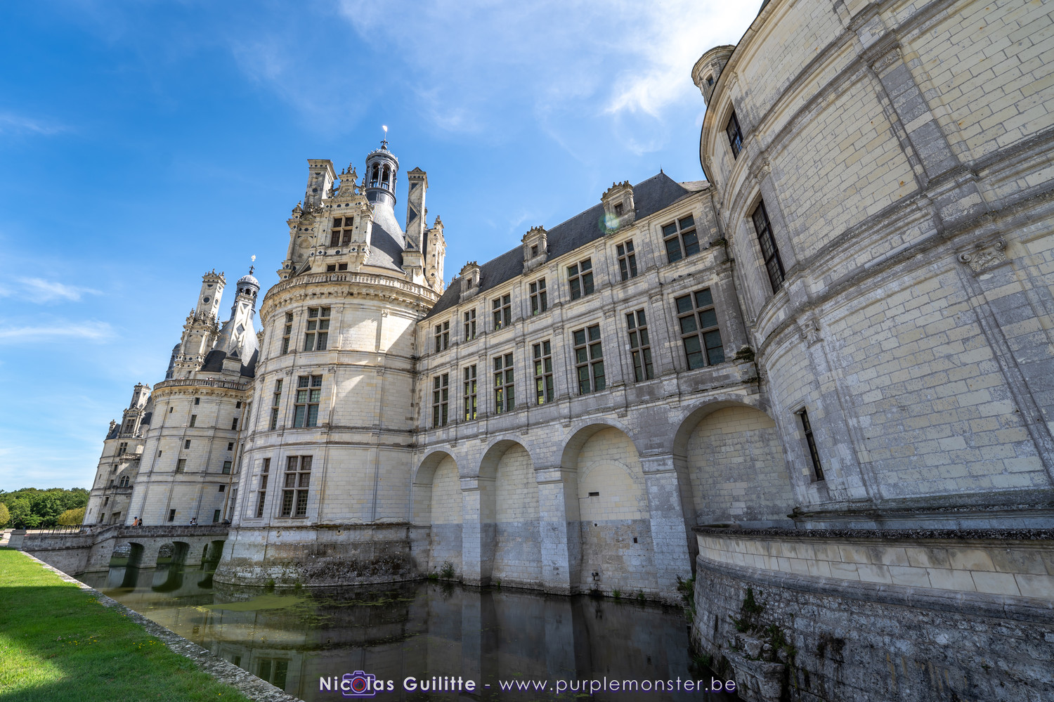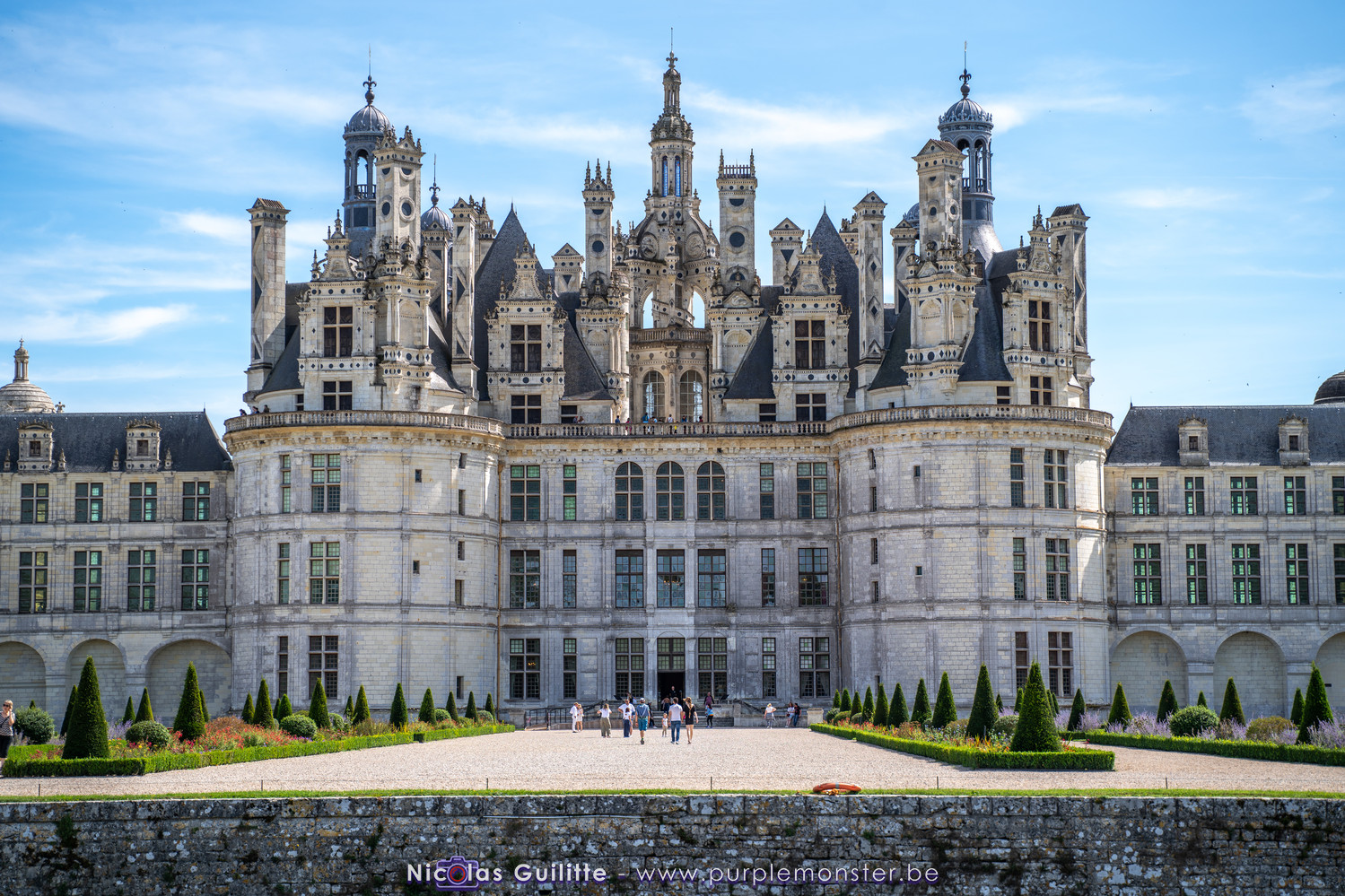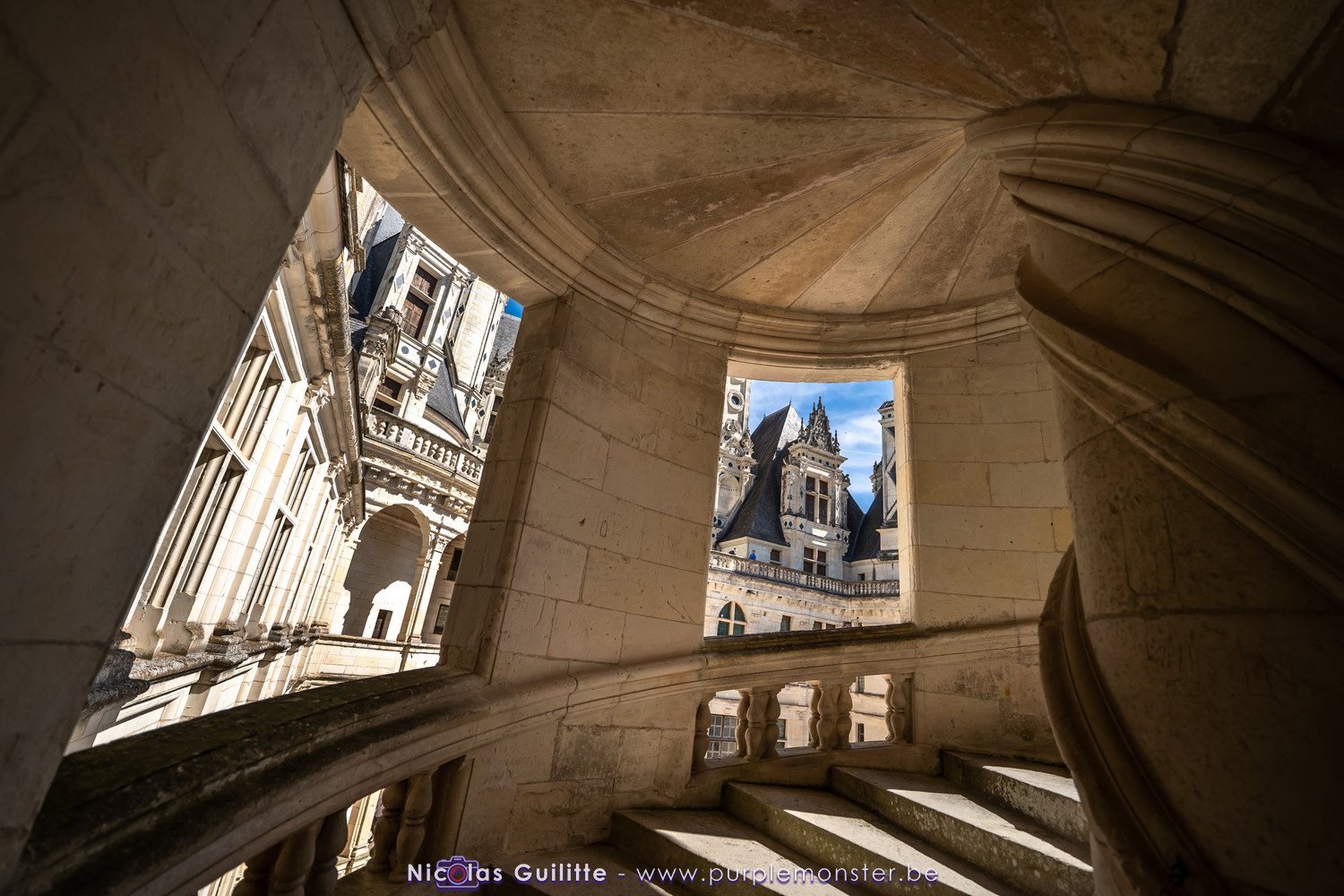 De passage dans la région pour la dernière édition des Nuits de Sologne, et au vu de la météo encore estivale, le moment était bien choisi pour faire un peu de tourisme local au château de Chambord tout proche, que j'avais déjà pu photographier en 2019 à travers un feu d'artifice pour son 500° anniversaire, mais que je n'avais jamais visité. Le moins que l'on puisse dire c'est qu'il est assez majestueux vu de l'extérieur, et un peu atypique de par ses nombreuses fenêtres et tourelles sur les toits. A première vue, tout paraît symétrique, mais quand on y prête attention, beaucoup de choses ne le sont pas, à commencer par les tourelles justement, mais aussi certaines fenêtres sur la façade centrale, ou encore la largeur des 2 ailes de part et d'autre de la partie centrale du chateau. Il paraît grand, mais on en fait assez vite le tour au final. Les différentes pièces intérieures s'articulant autour du double escalier central sont relativement grandes, mais tout se ressemble un peu et si on ne regarde pas par la fenêtre, c'est difficile de deviner de quel côté du chateau on se trouve.