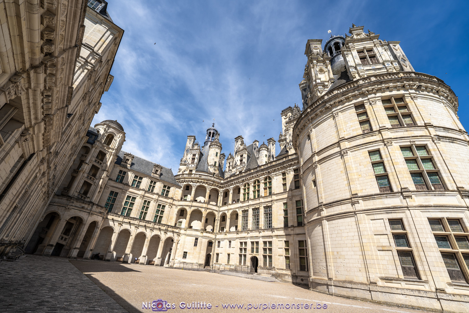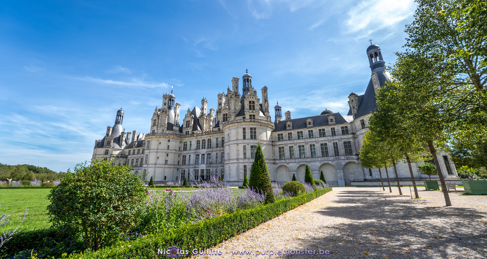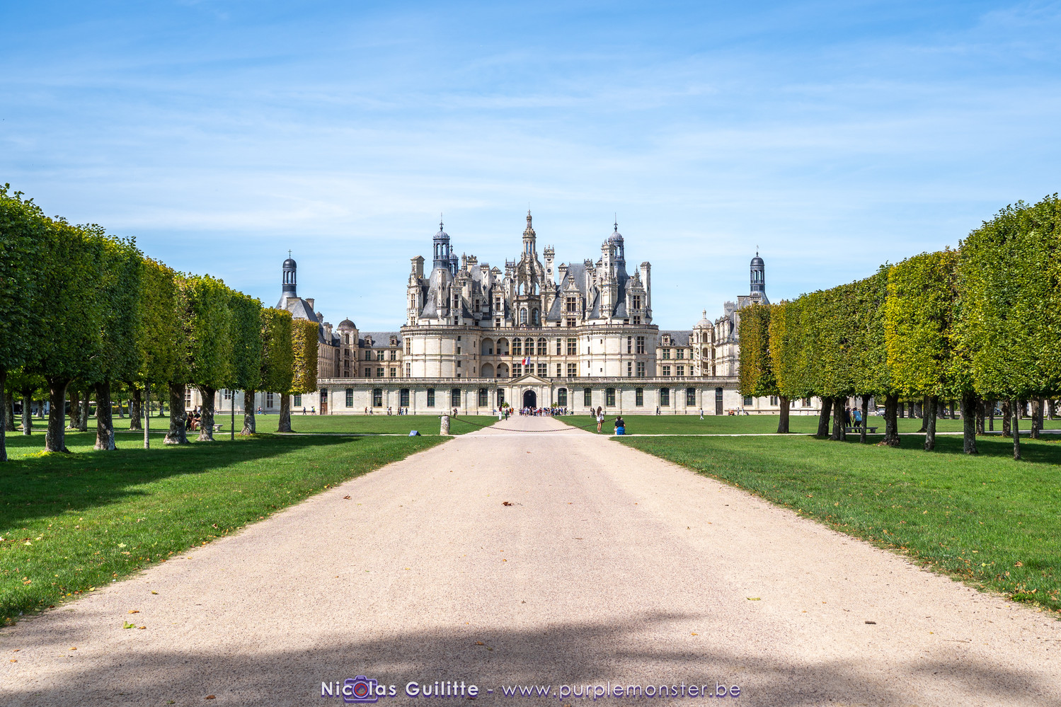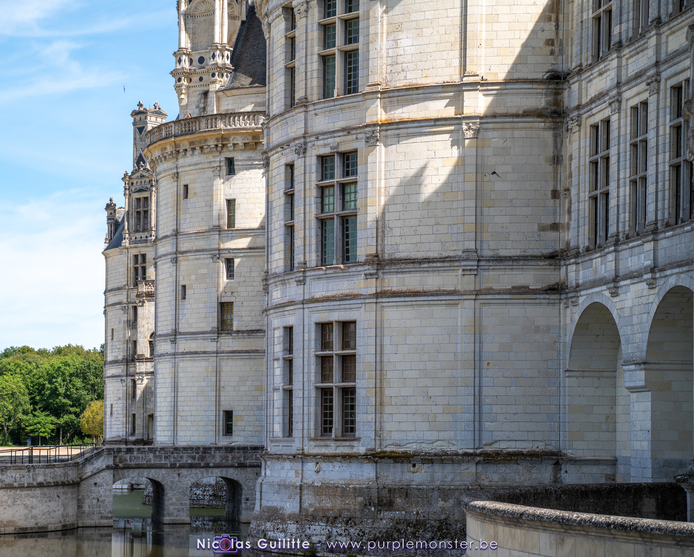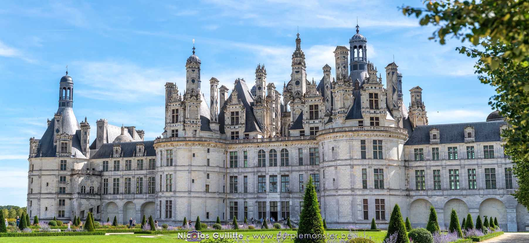 De passage dans la région pour la dernière édition des Nuits de Sologne, et au vu de la météo encore estivale, le moment était bien choisi pour faire un peu de tourisme local au château de Chambord tout proche, que j'avais déjà pu photographier en 2019 à travers un feu d'artifice pour son 500° anniversaire, mais que je n'avais jamais visité. Le moins que l'on puisse dire c'est qu'il est assez majestueux vu de l'extérieur, et un peu atypique de par ses nombreuses fenêtres et tourelles sur les toits. A première vue, tout paraît symétrique, mais quand on y prête attention, beaucoup de choses ne le sont pas, à commencer par les tourelles justement, mais aussi certaines fenêtres sur la façade centrale, ou encore la largeur des 2 ailes de part et d'autre de la partie centrale du chateau. Il paraît grand, mais on en fait assez vite le tour au final. Les différentes pièces intérieures s'articulant autour du double escalier central sont relativement grandes, mais tout se ressemble un peu et si on ne regarde pas par la fenêtre, c'est difficile de deviner de quel côté du chateau on se trouve.