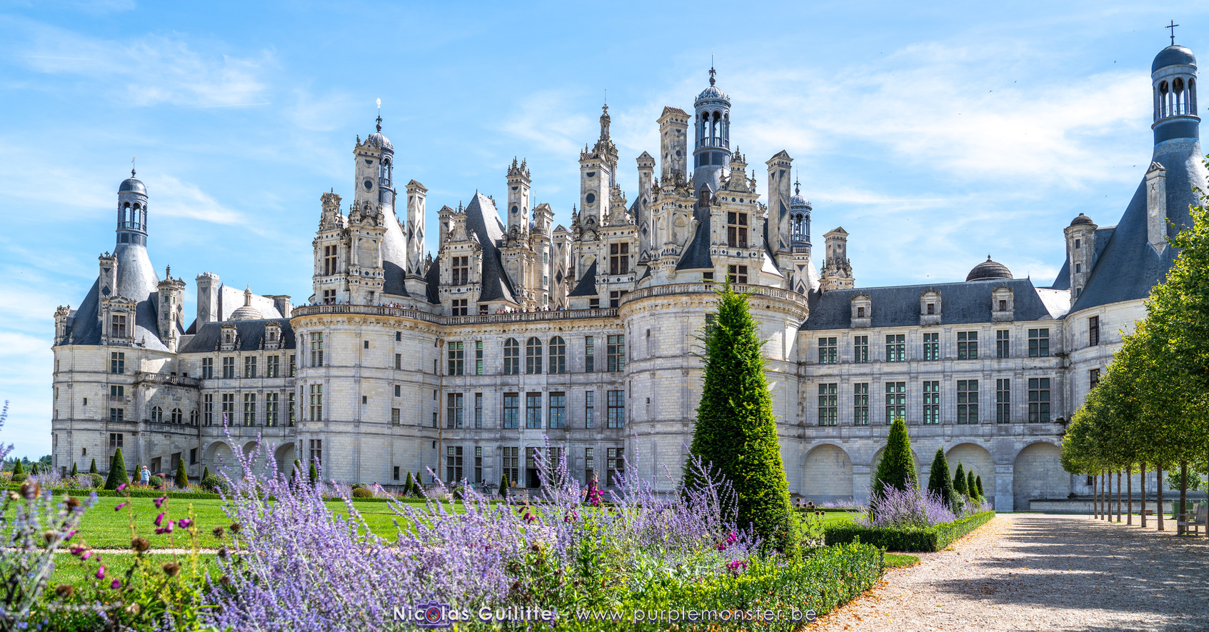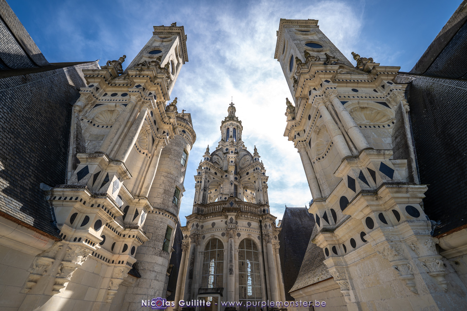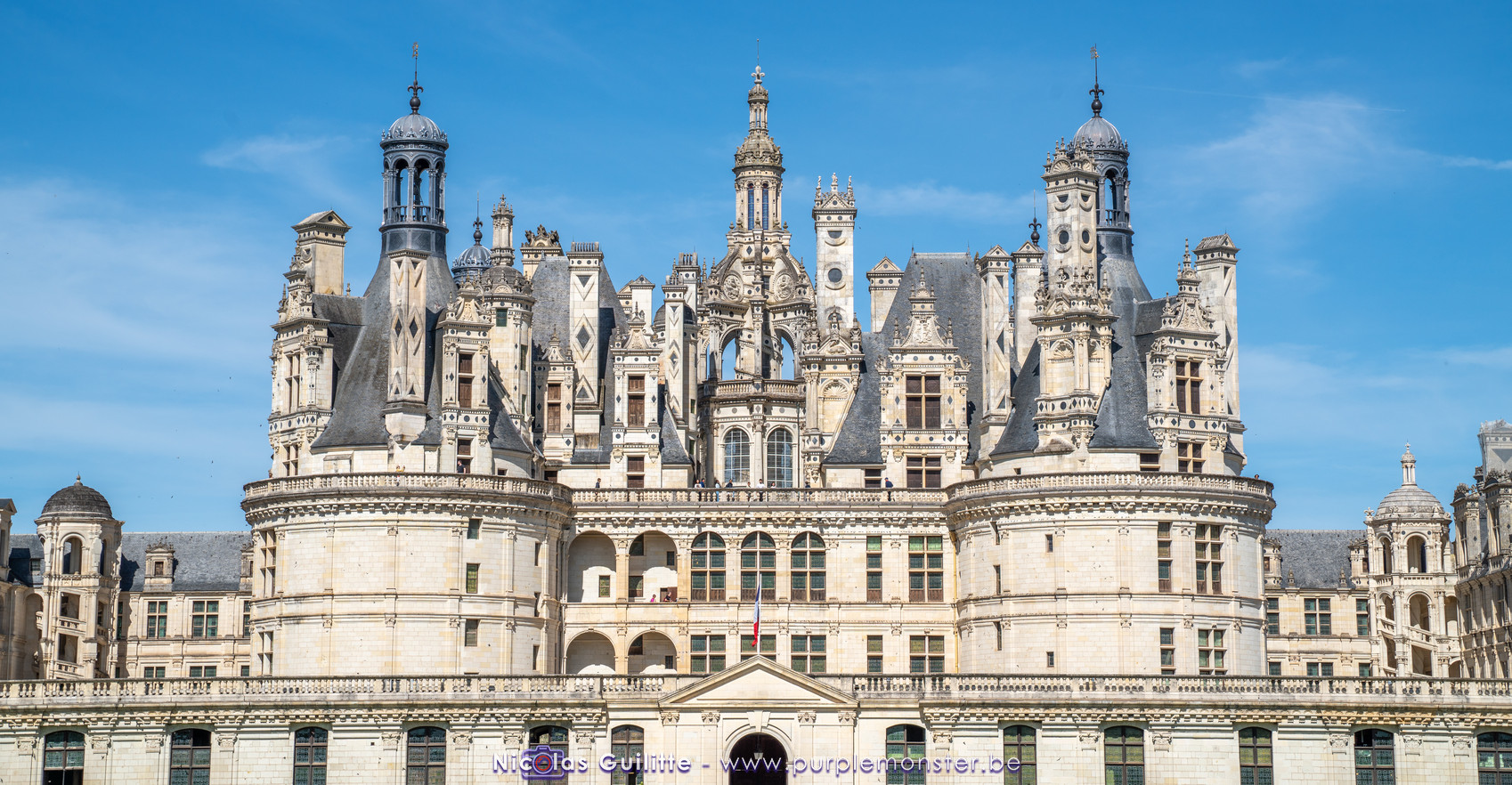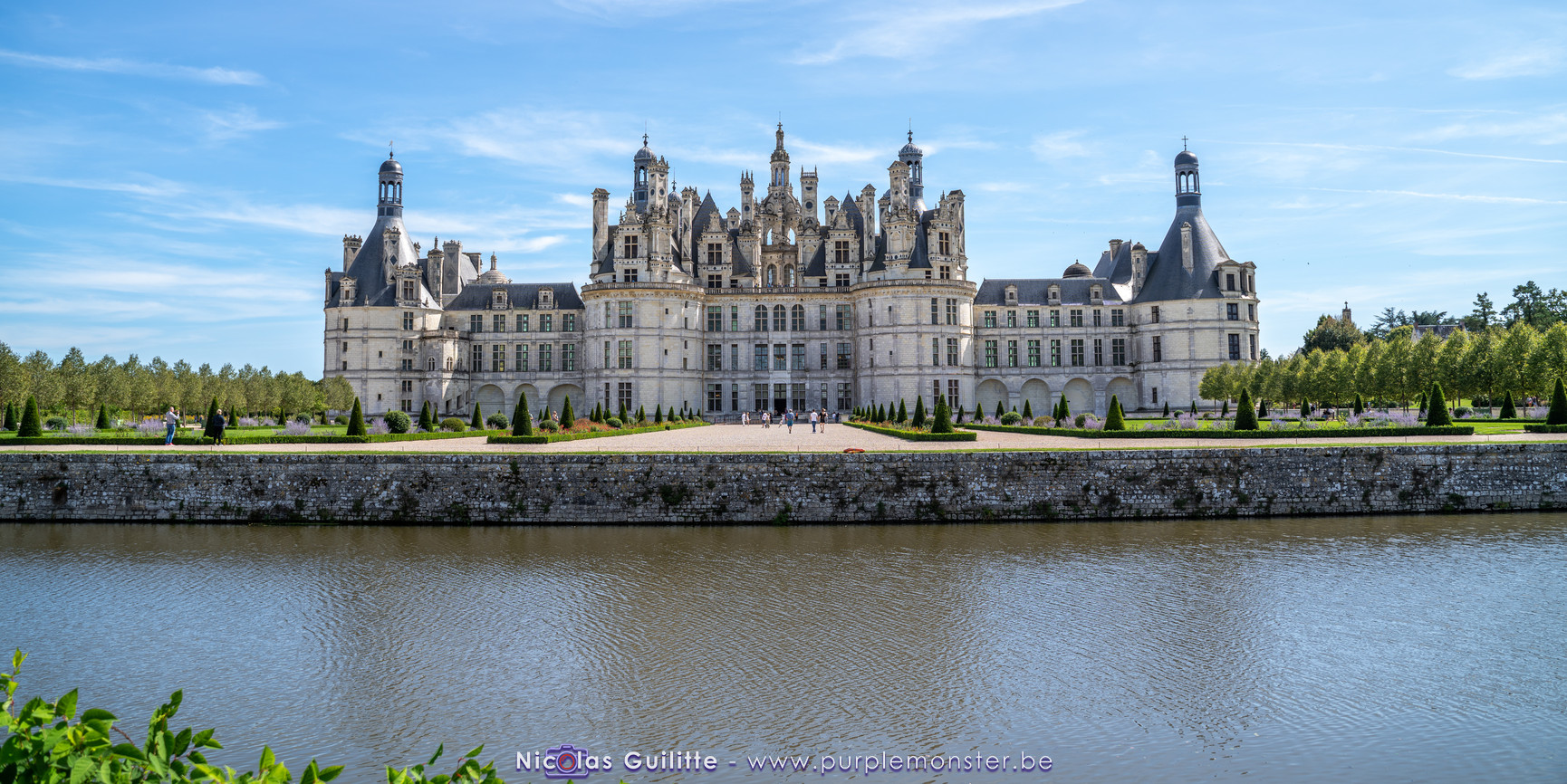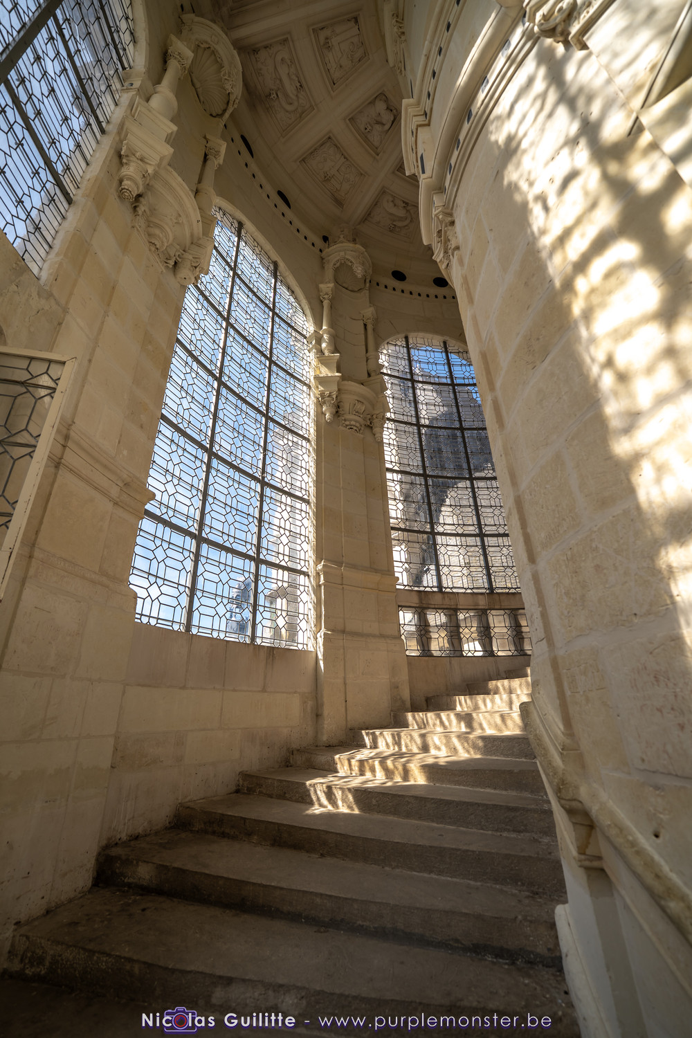 De passage dans la région pour la dernière édition des Nuits de Sologne, et au vu de la météo encore estivale, le moment était bien choisi pour faire un peu de tourisme local au château de Chambord tout proche, que j'avais déjà pu photographier en 2019 à travers un feu d'artifice pour son 500° anniversaire, mais que je n'avais jamais visité. Le moins que l'on puisse dire c'est qu'il est assez majestueux vu de l'extérieur, et un peu atypique de par ses nombreuses fenêtres et tourelles sur les toits. A première vue, tout paraît symétrique, mais quand on y prête attention, beaucoup de choses ne le sont pas, à commencer par les tourelles justement, mais aussi certaines fenêtres sur la façade centrale, ou encore la largeur des 2 ailes de part et d'autre de la partie centrale du chateau. Il paraît grand, mais on en fait assez vite le tour au final. Les différentes pièces intérieures s'articulant autour du double escalier central sont relativement grandes, mais tout se ressemble un peu et si on ne regarde pas par la fenêtre, c'est difficile de deviner de quel côté du chateau on se trouve.