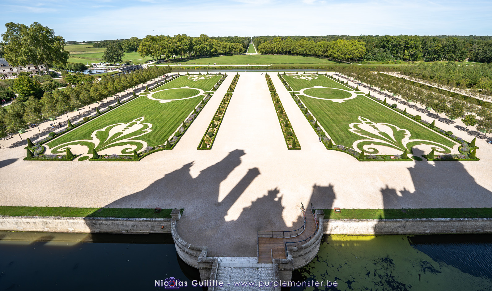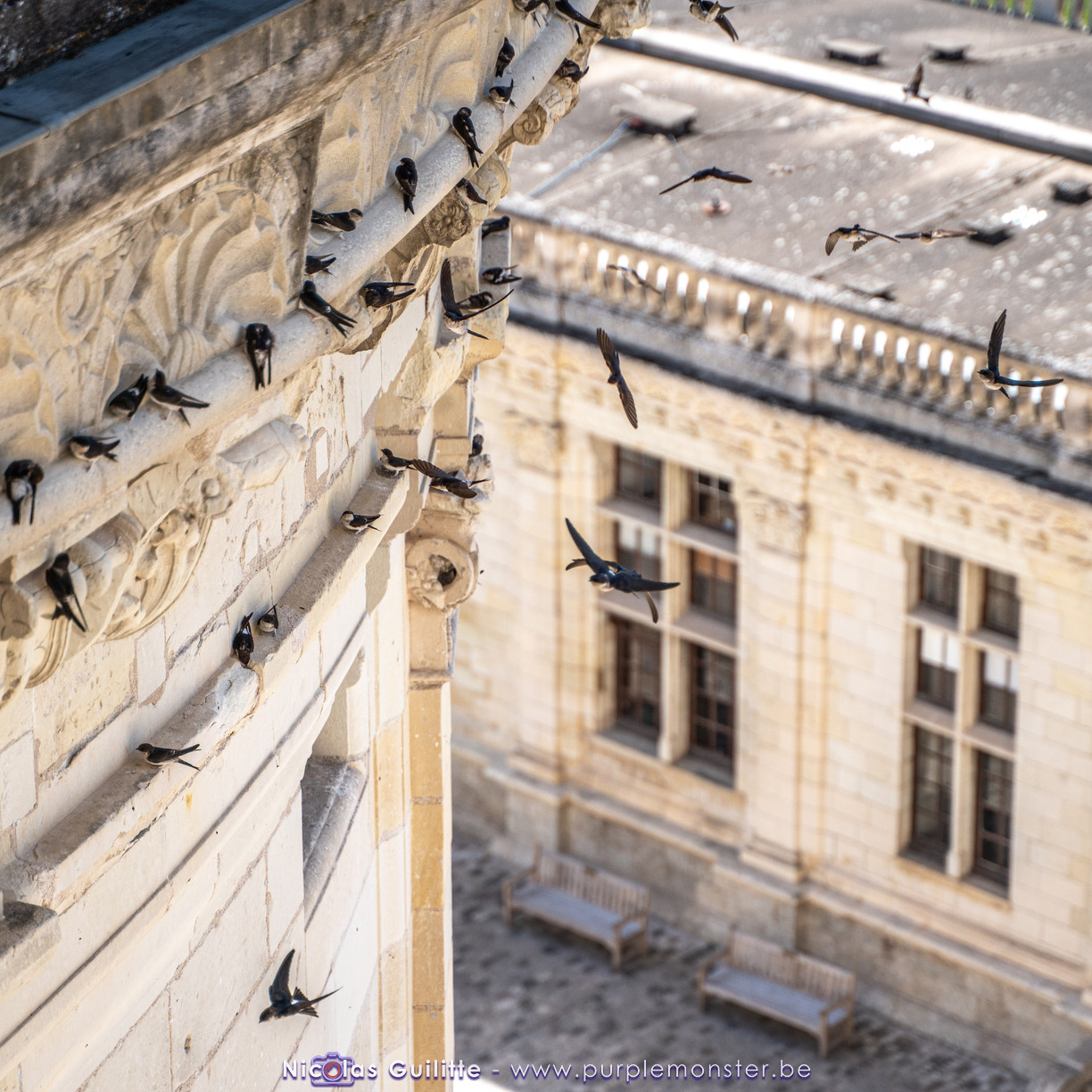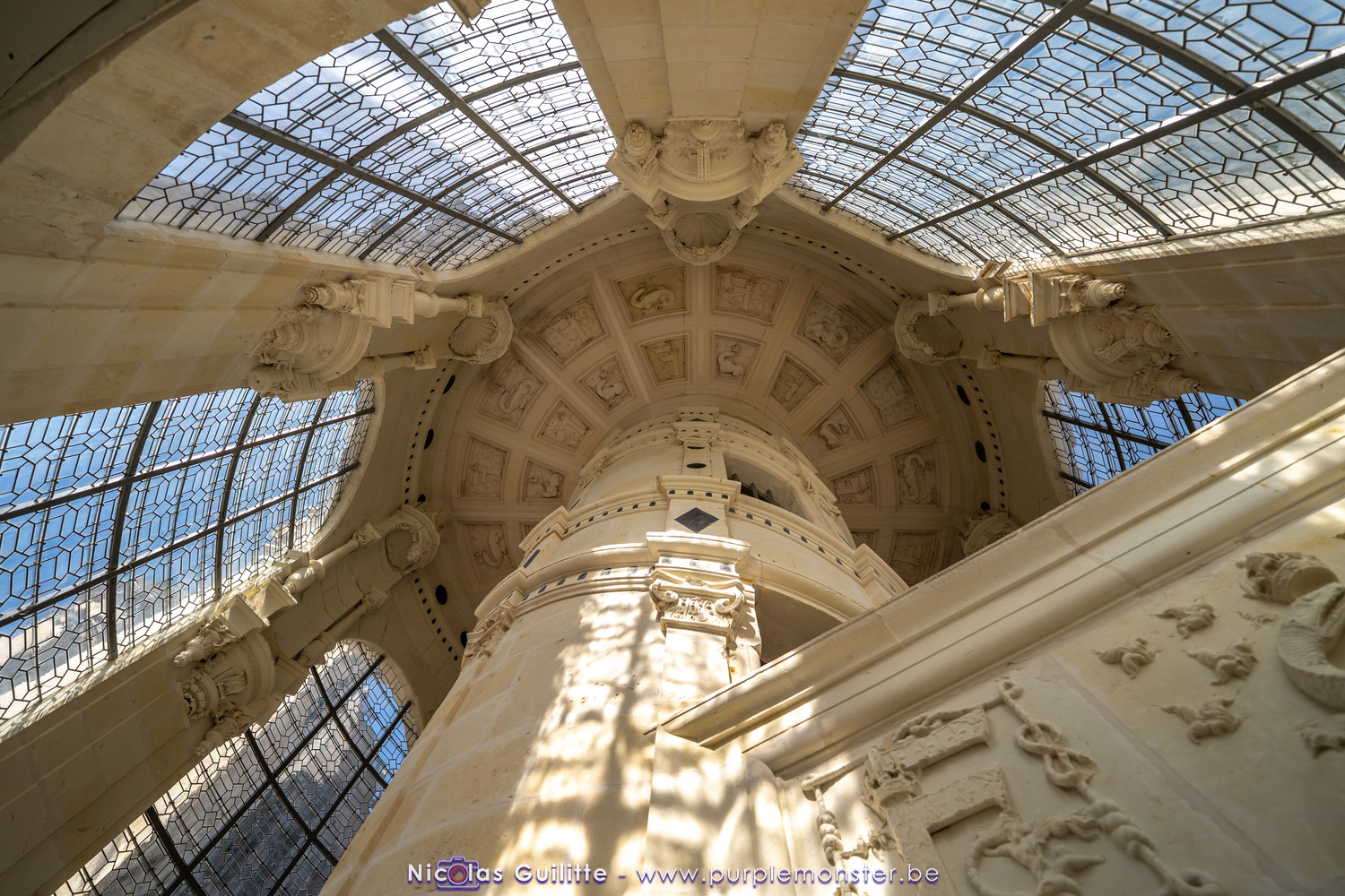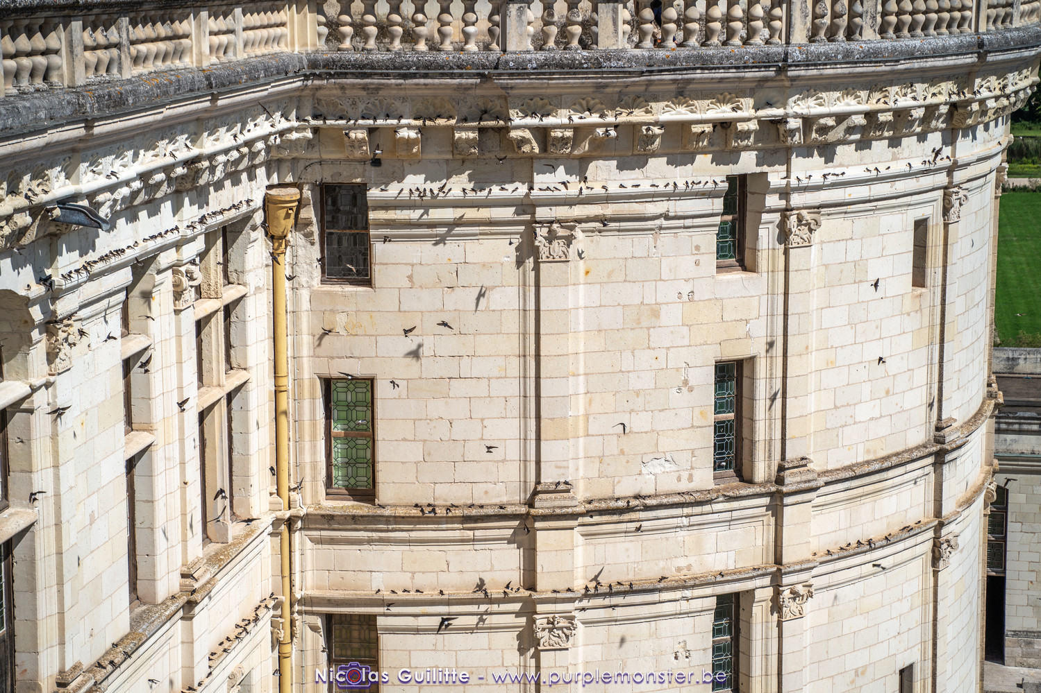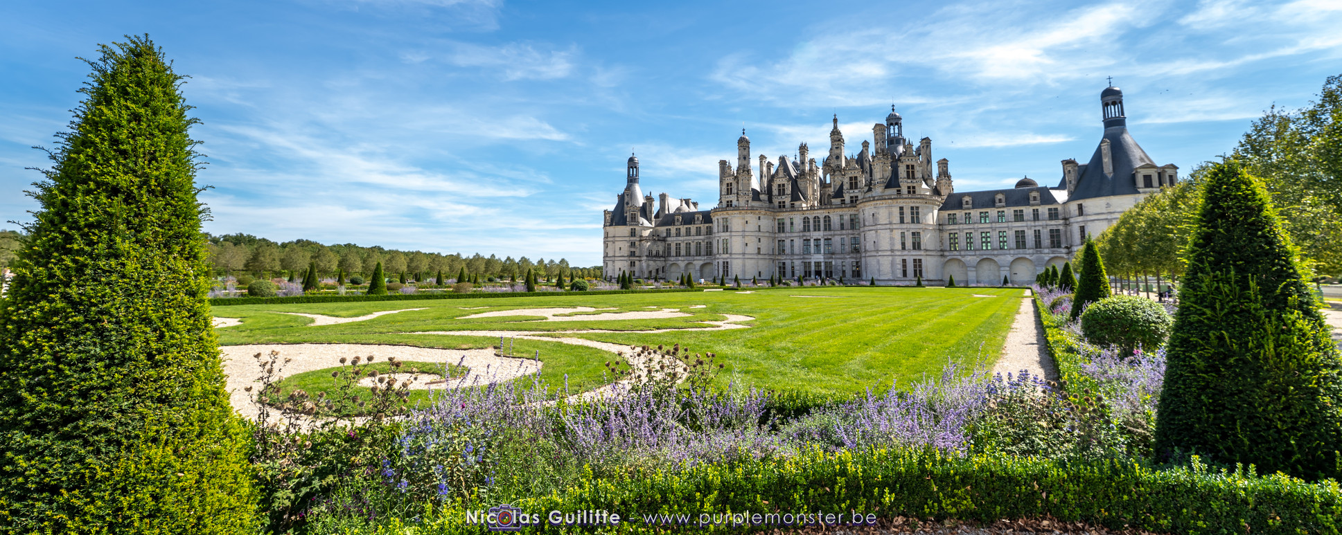 De passage dans la région pour la dernière édition des Nuits de Sologne, et au vu de la météo encore estivale, le moment était bien choisi pour faire un peu de tourisme local au château de Chambord tout proche, que j'avais déjà pu photographier en 2019 à travers un feu d'artifice pour son 500° anniversaire, mais que je n'avais jamais visité. Le moins que l'on puisse dire c'est qu'il est assez majestueux vu de l'extérieur, et un peu atypique de par ses nombreuses fenêtres et tourelles sur les toits. A première vue, tout paraît symétrique, mais quand on y prête attention, beaucoup de choses ne le sont pas, à commencer par les tourelles justement, mais aussi certaines fenêtres sur la façade centrale, ou encore la largeur des 2 ailes de part et d'autre de la partie centrale du chateau. Il paraît grand, mais on en fait assez vite le tour au final. Les différentes pièces intérieures s'articulant autour du double escalier central sont relativement grandes, mais tout se ressemble un peu et si on ne regarde pas par la fenêtre, c'est difficile de deviner de quel côté du chateau on se trouve.